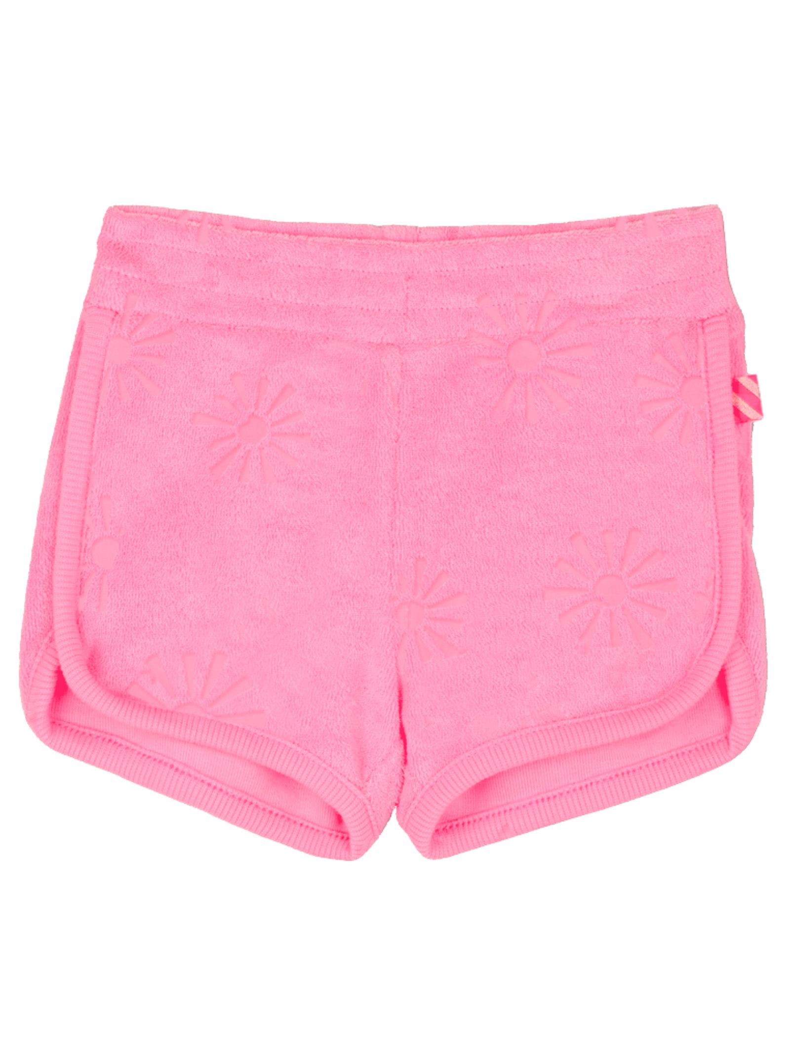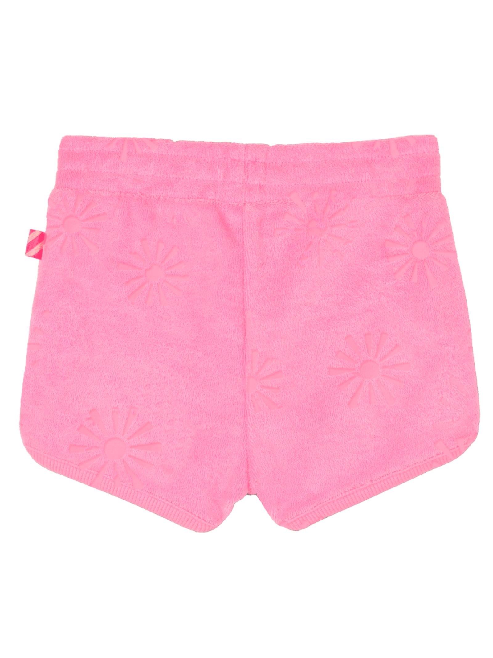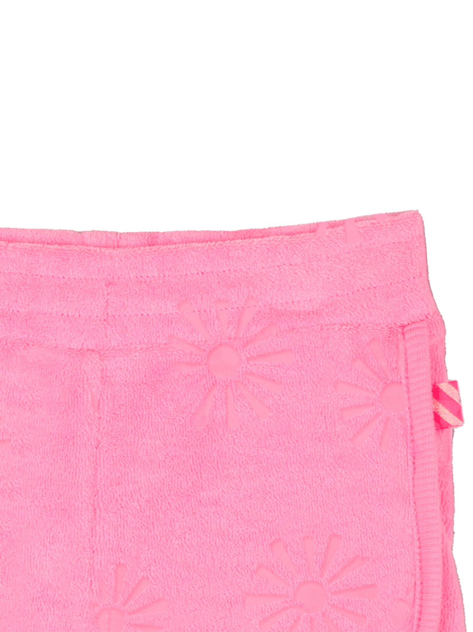 Billieblush Kids neon pink shorts made of terry cotton with all-over perforated details, elastic waistband, logo patch, curved hem. Composition: 75% polyester, 25% cotton