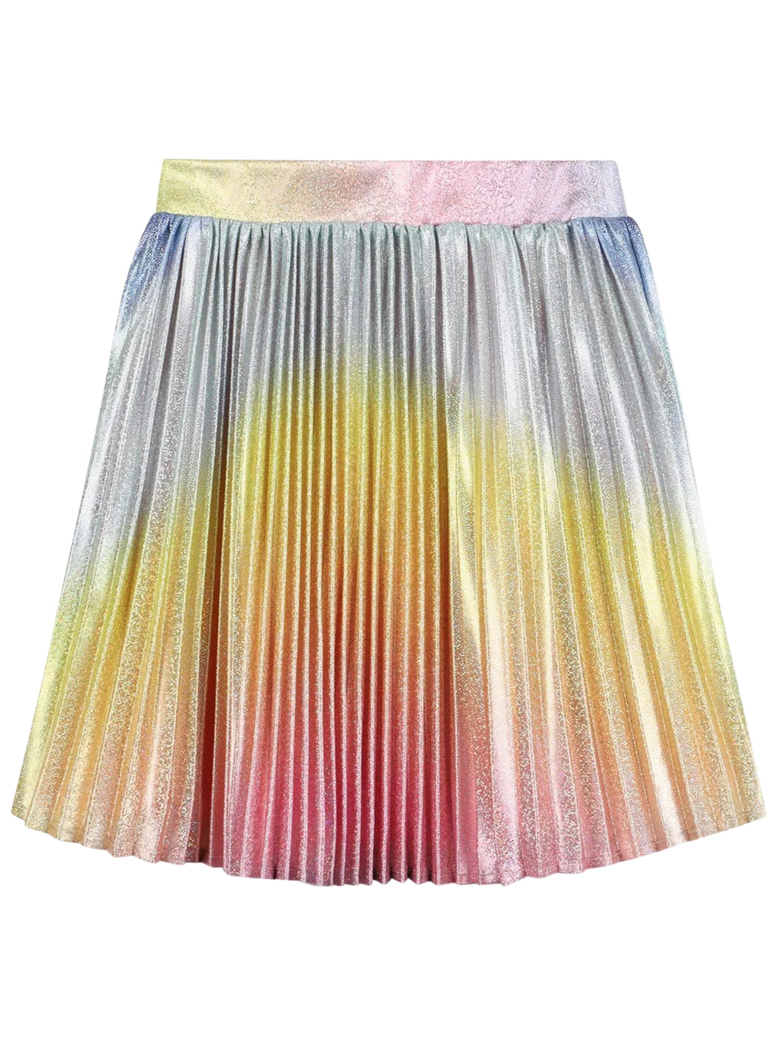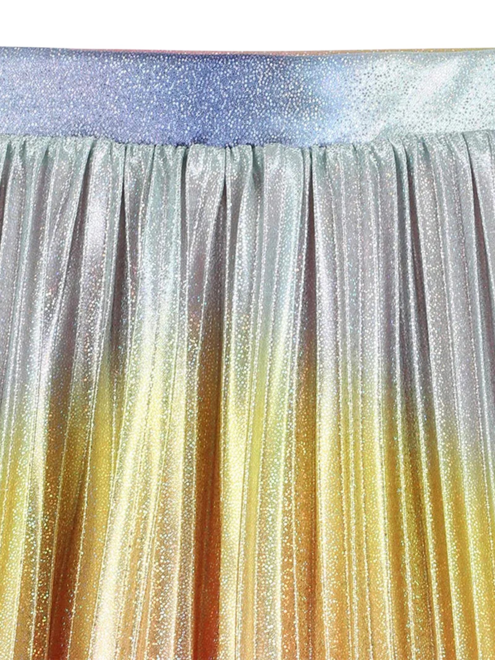 Billieblush Kids multicolor pleated skirt in a gradient glitter print, A-line design, and an elastic waist for all-day comfort. Material: 100% polyester. Lining: 100% polyester.