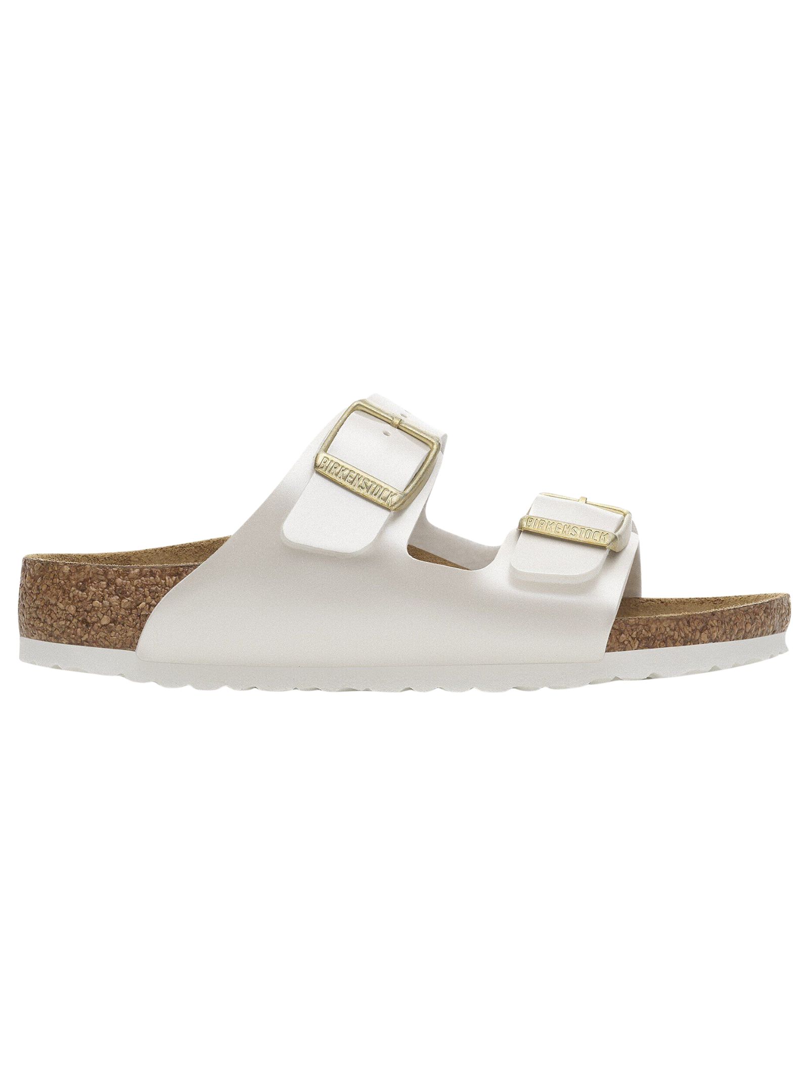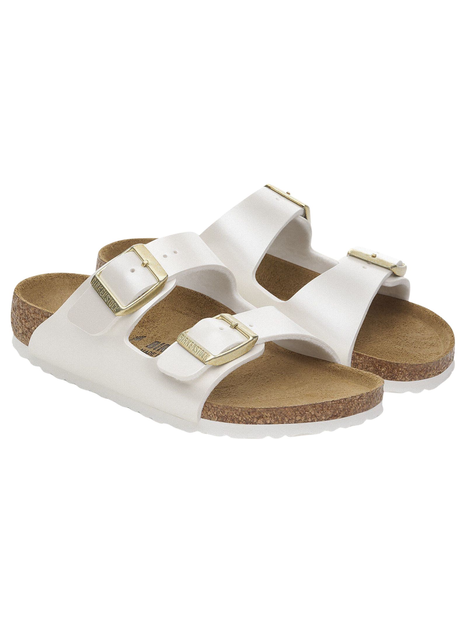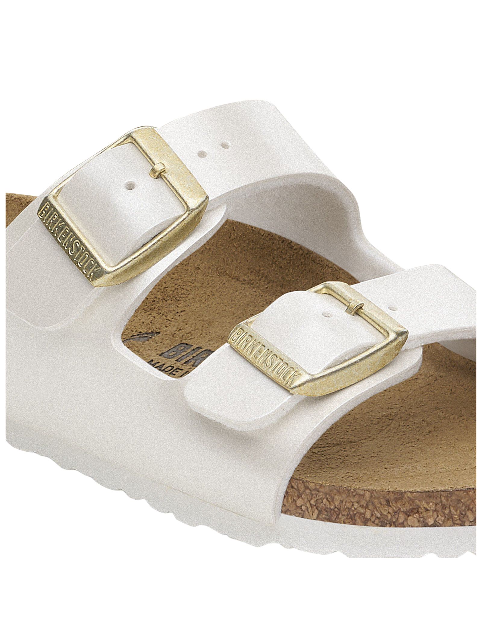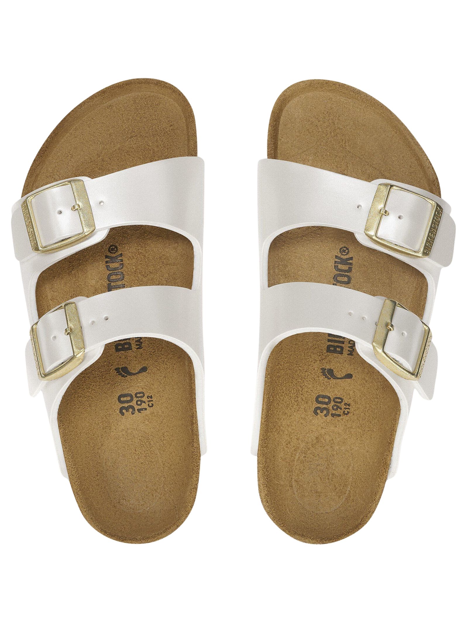 BIRKENSTOCK ARIZONA BS girls' sandals in pearl with a buckle closure, round toe, and a non-slip rubber sole. Lightweight. Made with an anatomically shaped cork insole, non-slip rubber sole, and leather straps. Made in Germany.