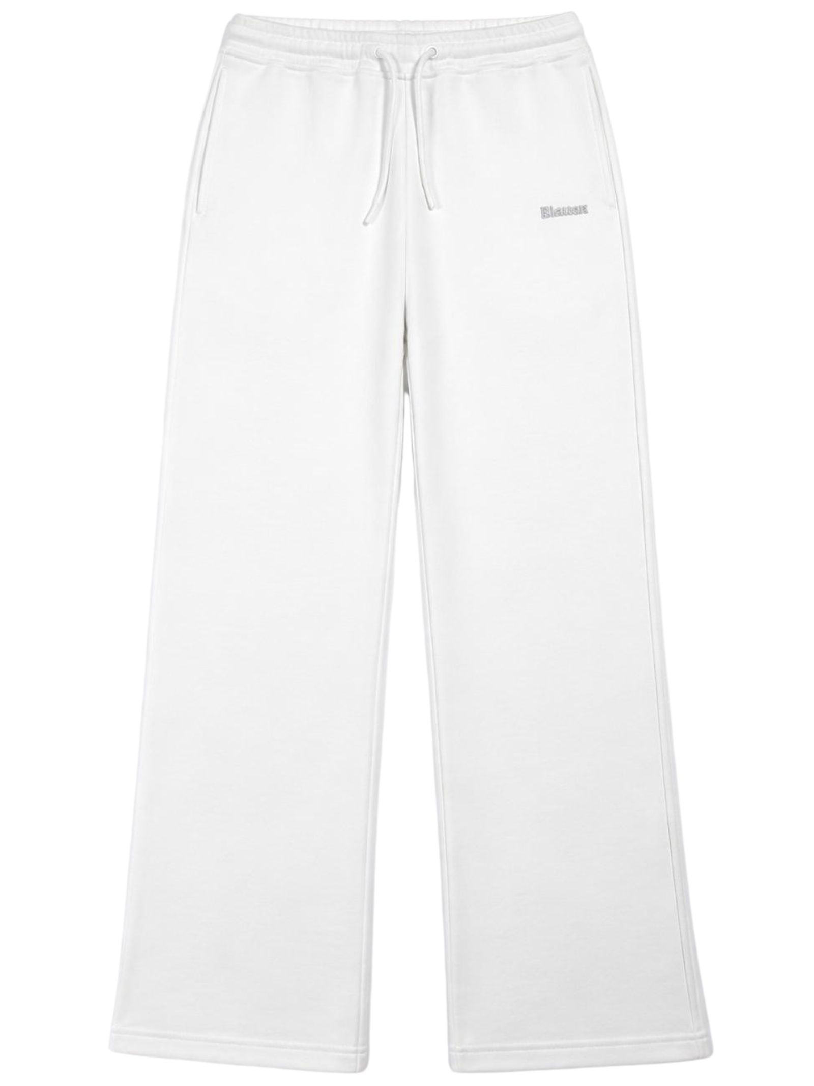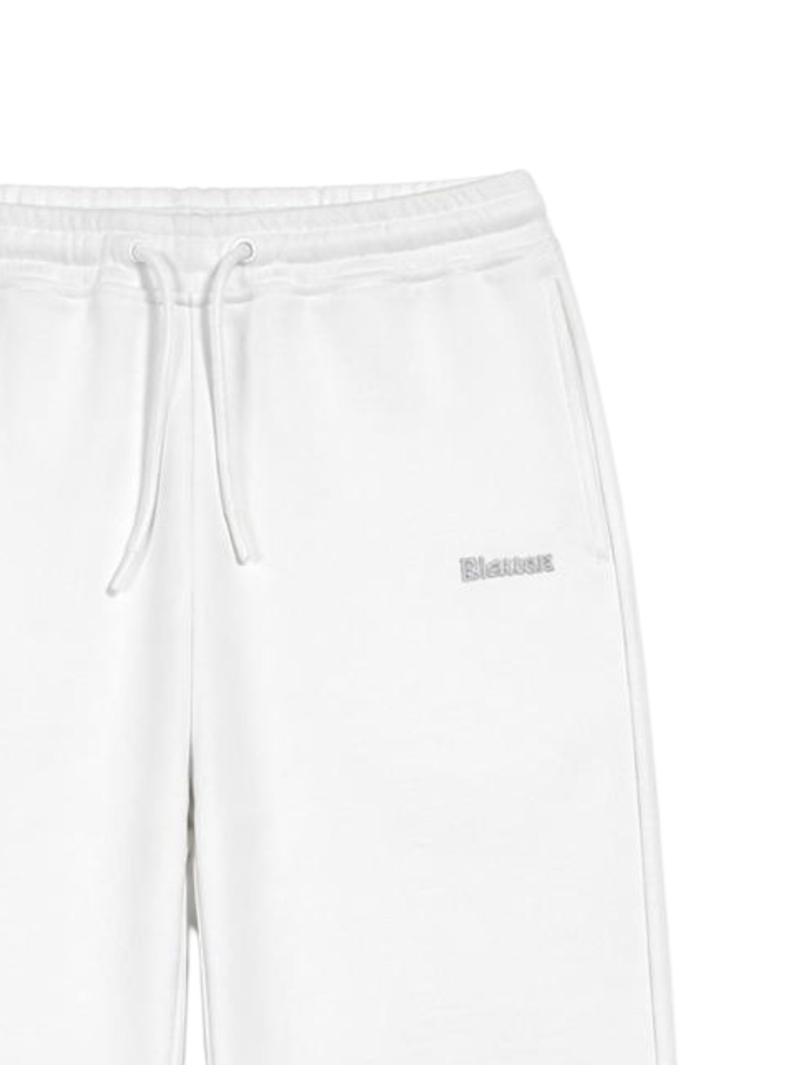 Blauer Kids white trousers with an elasticated waist and drawstring, two side pockets, contrasting logo embroidery, and a regular fit. Composition: 100% cotton.