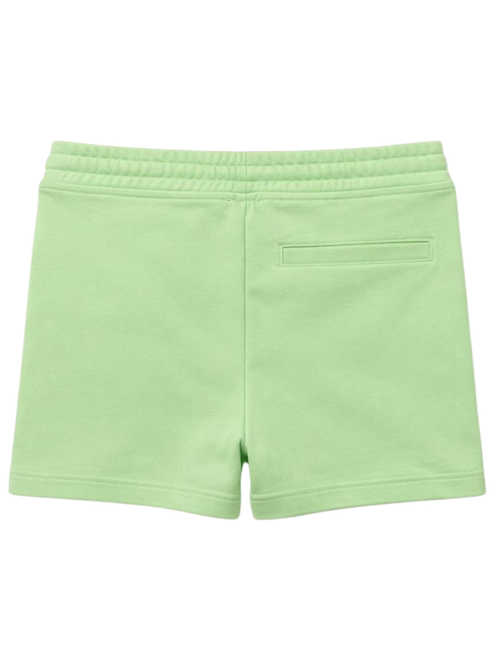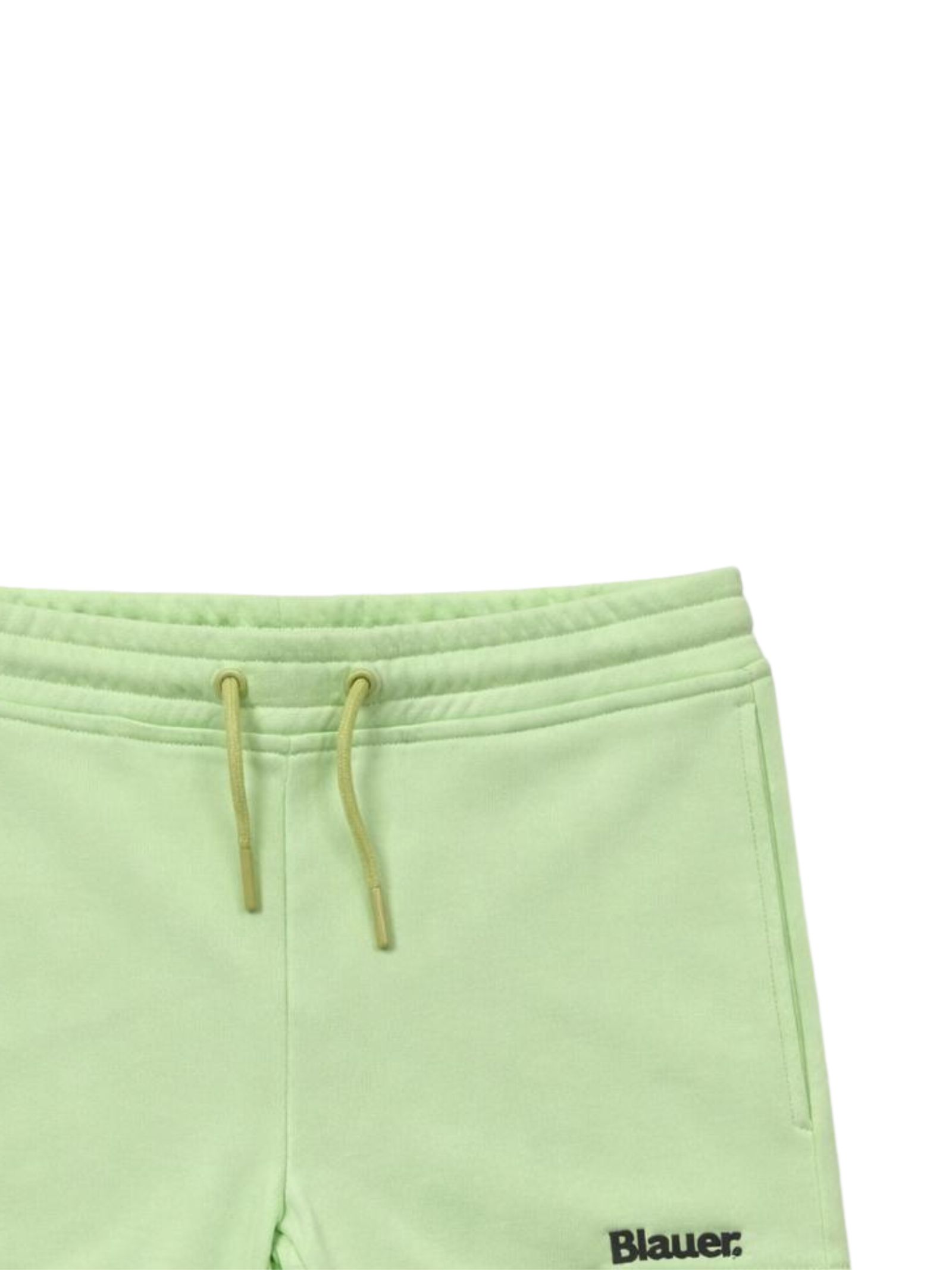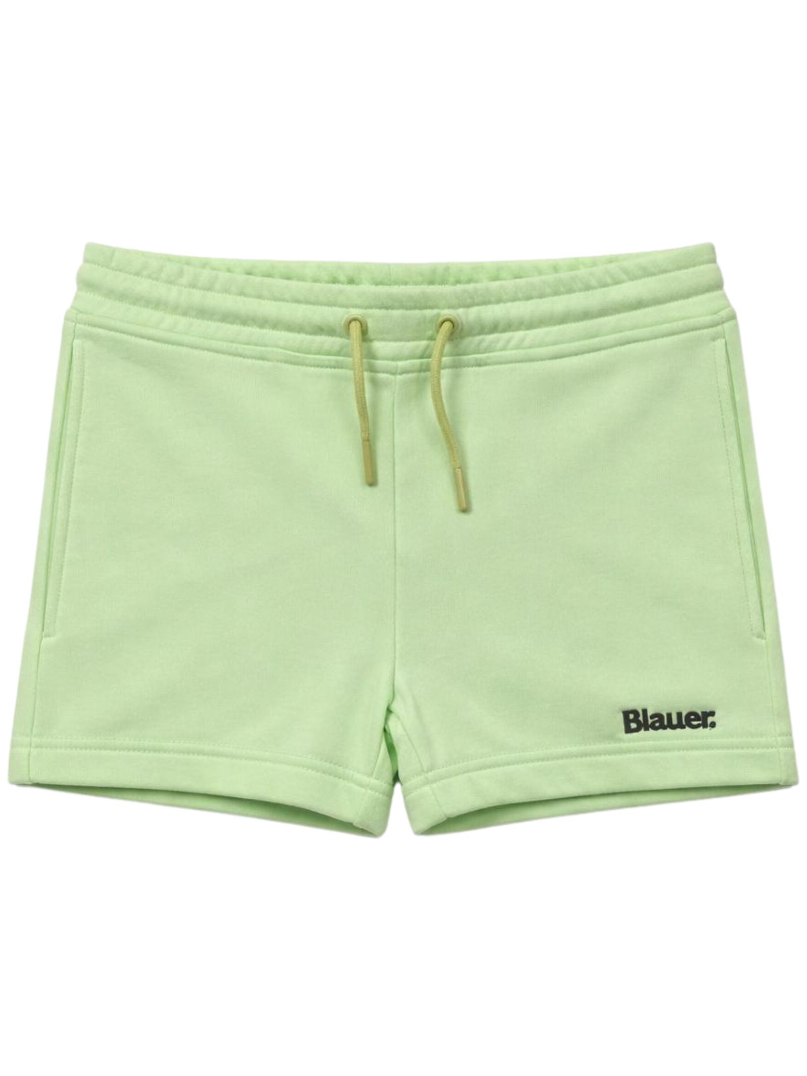 Blauer Kids green shorts with an elastic waistband and drawstring, front logo embroidery, two pockets, and a regular fit. Composition: 100% cotton.