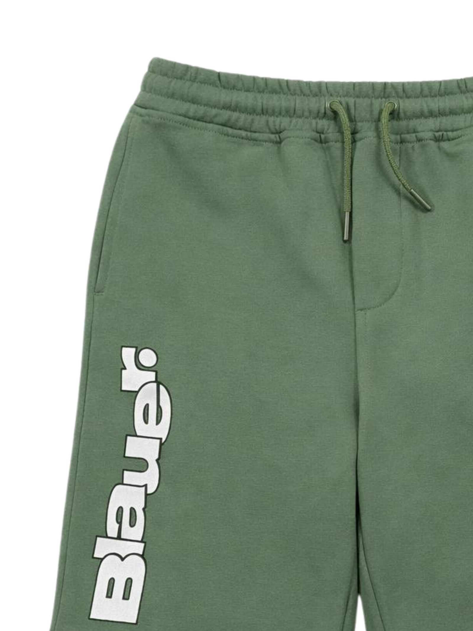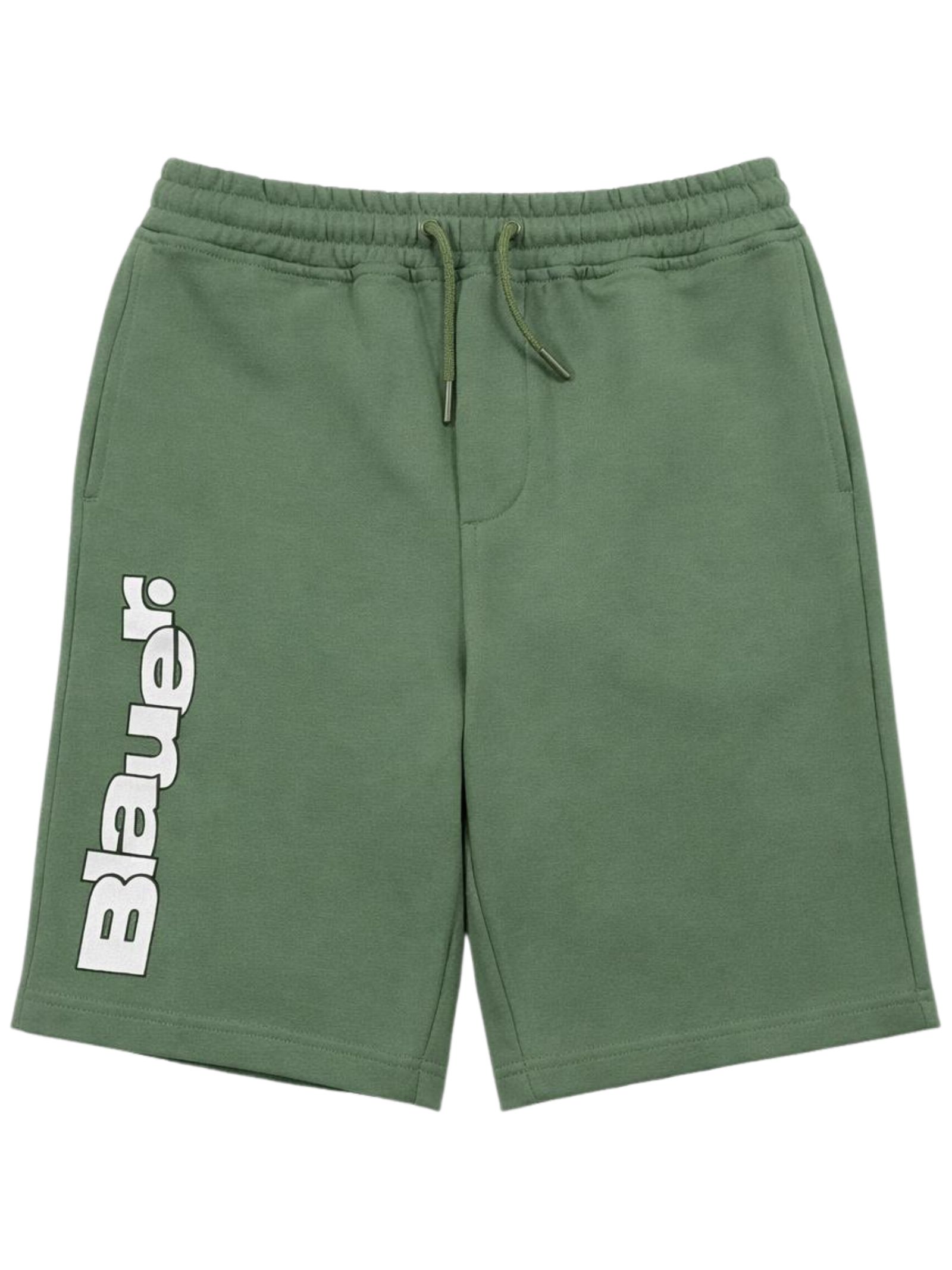 Blauer Kids green Bermuda shorts with an elastic waistband and drawstring, two side pockets, a contrasting logo print, and a regular fit. Composition: 100% cotton.