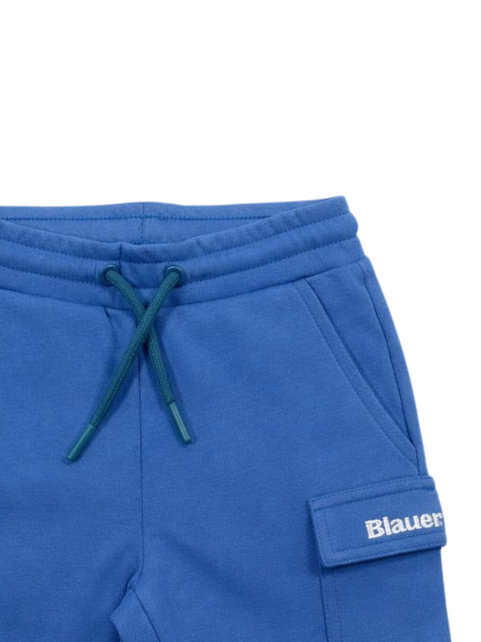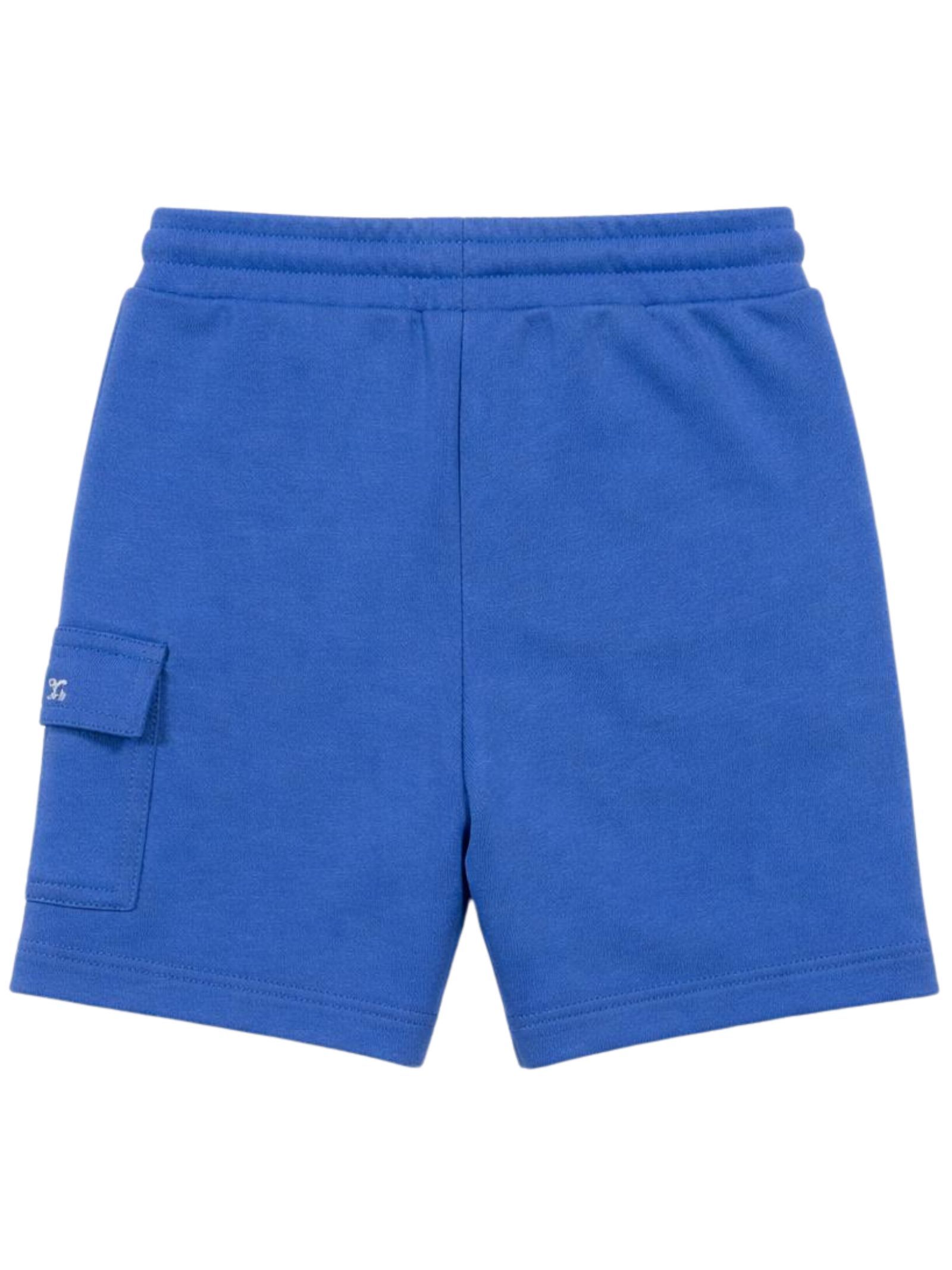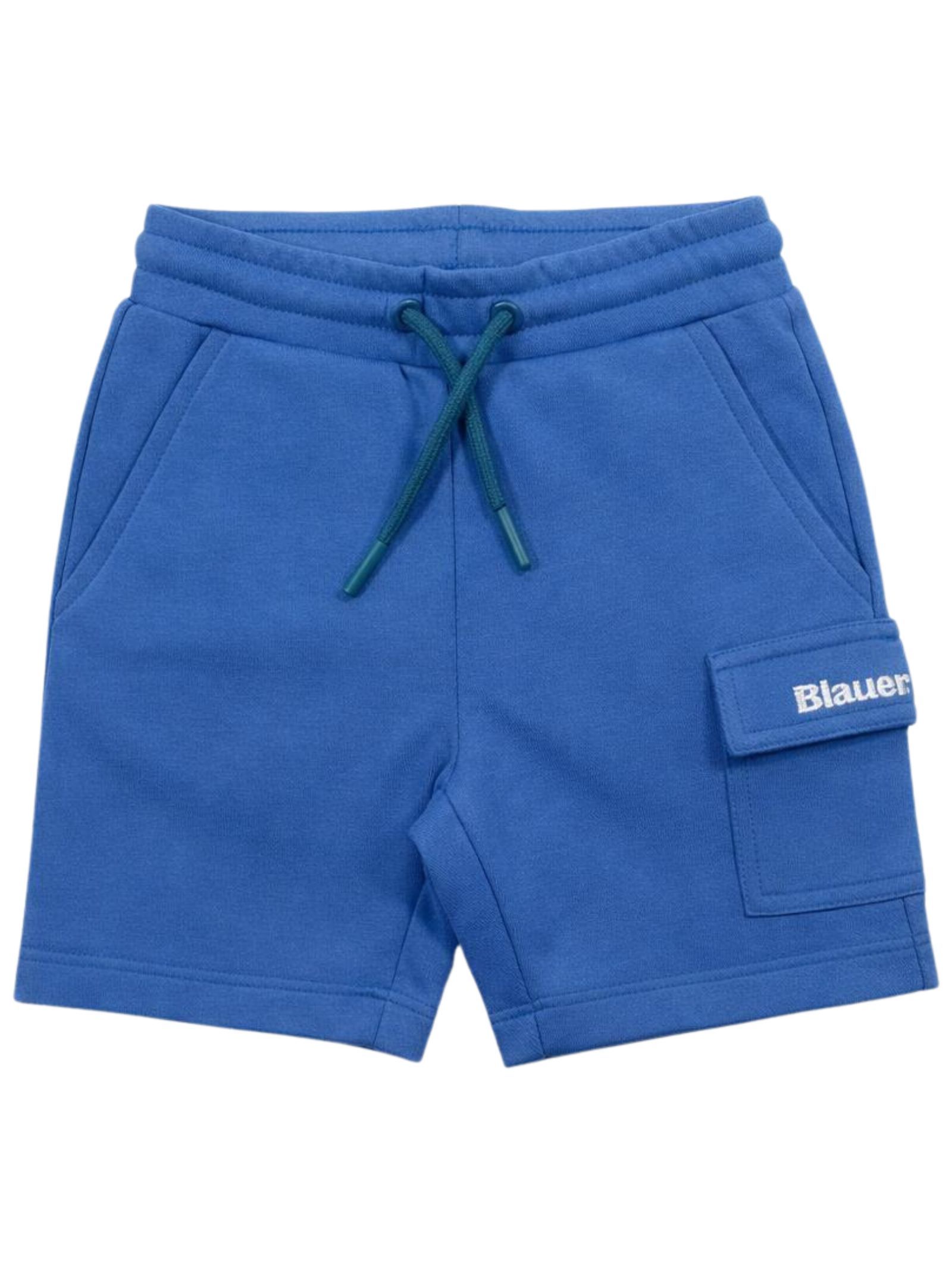 Blauer Kids light blue shorts with an elasticated waist, two side pockets, a cargo pocket, contrasting logo embroidery, and a regular fit. Composition: 80% cotton, 20% polyester.