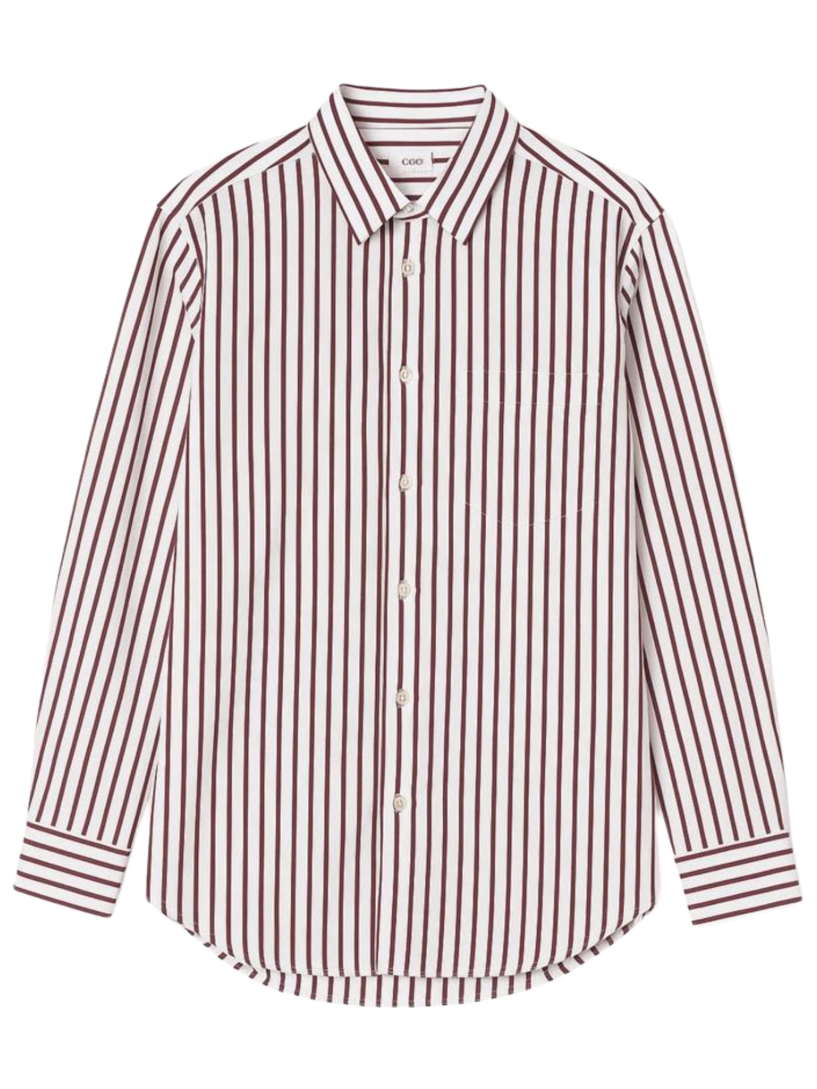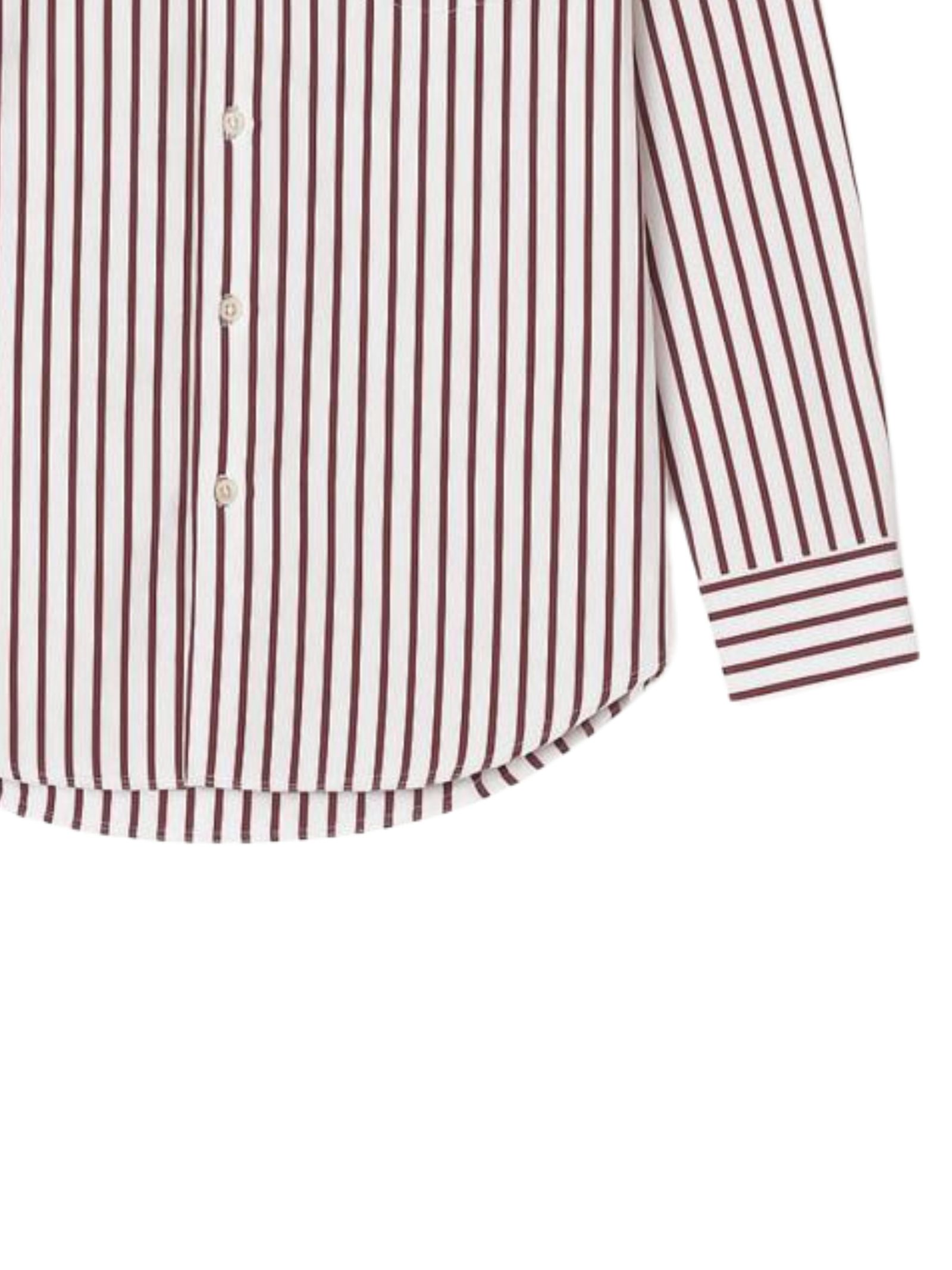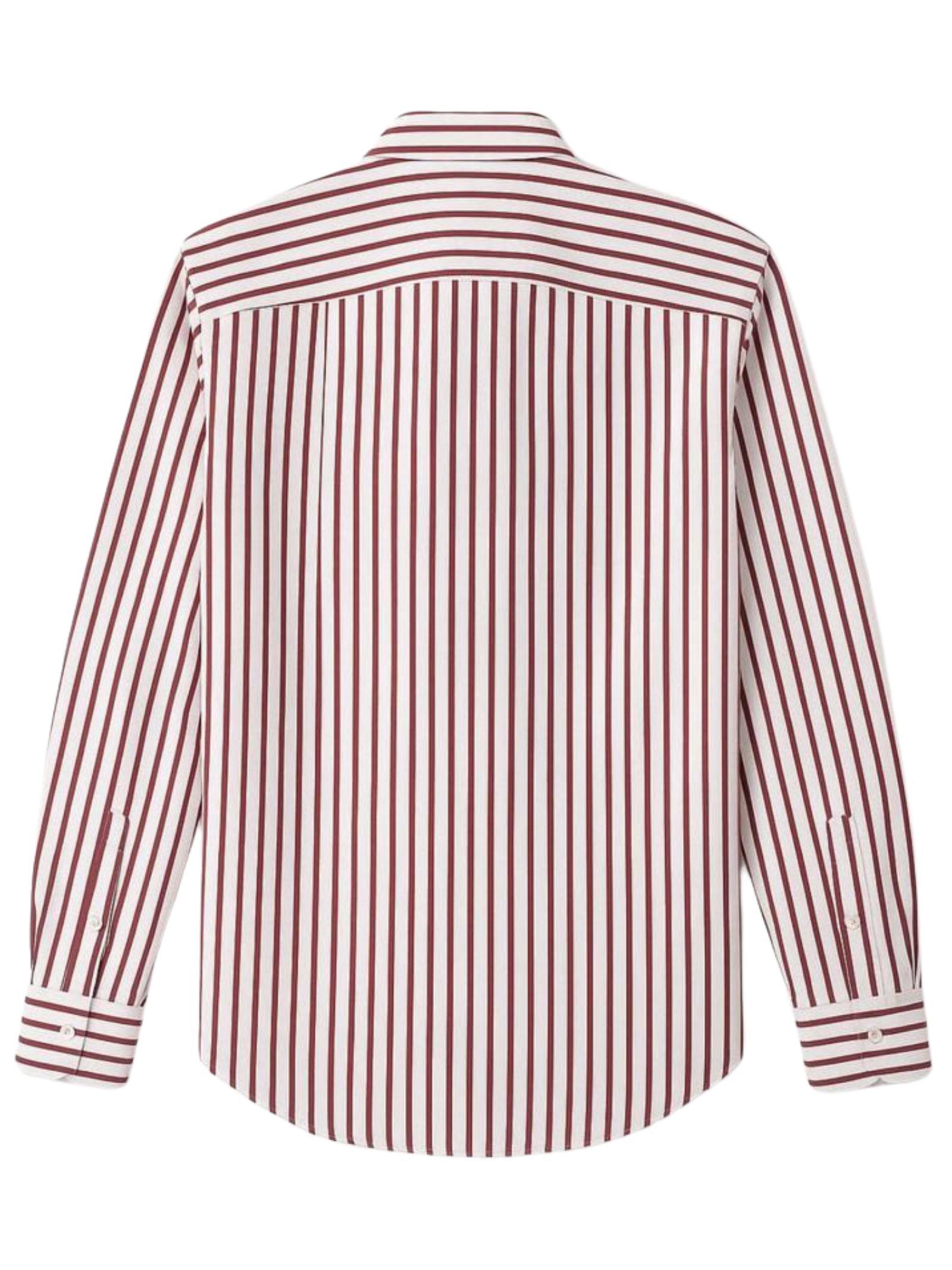 Costumein Kids beige/pink striped shirt, classic collar, long sleeves, front button closure, chest patch pocket, curved hem, regular fit. Composition: 91% viscose, 9% polyamide. Made in Italy.
