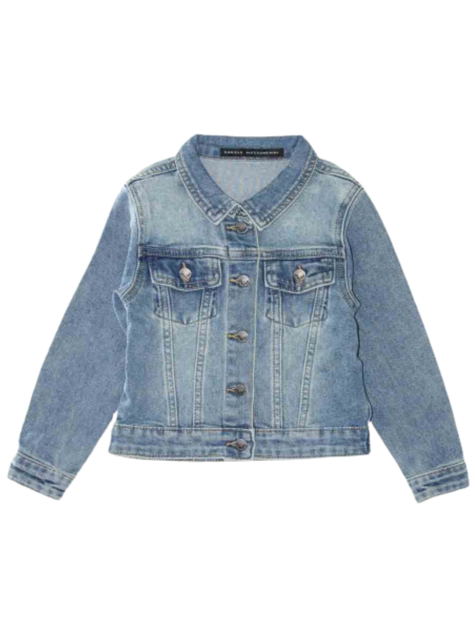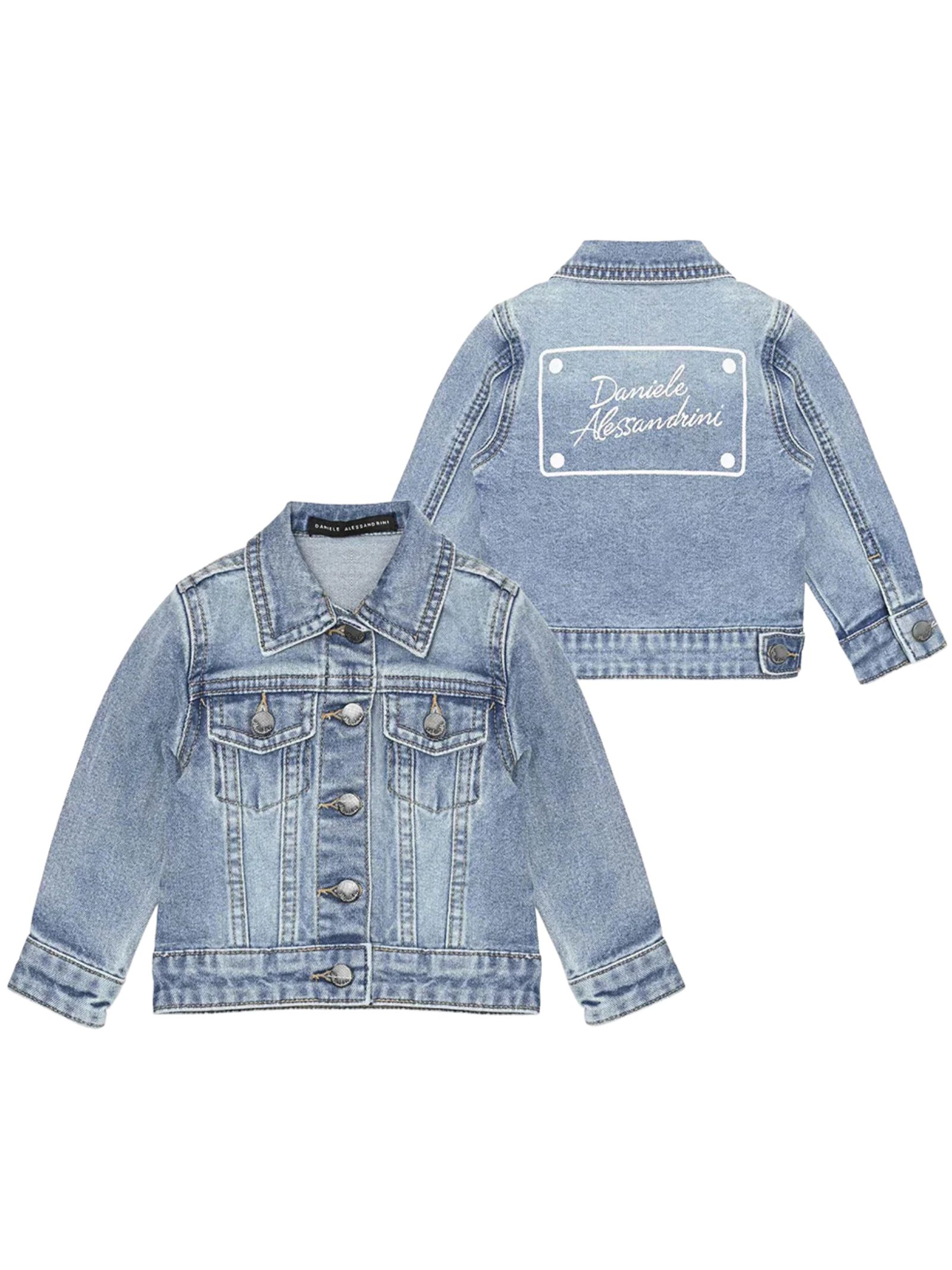 Daniele Alessandrini Kids cotton denim jacket, medium-light wash with fading, long sleeves, two chest pockets, regular fit. Composition: 98% Cotton 2% Elastane