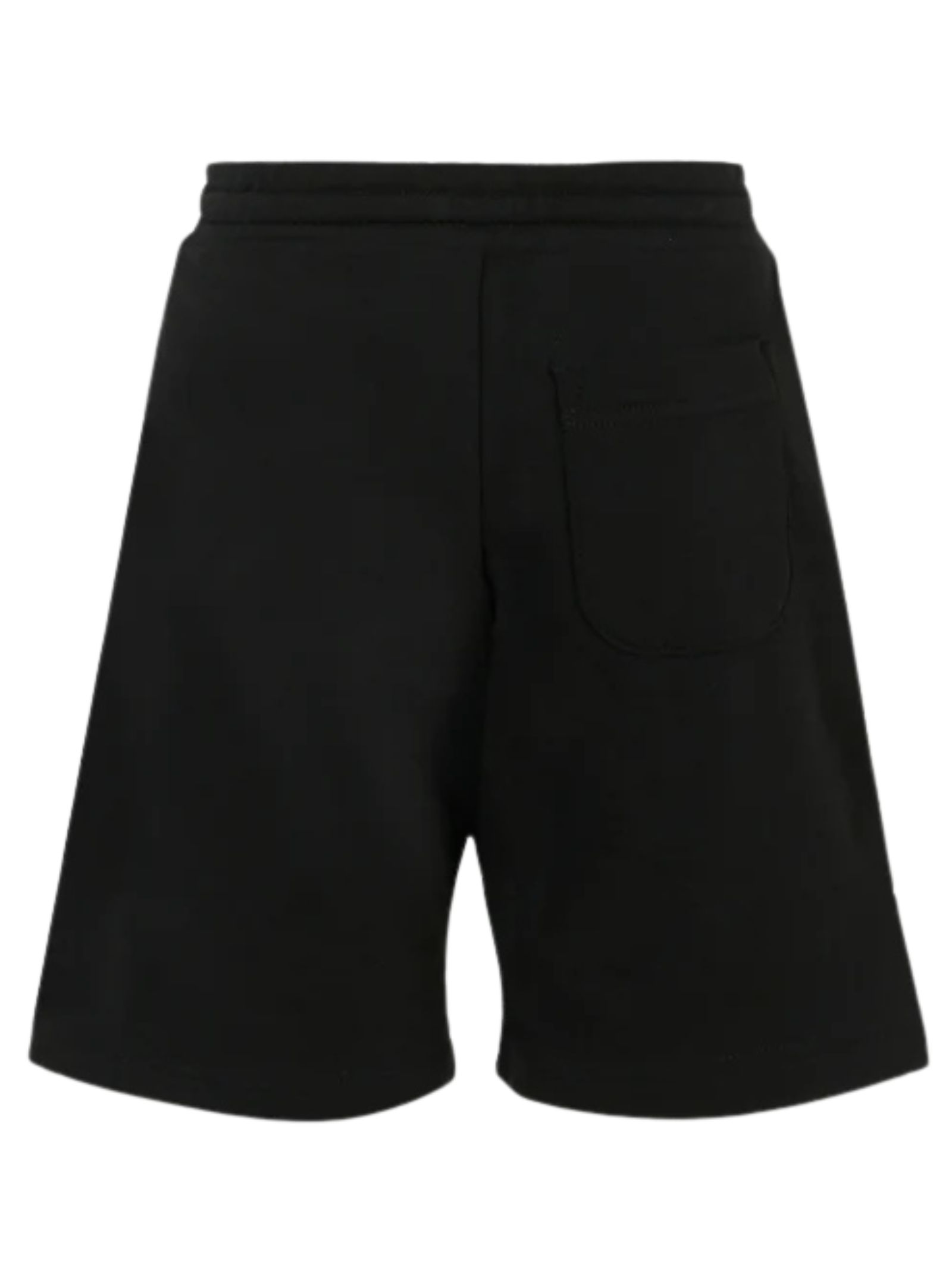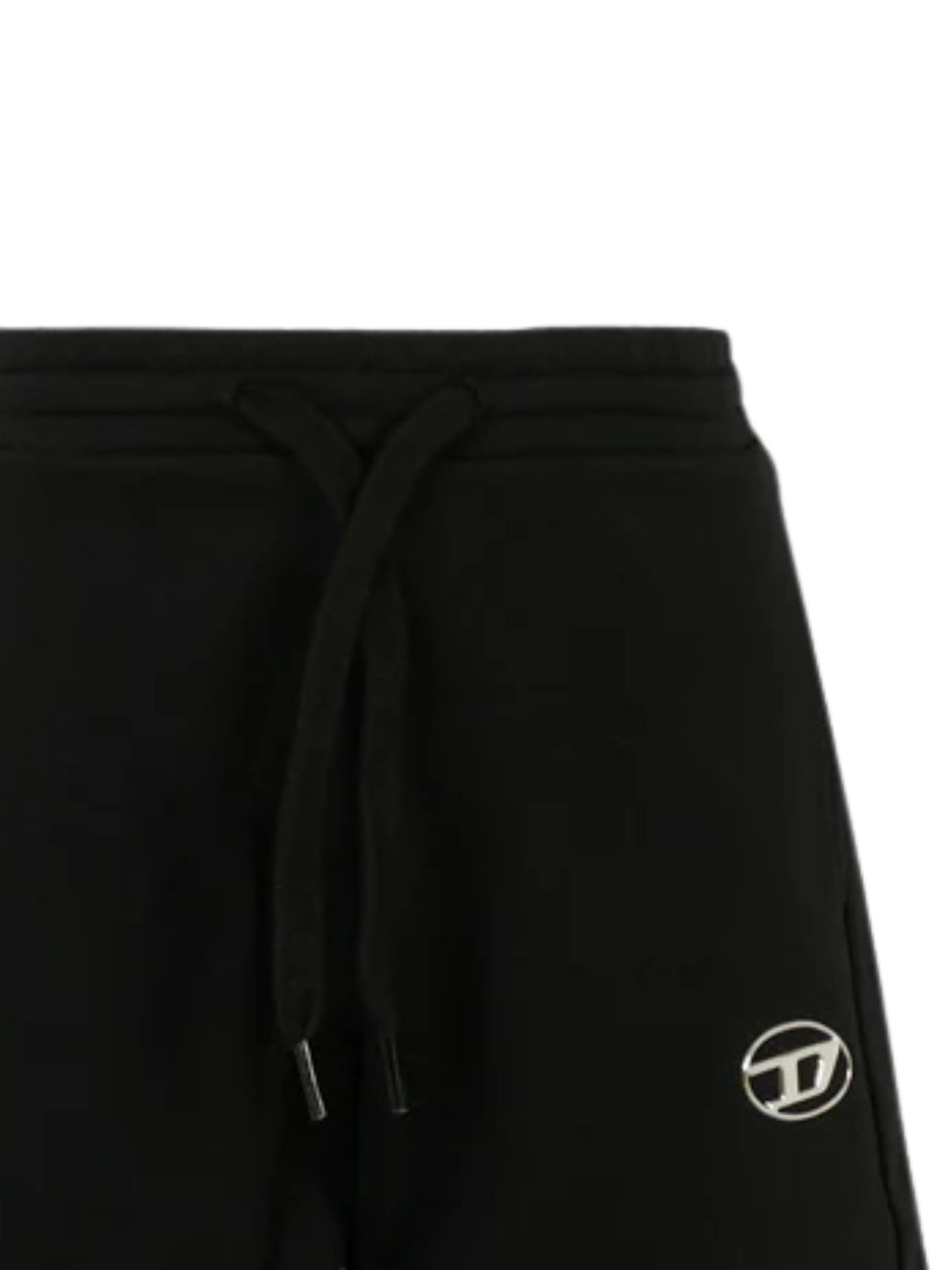 Diesel Kids black Bermuda shorts with an elasticated waist, drawstring, side pockets and a back pocket, decorated with an embossed silver logo on one leg, regular fit. Composition: 100% cotton.
