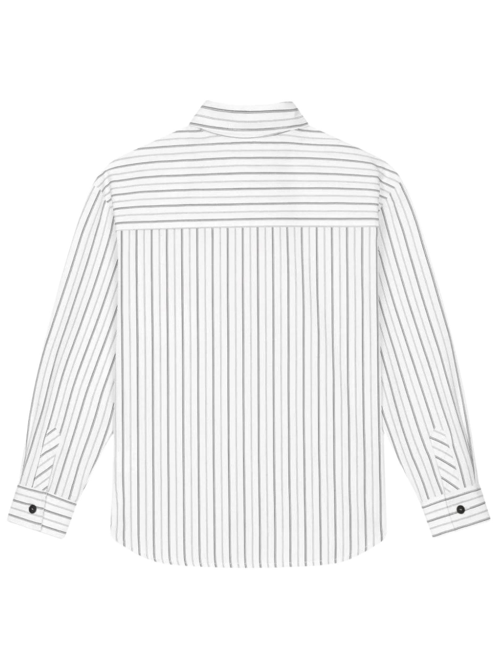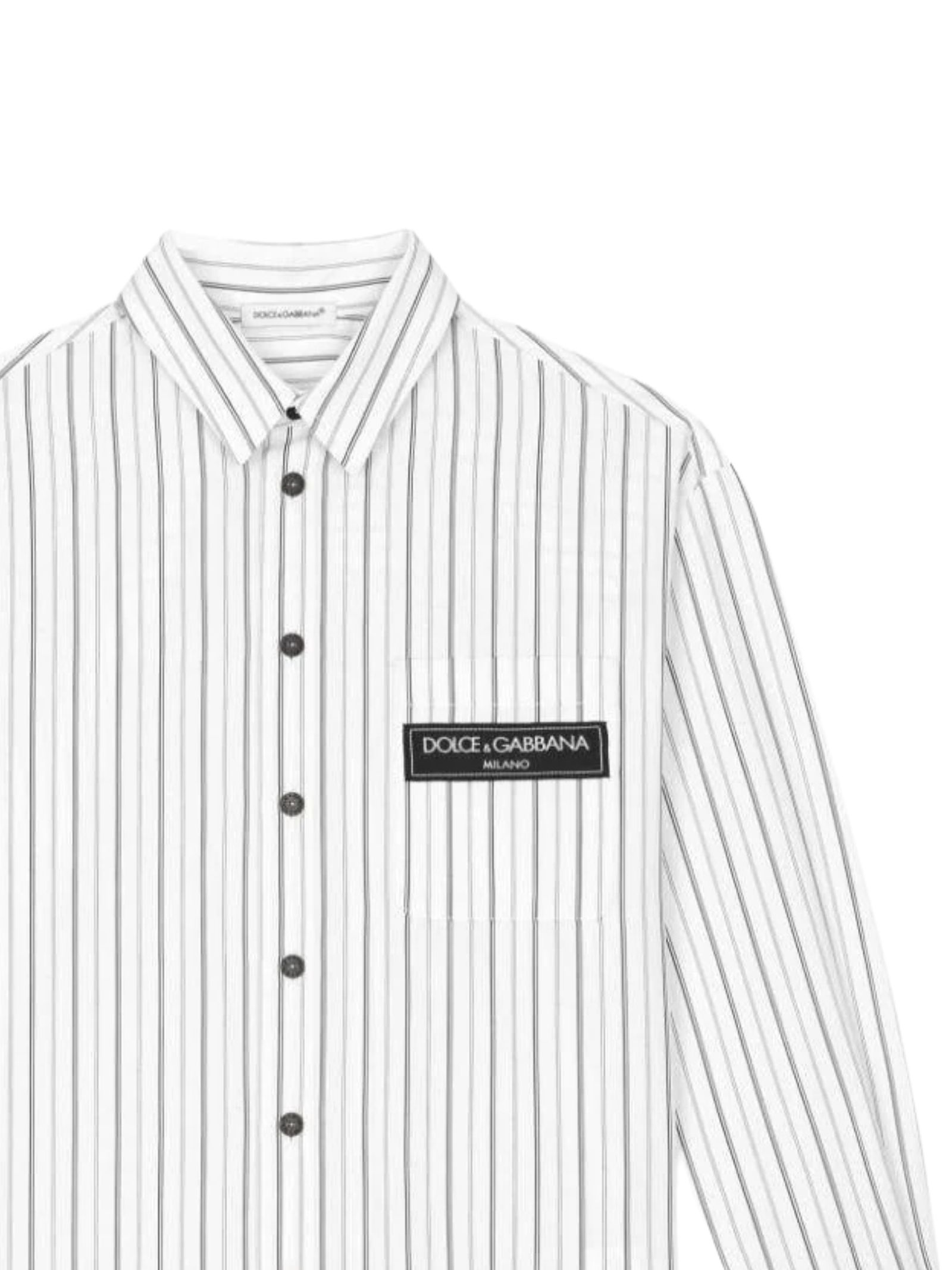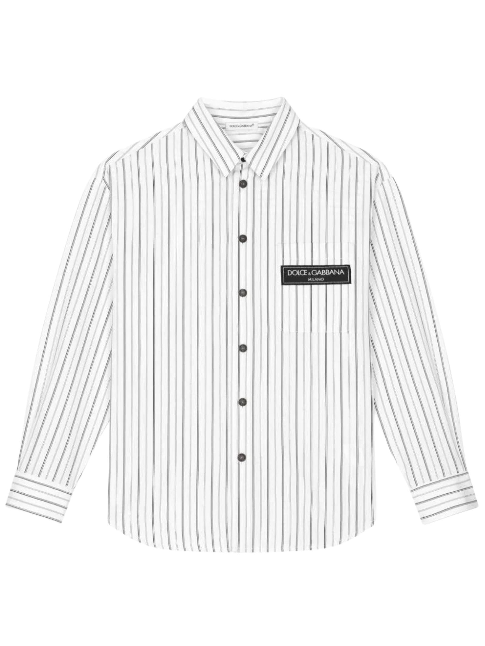Dolce & Gabbana Kids white shirt with contrasting black stripes, poplin fabric, chest pocket with logo print, front button closure, classic collar, long sleeves, curved hem, regular fit. Composition: 100% cotton. Made in Italy.