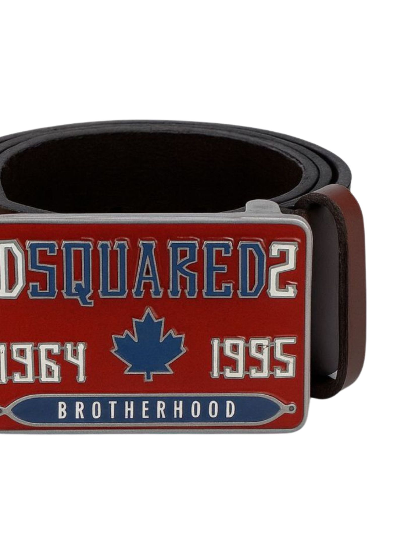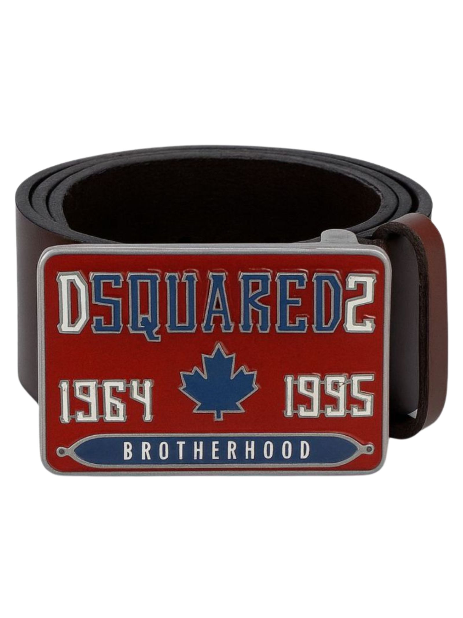 Dsquared Kids brown leather belt with a rectangular central buckle and contrasting logo, adjustable. Made in Italy.