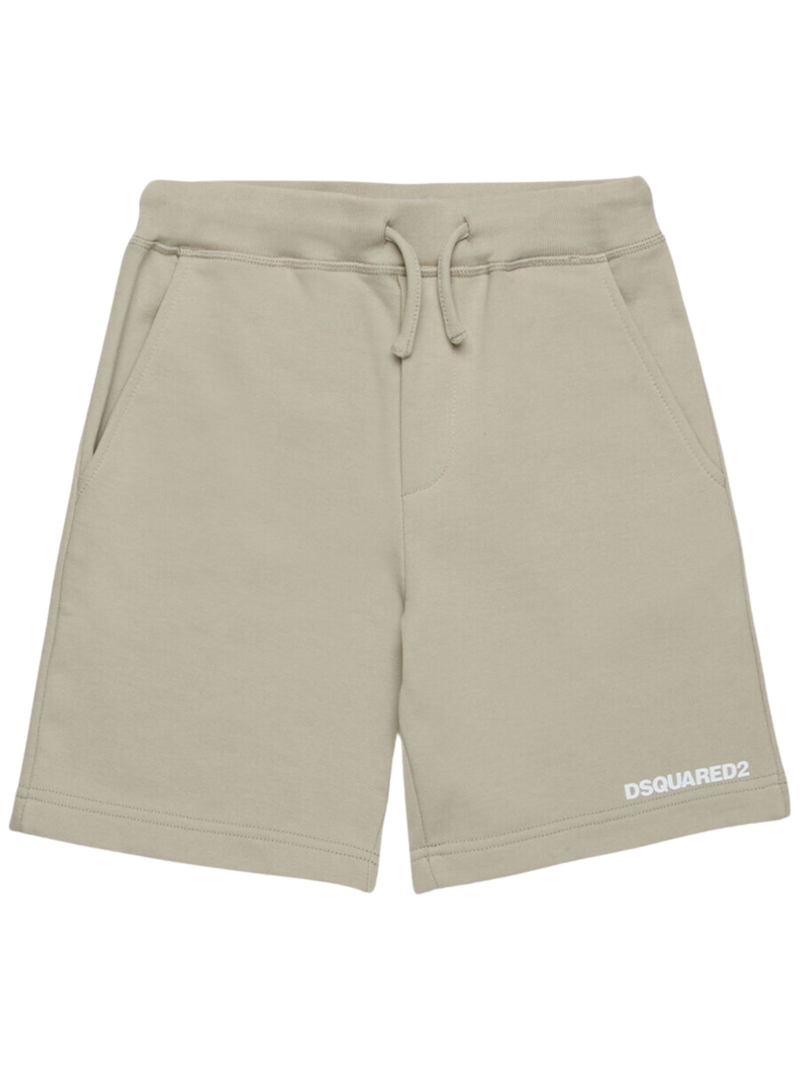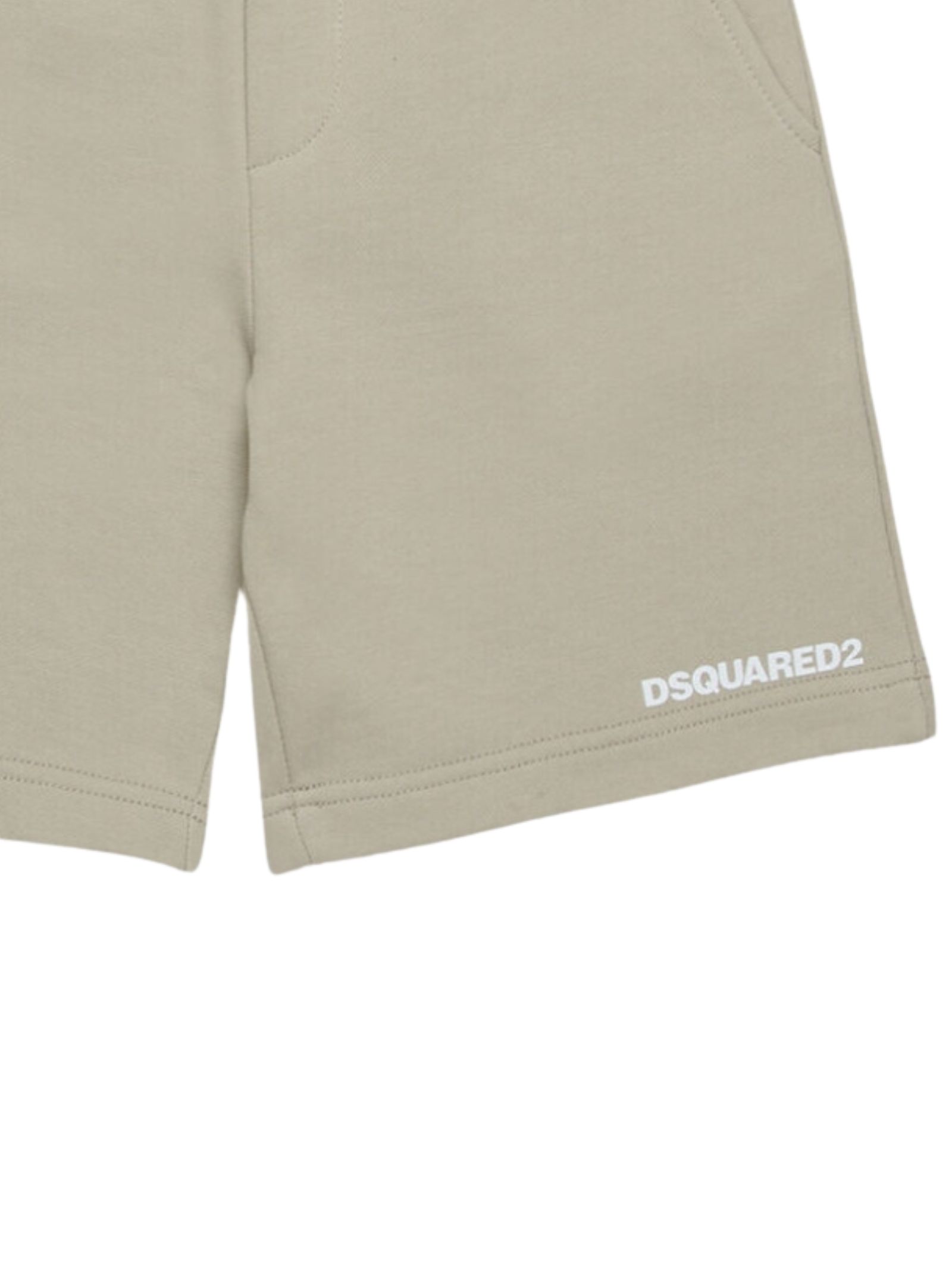 Dsquared2 Kids sand-colored Bermuda shorts, two side welt pockets, elastic waistband with drawstring, contrasting white logo print, regular fit. Composition: 100% cotton.