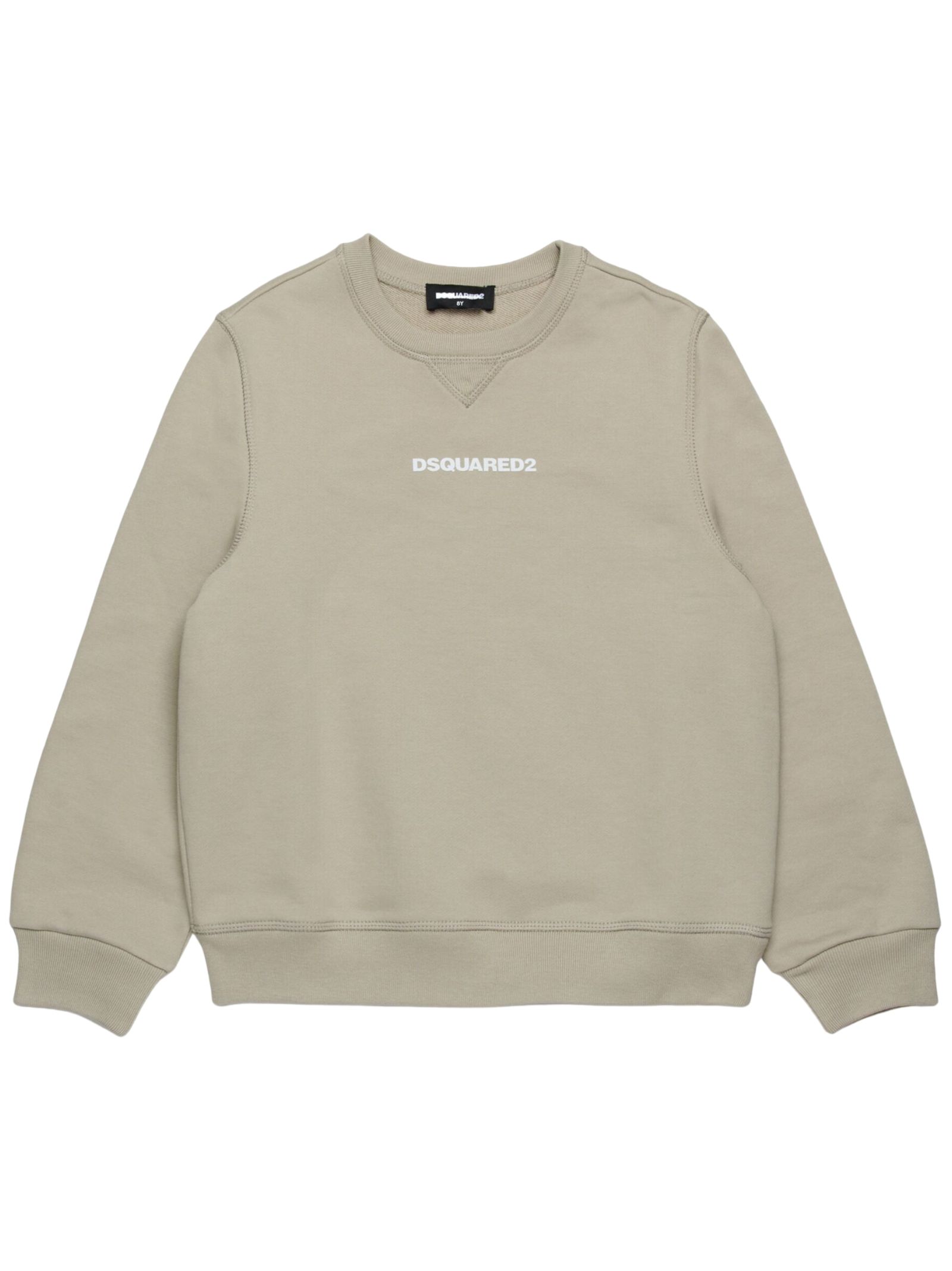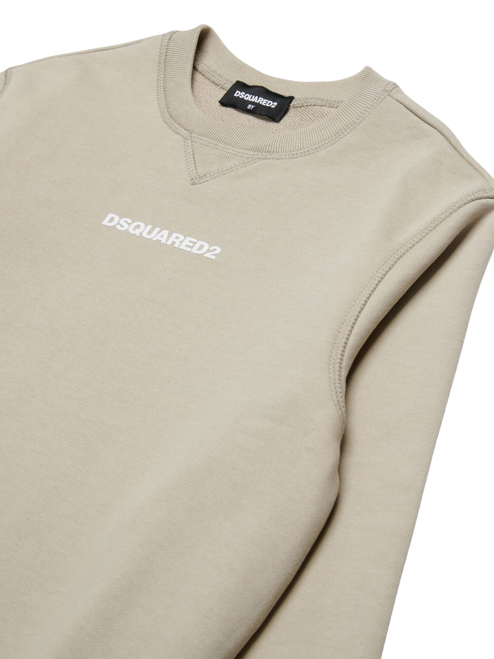 Dsquared2 Kids sand-colored sweatshirt, crew neck, long sleeves, contrasting white central logo, ribbed cuffs, regular fit. Composition: 100% cotton