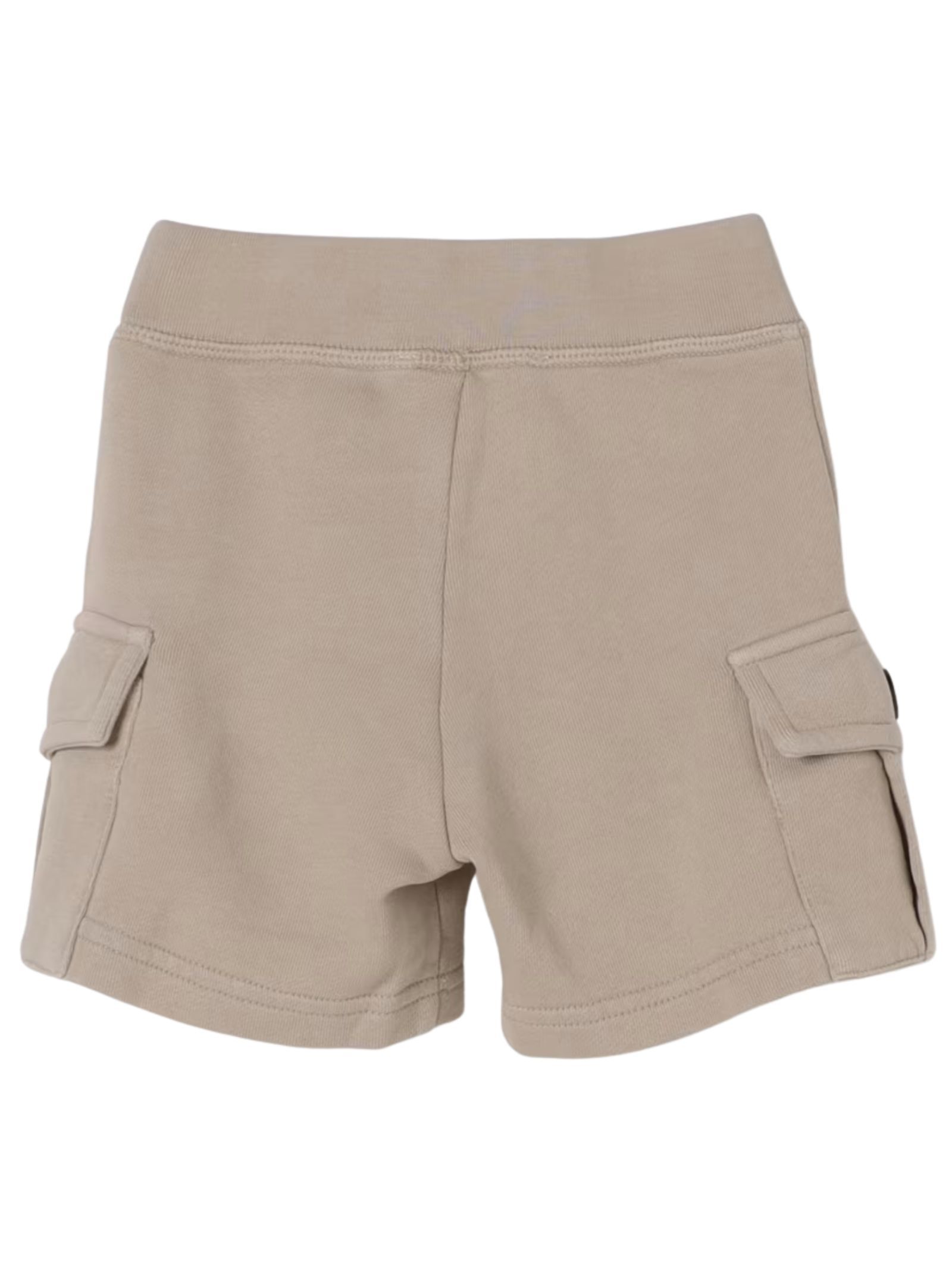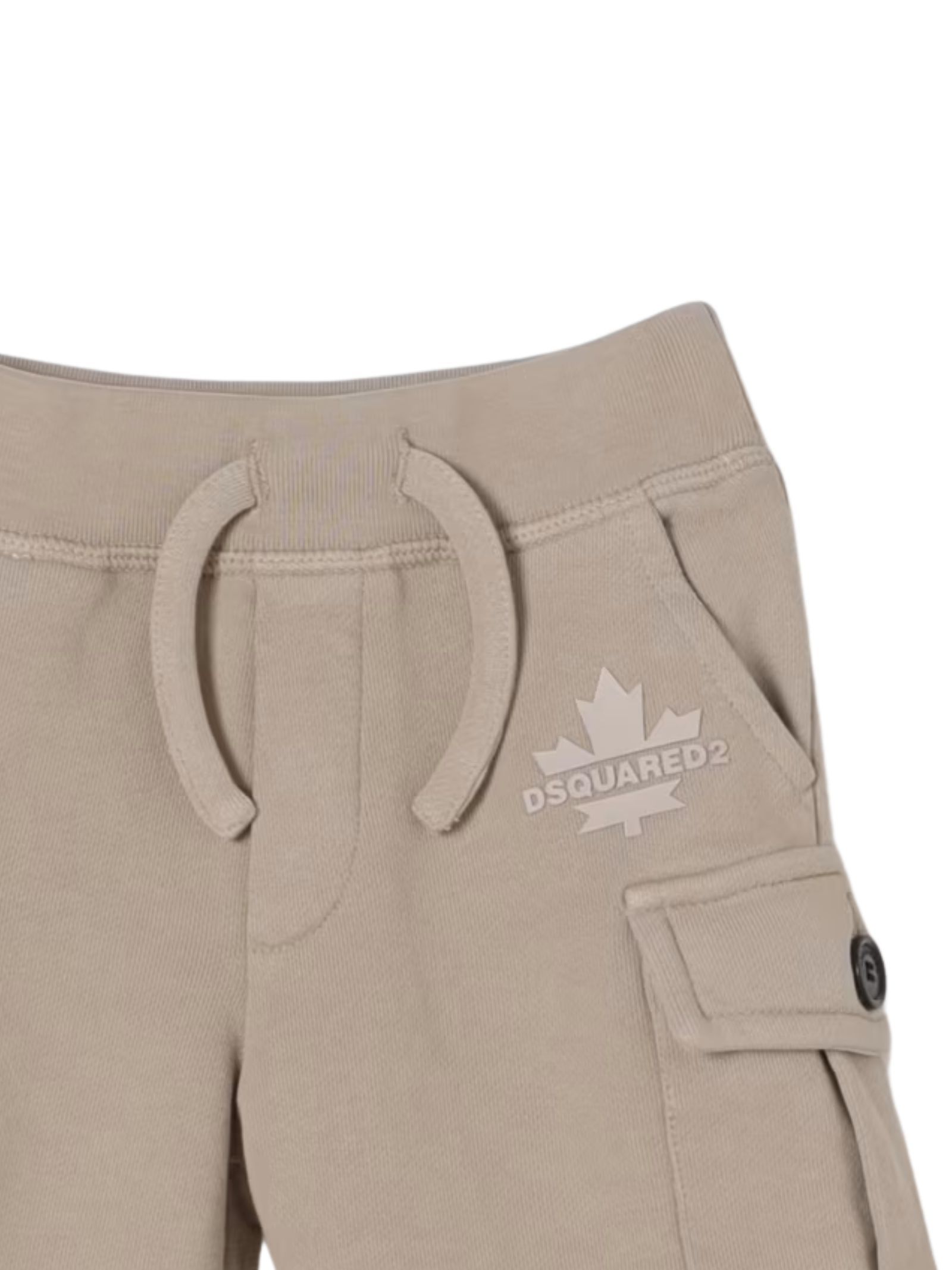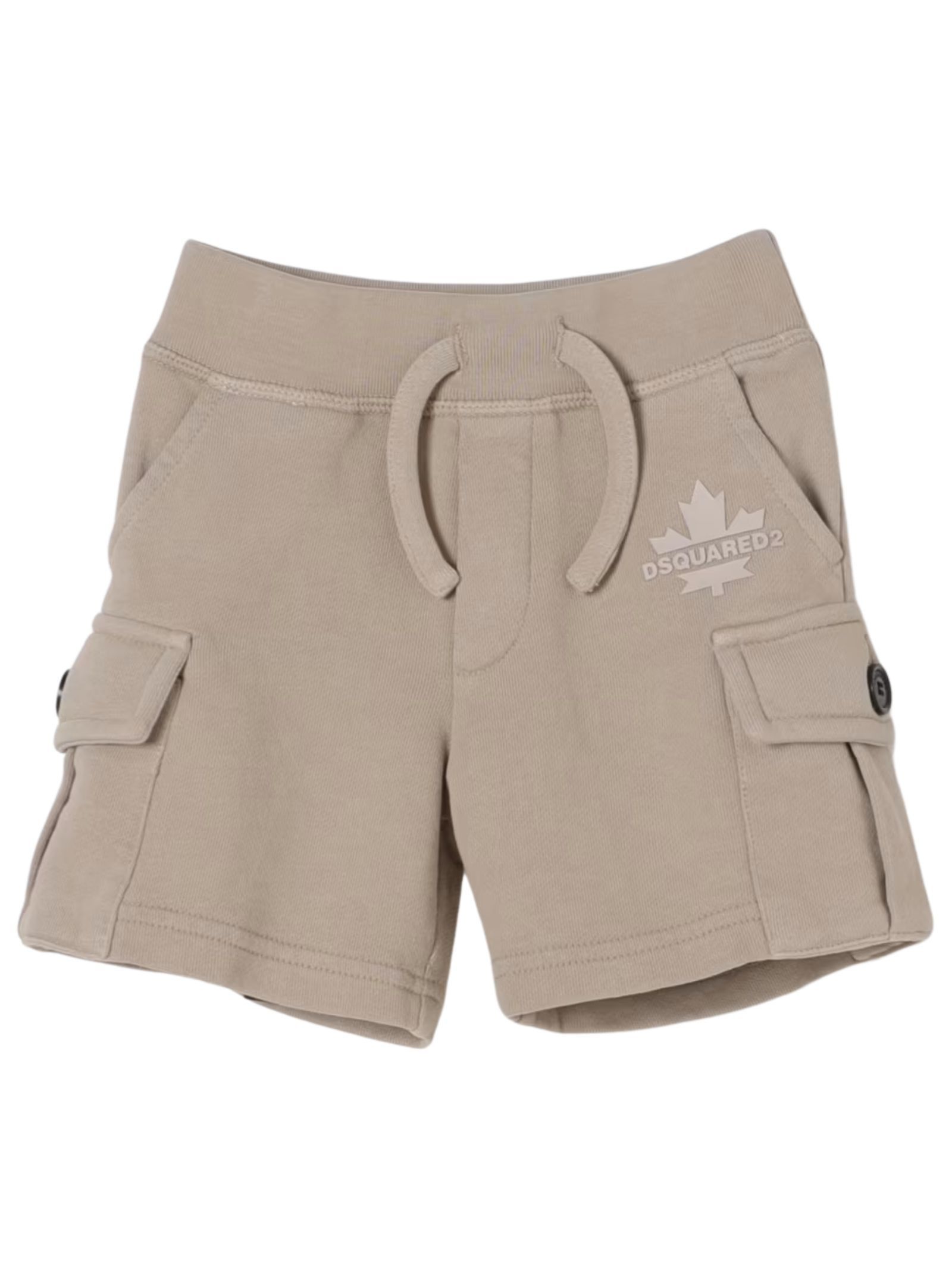 Dsquared2 Kids sand-colored Bermuda shorts, two side welt pockets, large pockets with side buttons, elastic waistband with drawstring, matching rubber logo, regular fit. Composition: 100% cotton.