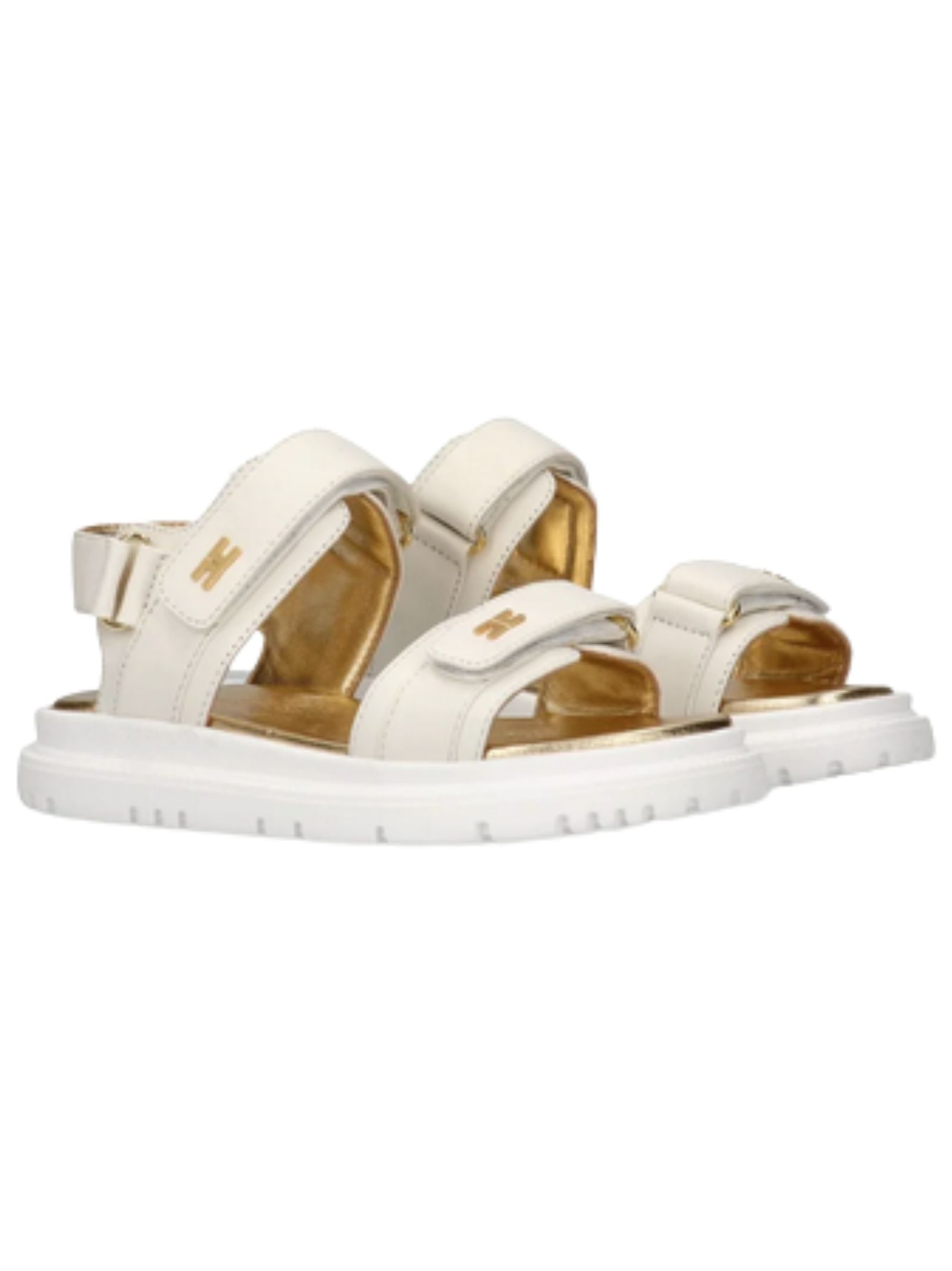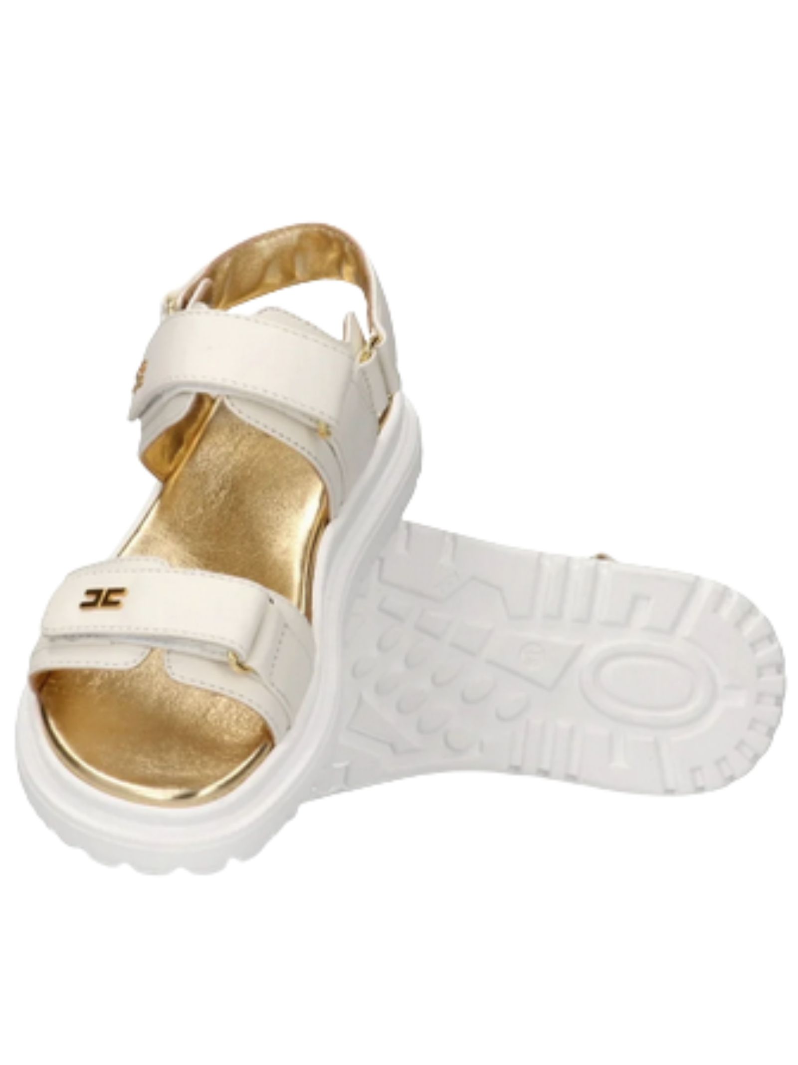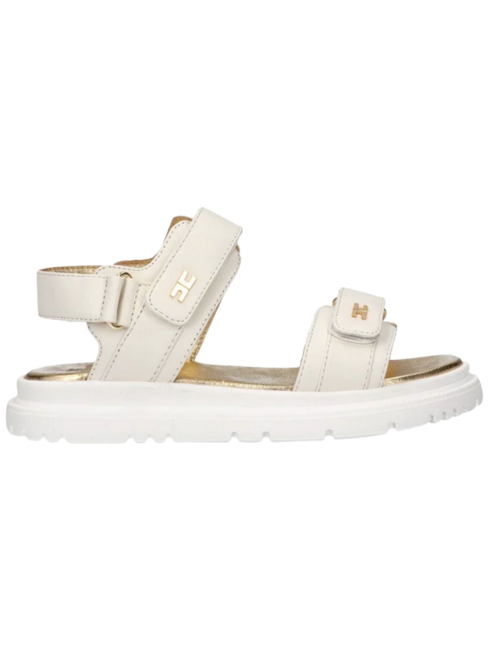 Elisabetta Franchi Kids butter-colored sandals with an adjustable closure, embellished with mini gold CC logos and a lug sole. Made in Italy.