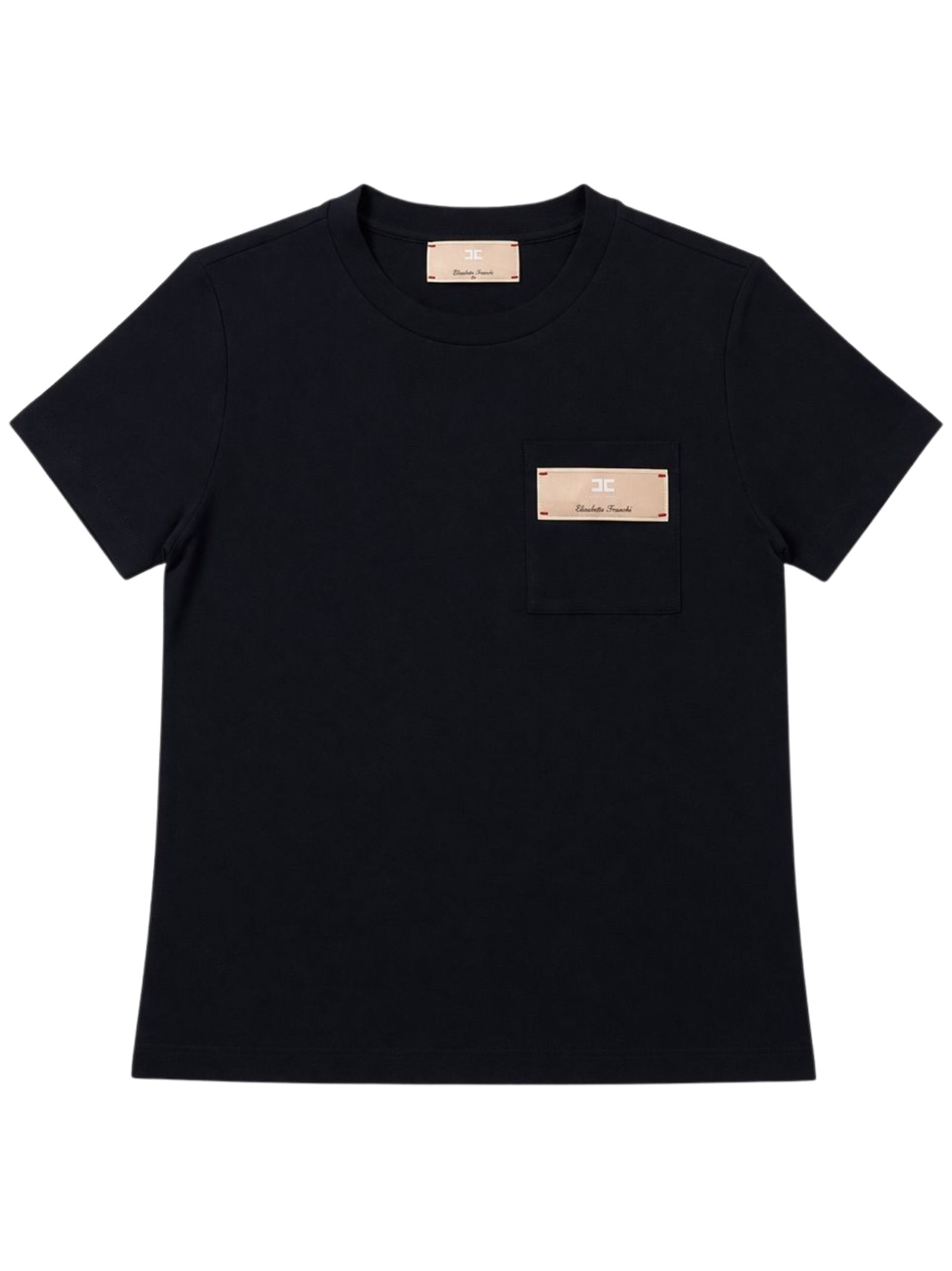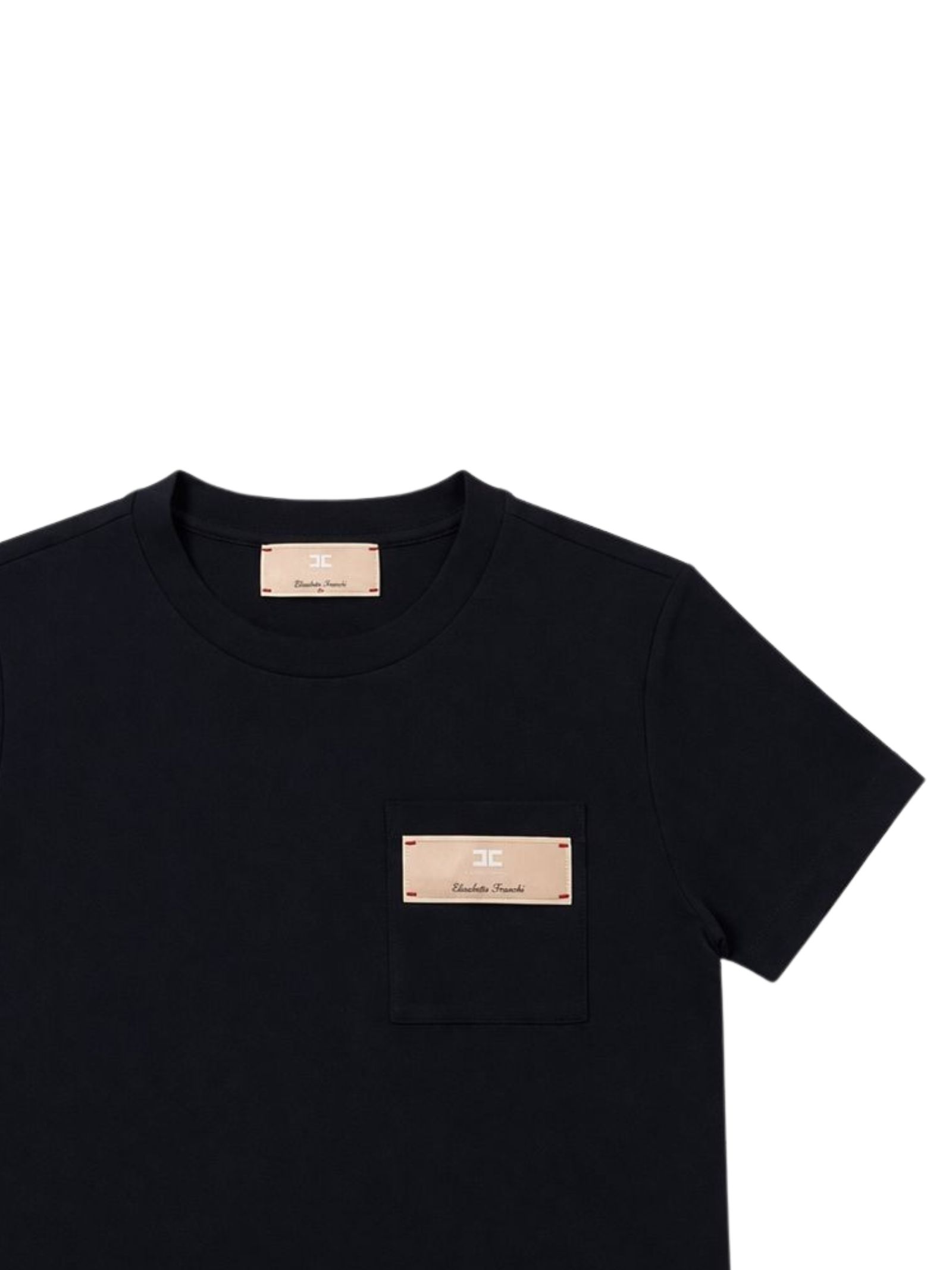 Elisabetta Franchi Kids black T-shirt, crew neck, short sleeves, chest pocket with logo, straight hem, regular fit. Composition: 94% cotton, 6% elastane. Made in Italy.