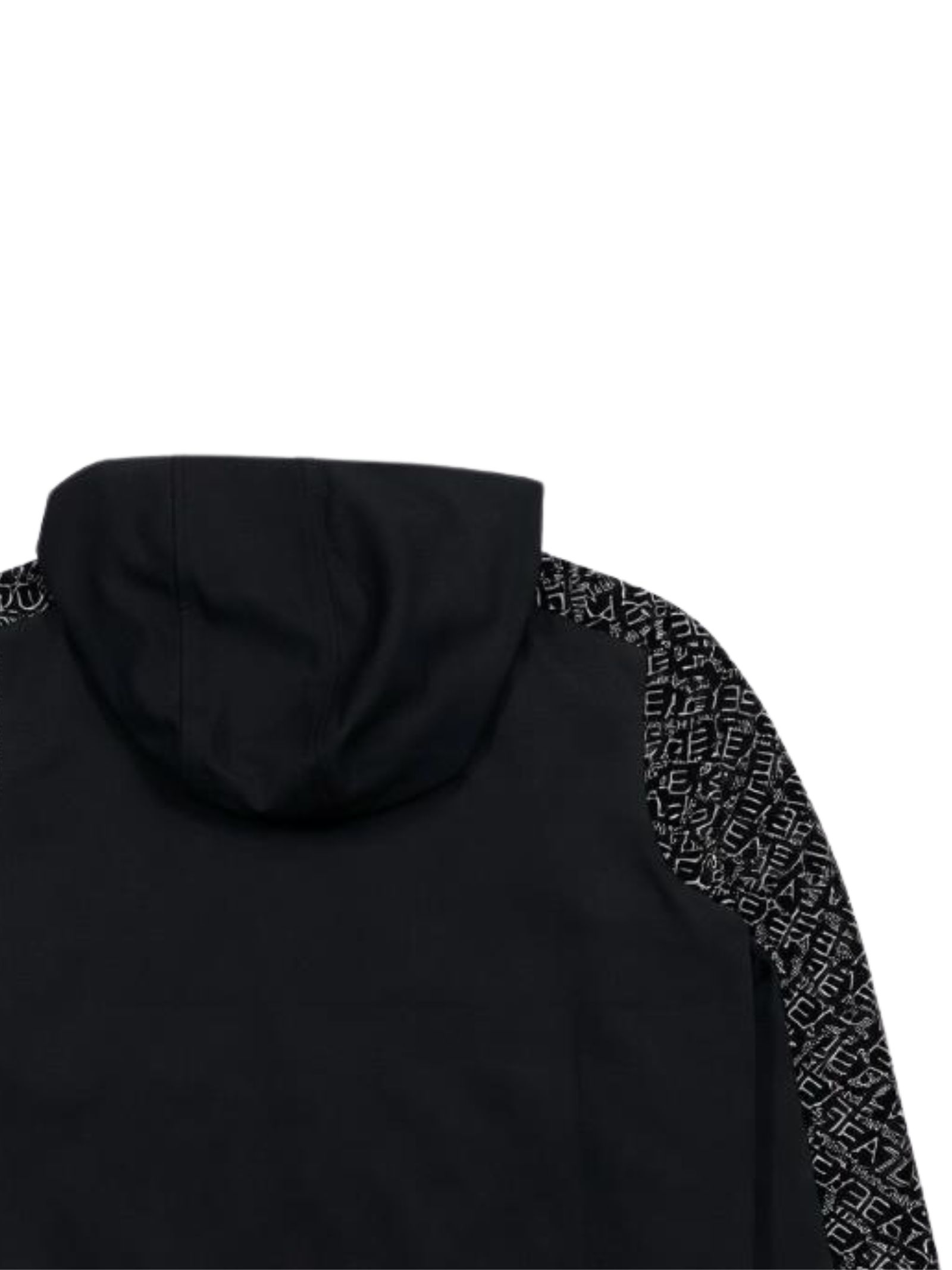 Emporio Armani Junior black sweatshirt with contrasting details, hood, long sleeves, central zip, two side pockets, regular fit. Composition: 100% cotton.