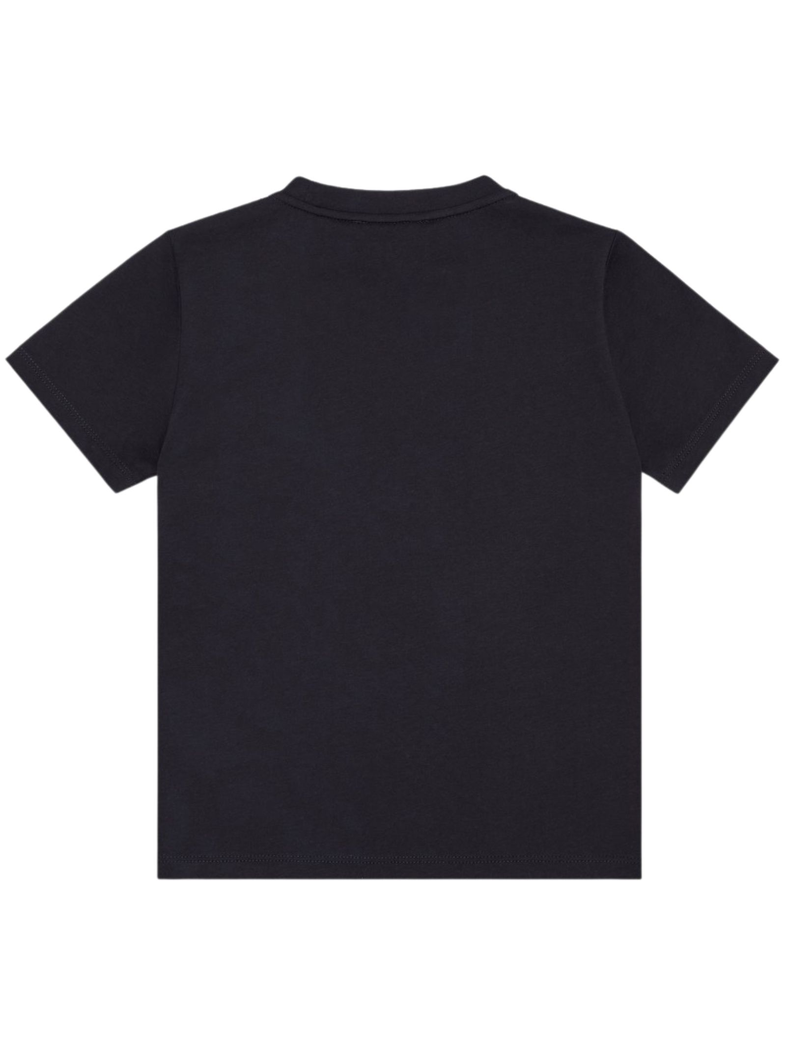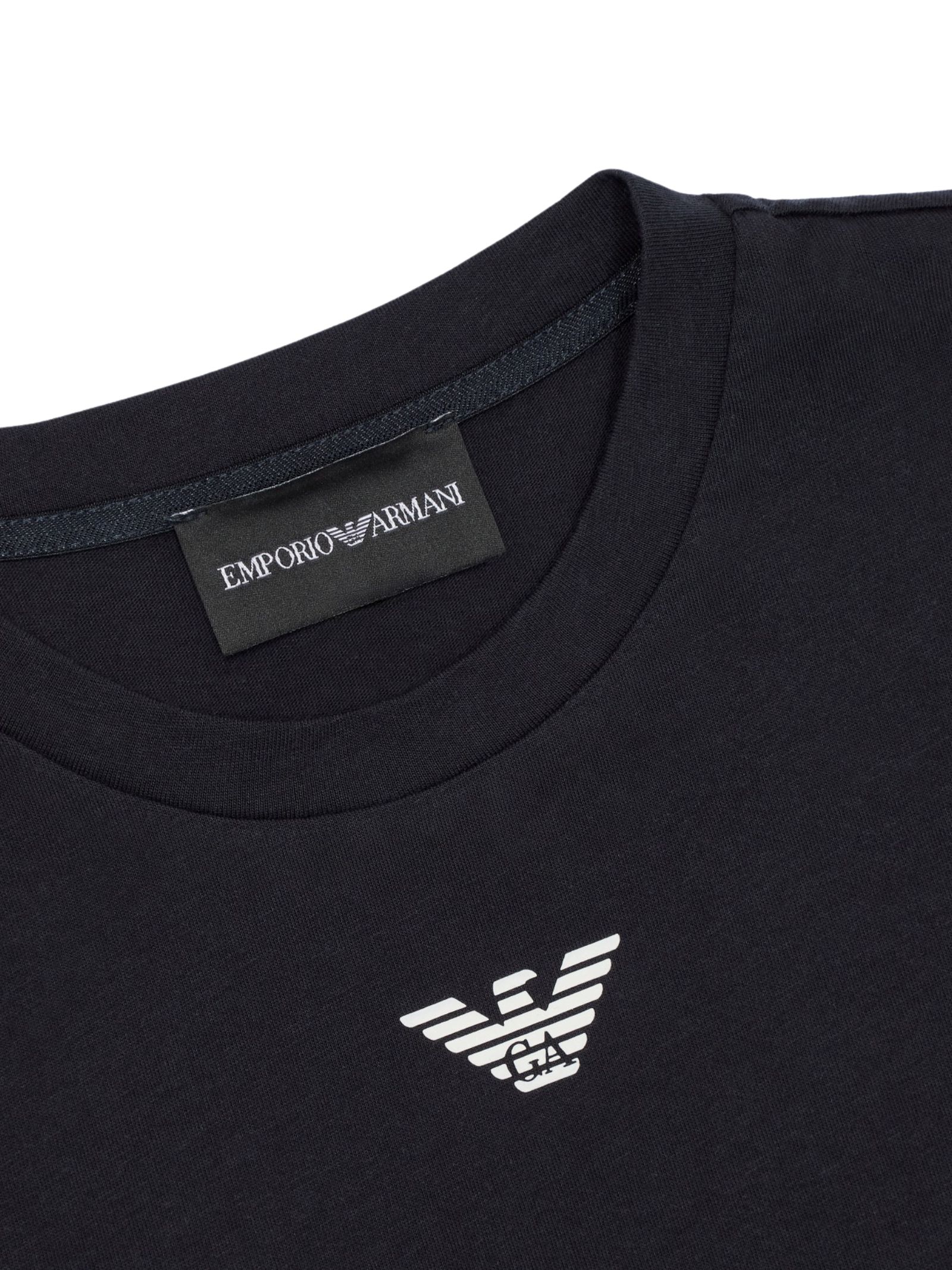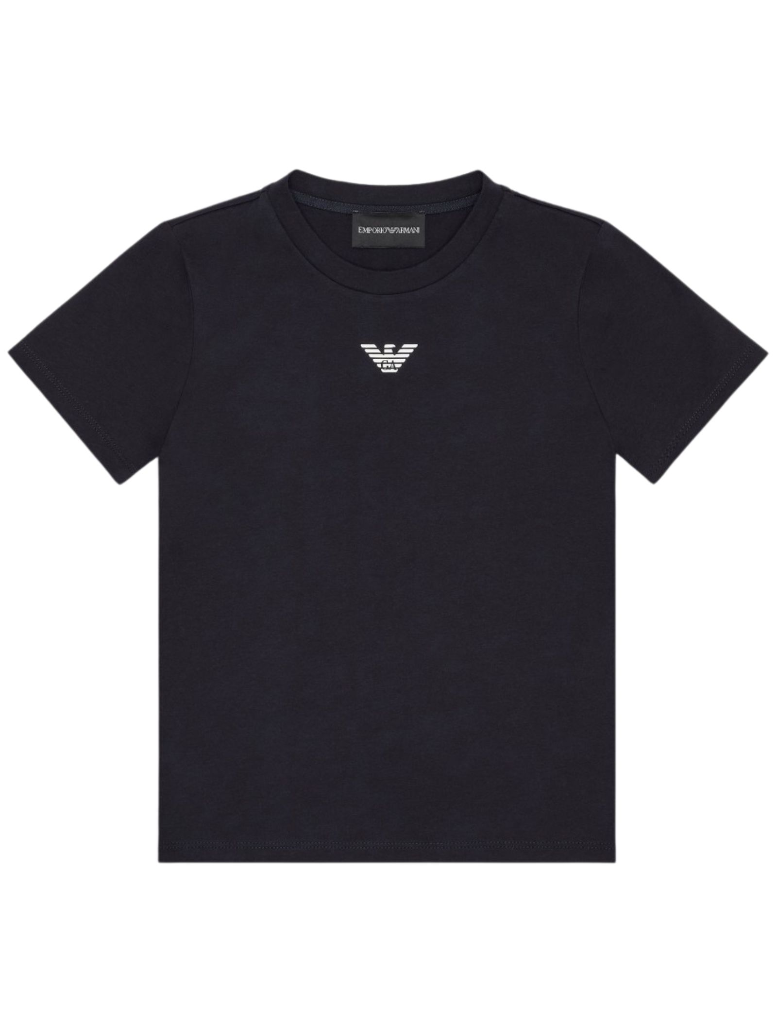 Emporio Armani Junior black T-shirt, crew neck, short sleeves, contrasting white central logo print, regular fit. Composition: 100% cotton
