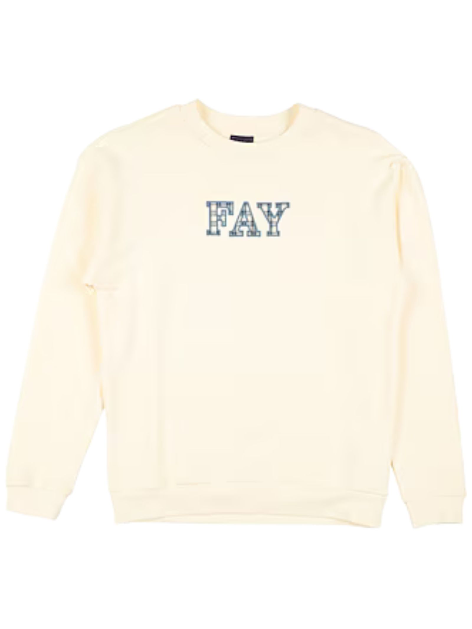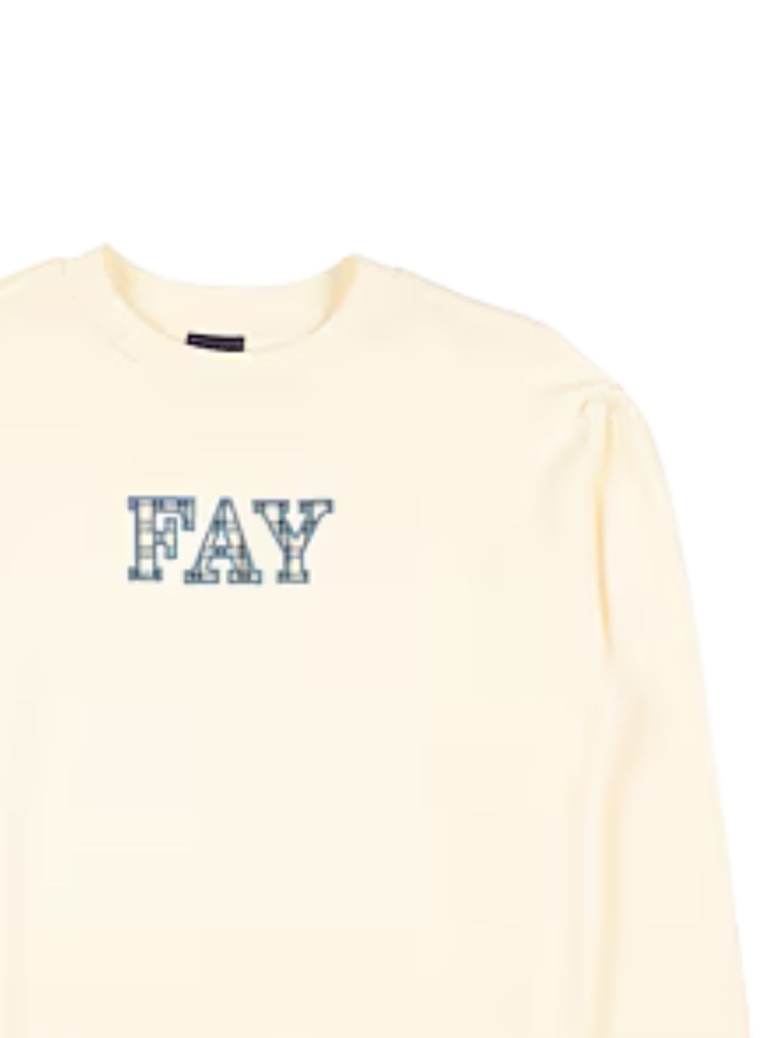 Fay Kids cream-colored sweatshirt with long sleeves, crew neck, ribbed cuffs and hem, decorated with a checked logo embroidered on the front, regular fit. Composition: 100% warm cotton.