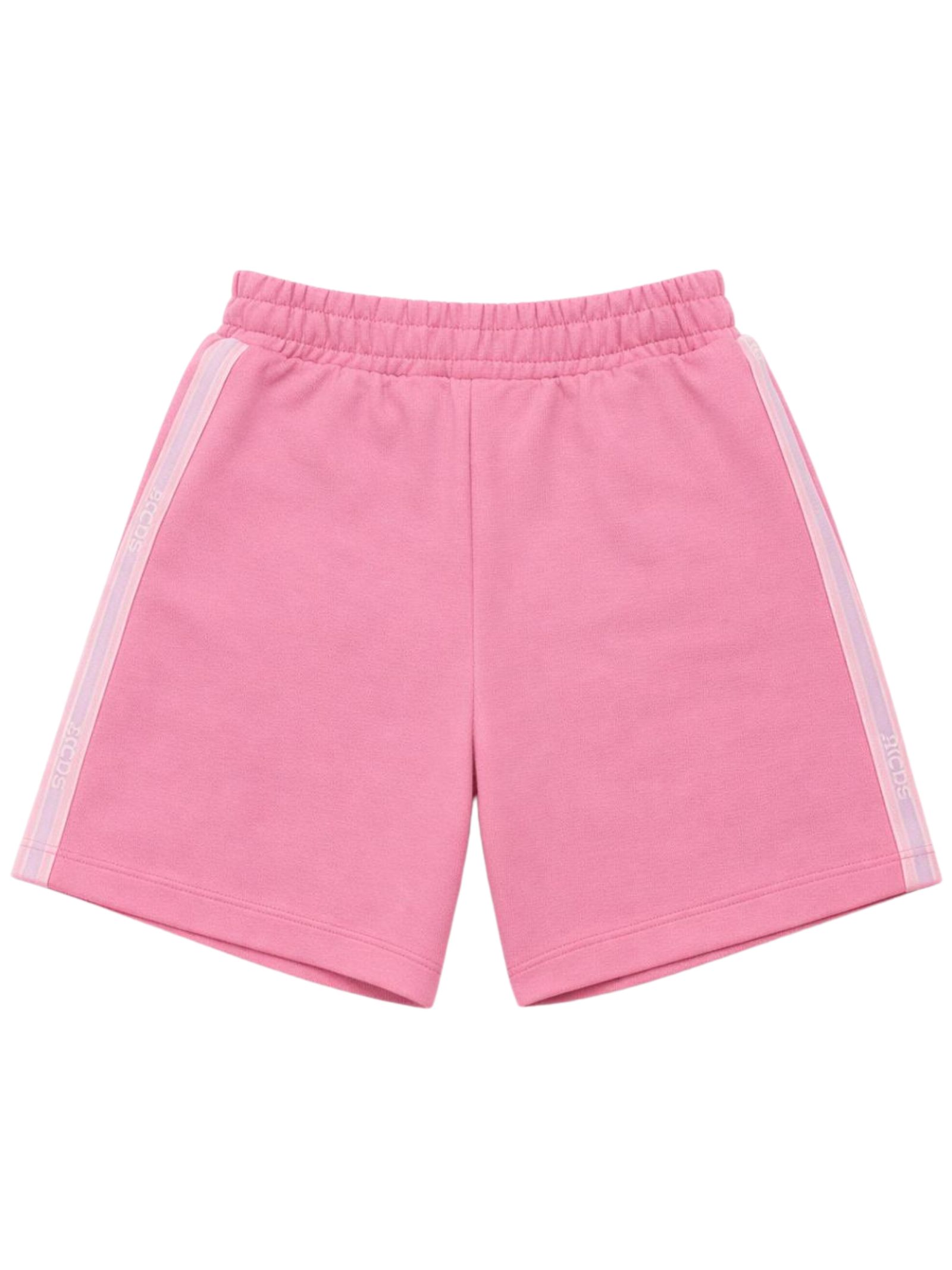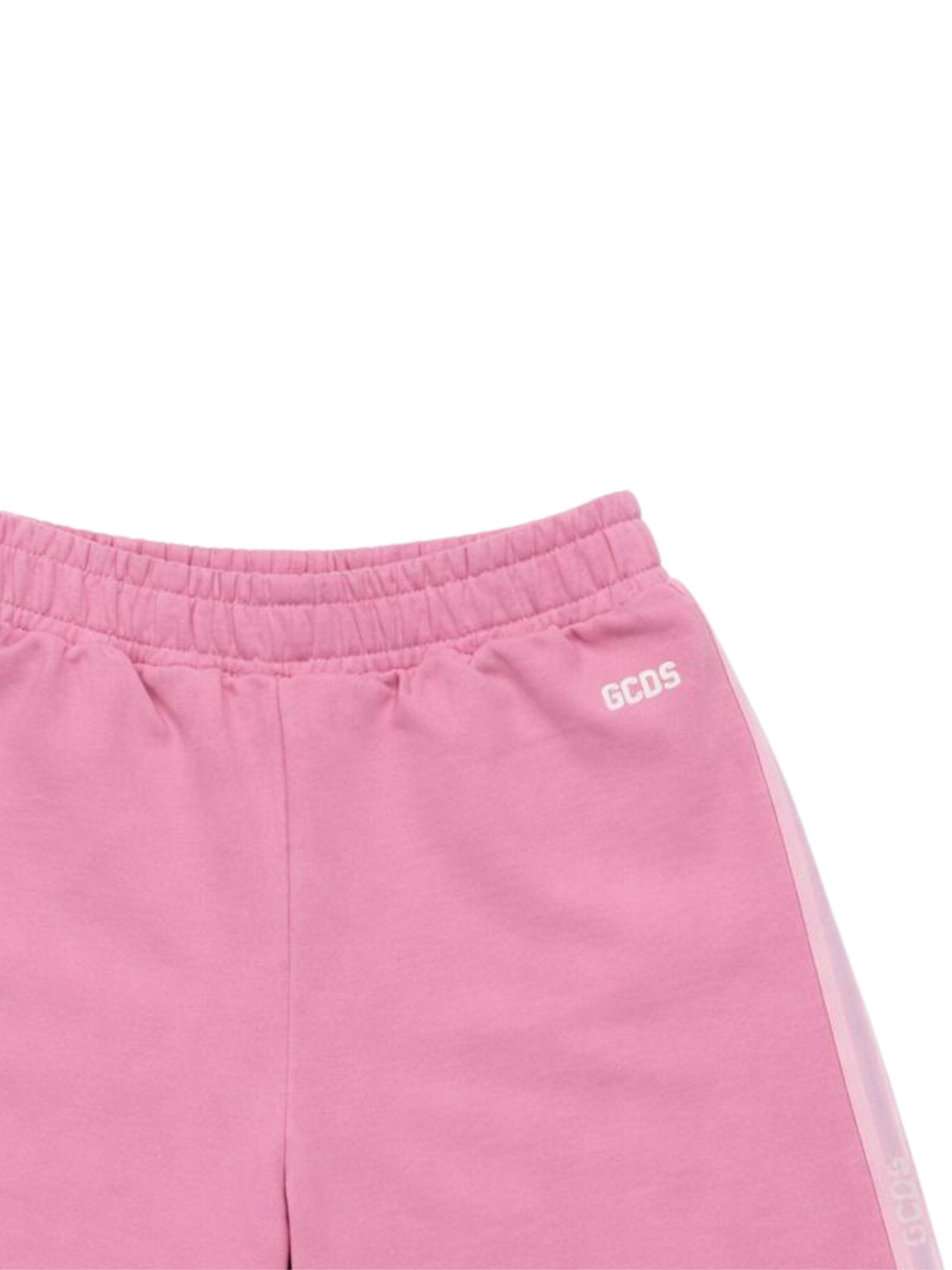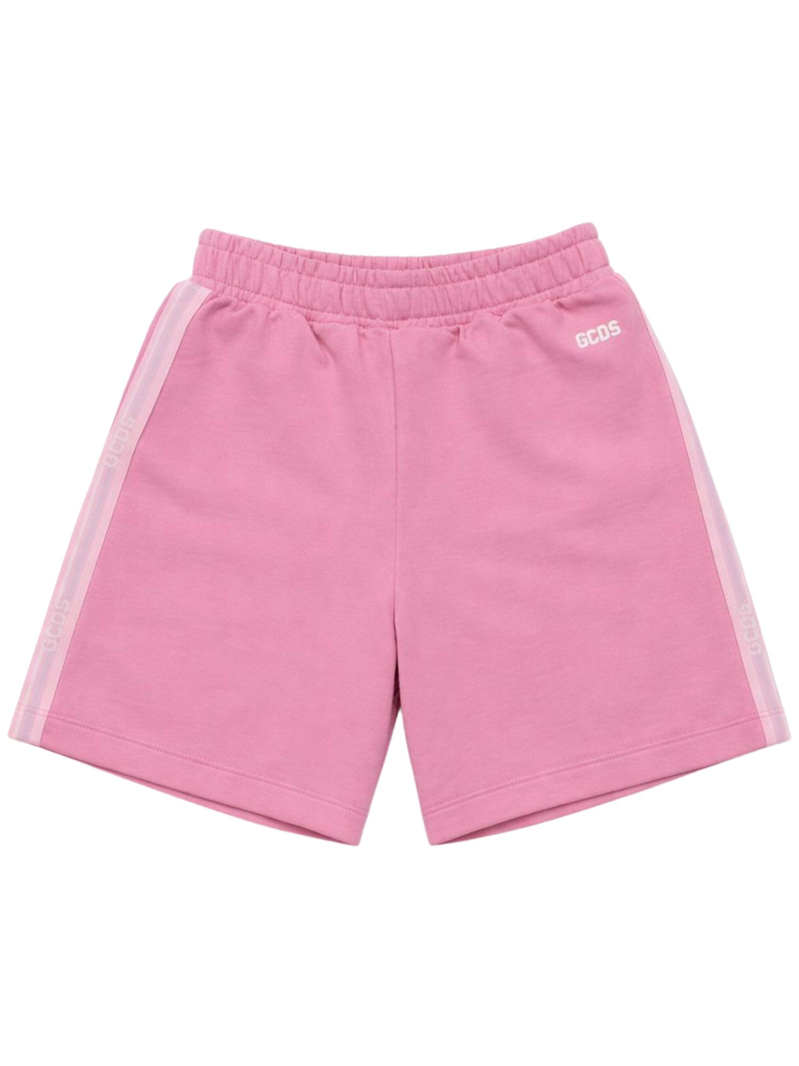 GCDS Kids pink shorts with an elasticated waist, side logo bands, a logo print, and a regular fit. Composition: 100% cotton. Made in Italy.