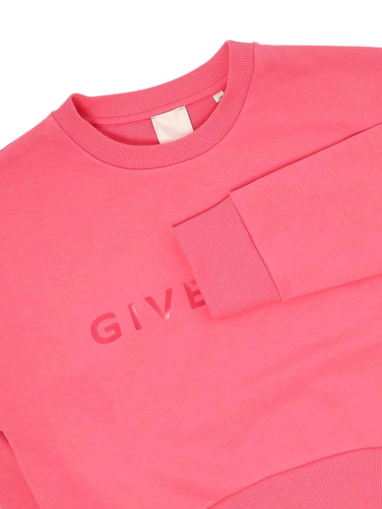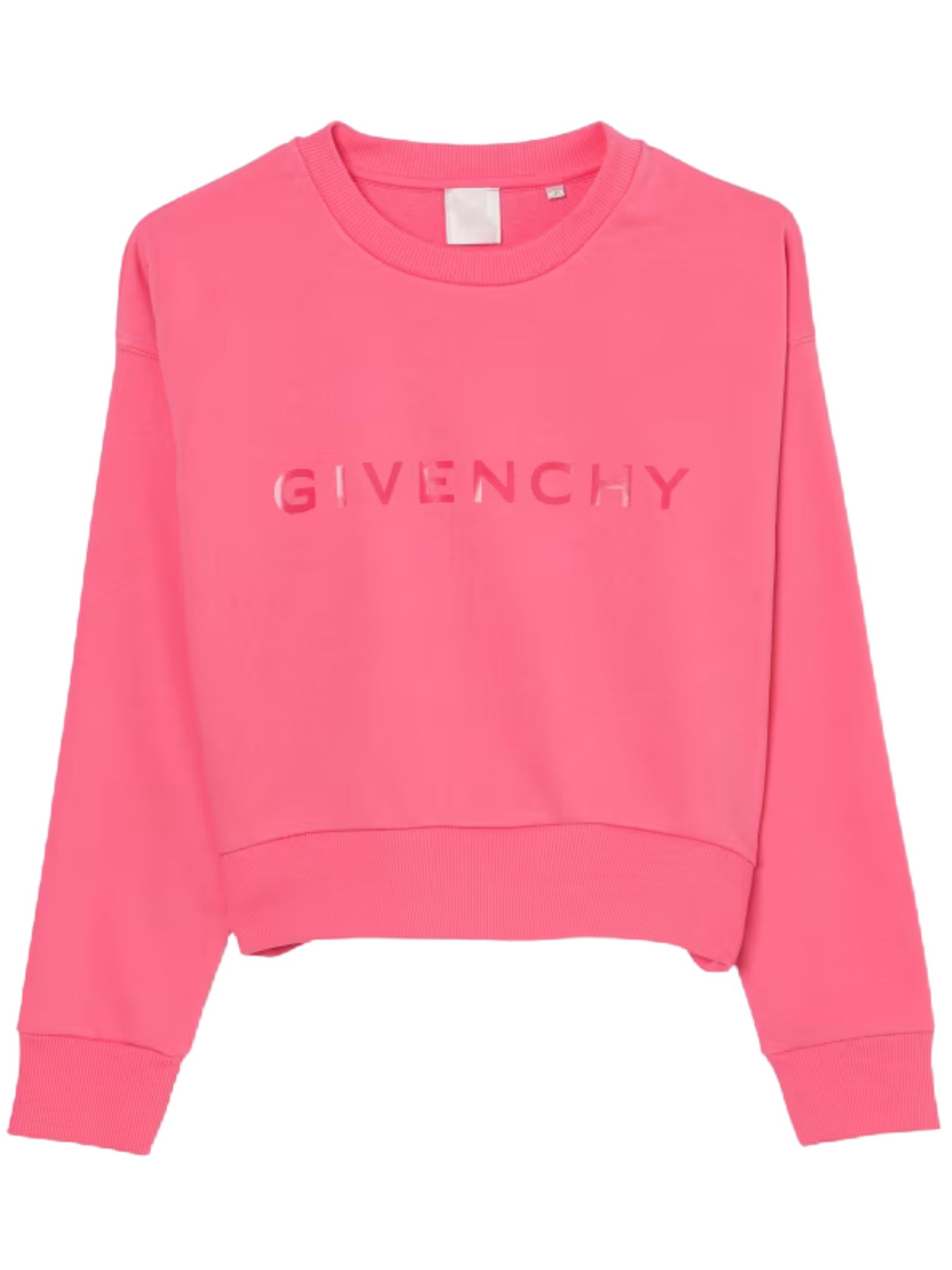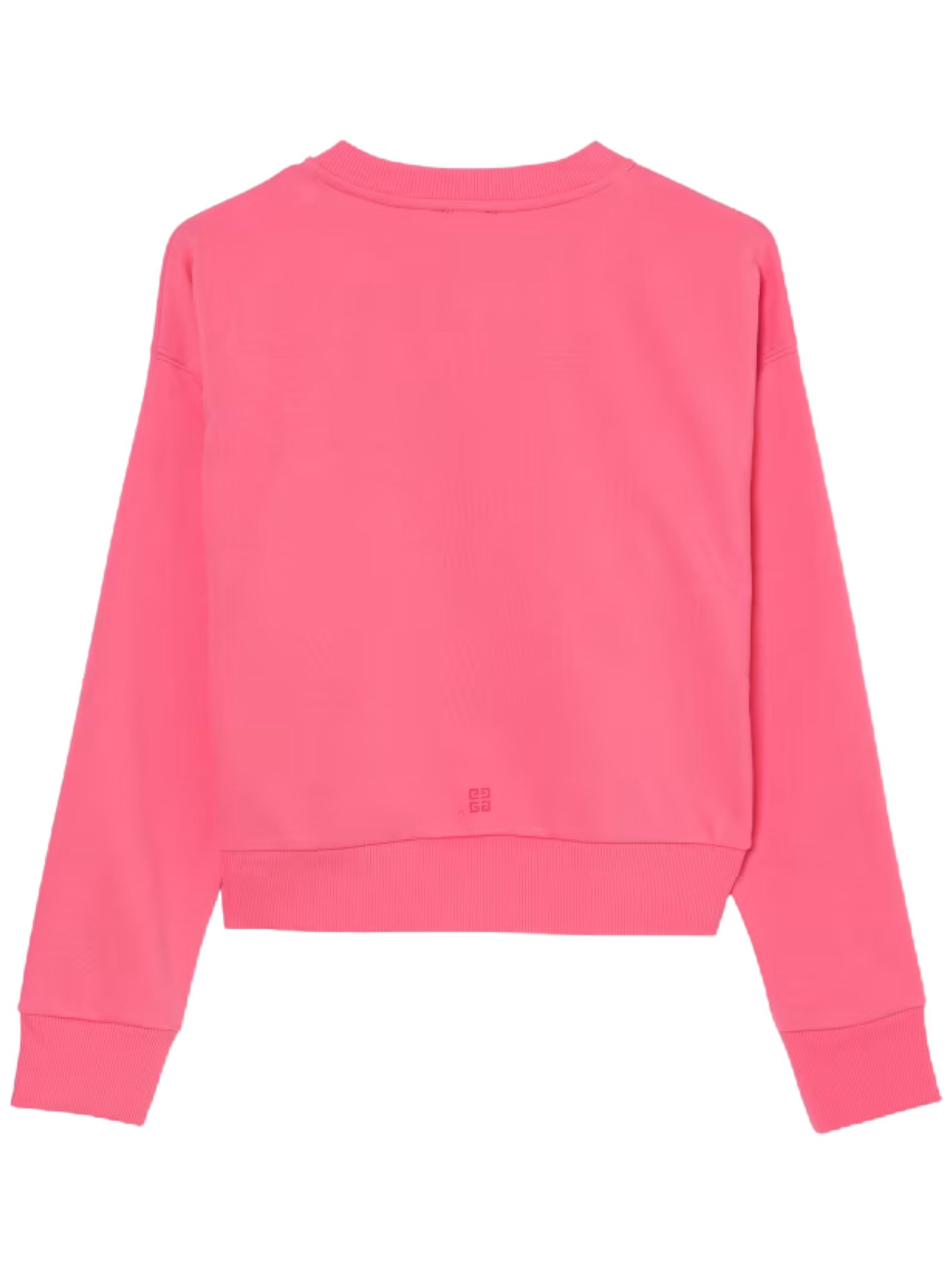 Givenchy Kids pink sweatshirt, cropped design, crew neck, long sleeves, contrasting central logo print, ribbed cuffs, loose fit. Composition: 85% cotton, 15%
