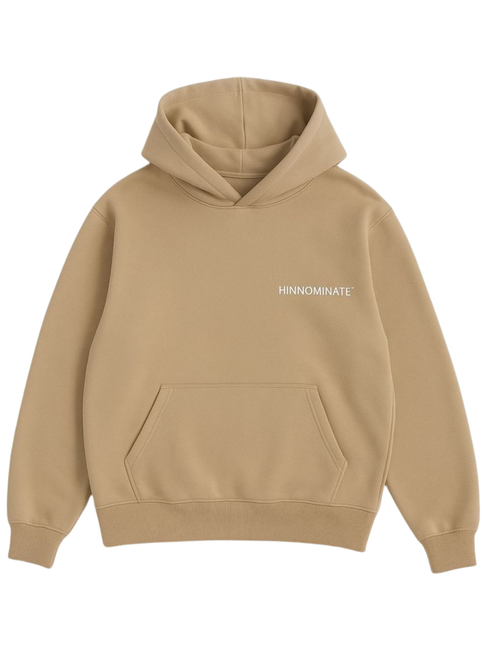 Hinnominate Kids sand-colored hoodie, long sleeves, contrasting white logo, ribbed cuffs, regular fit. Composition: 95% cotton, 5% elastane. Made in Italy.