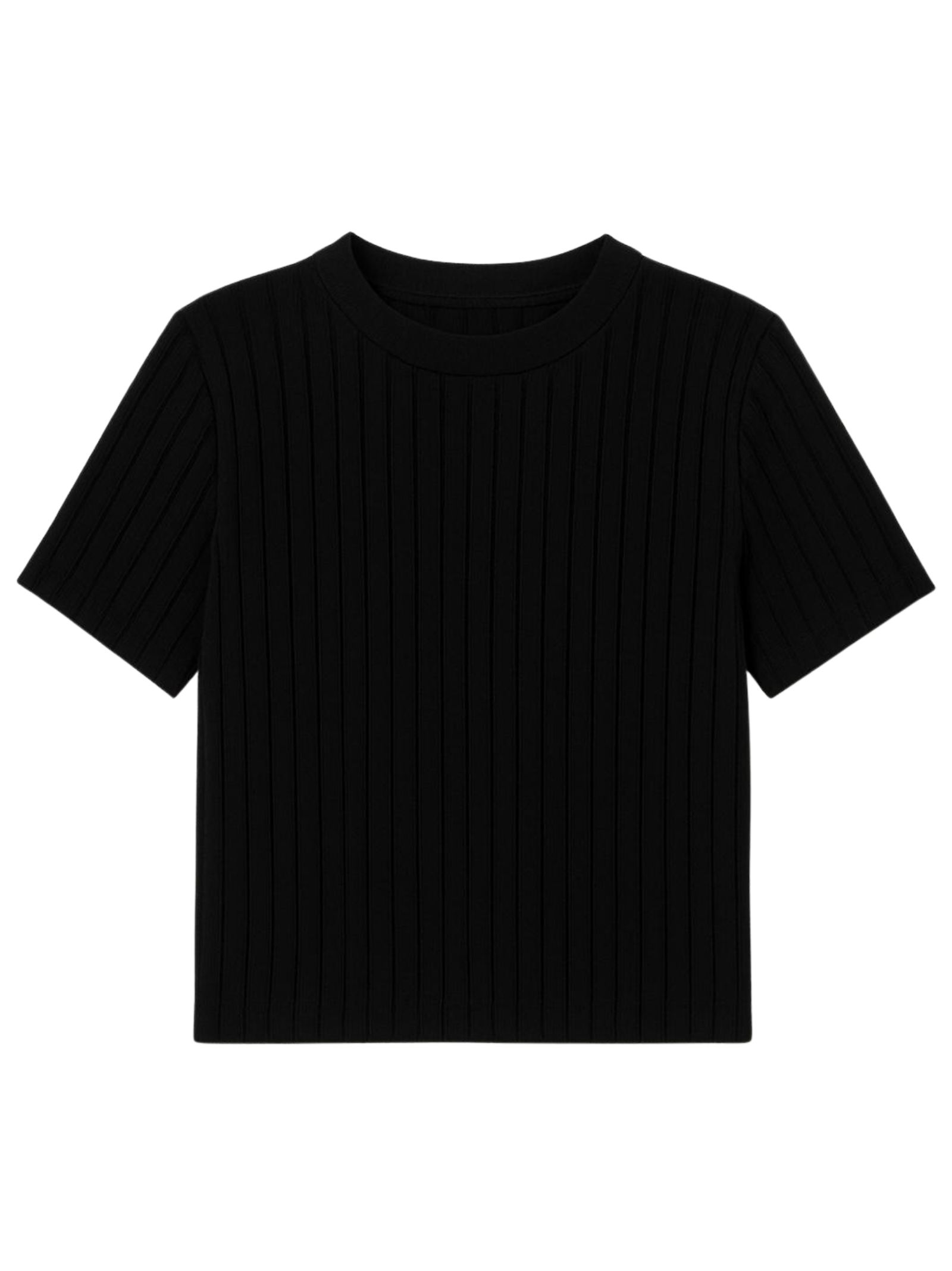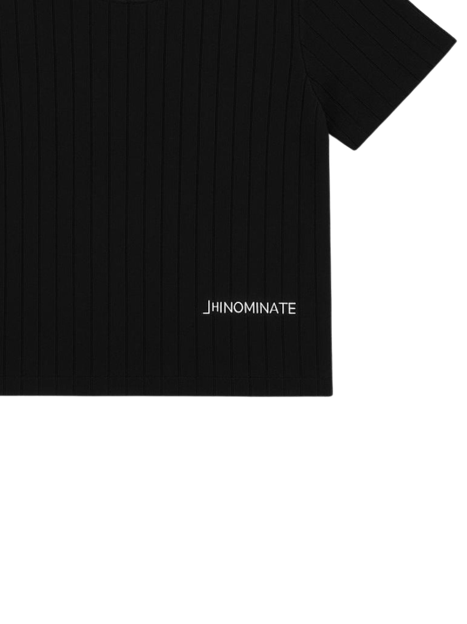 Hinnominate Kids black ribbed T-shirt with a cropped fit, crew neck, short sleeves, contrasting white logo print, and a fitted design. Composition: 92% cotton, 8% elastane. Made in Italy.