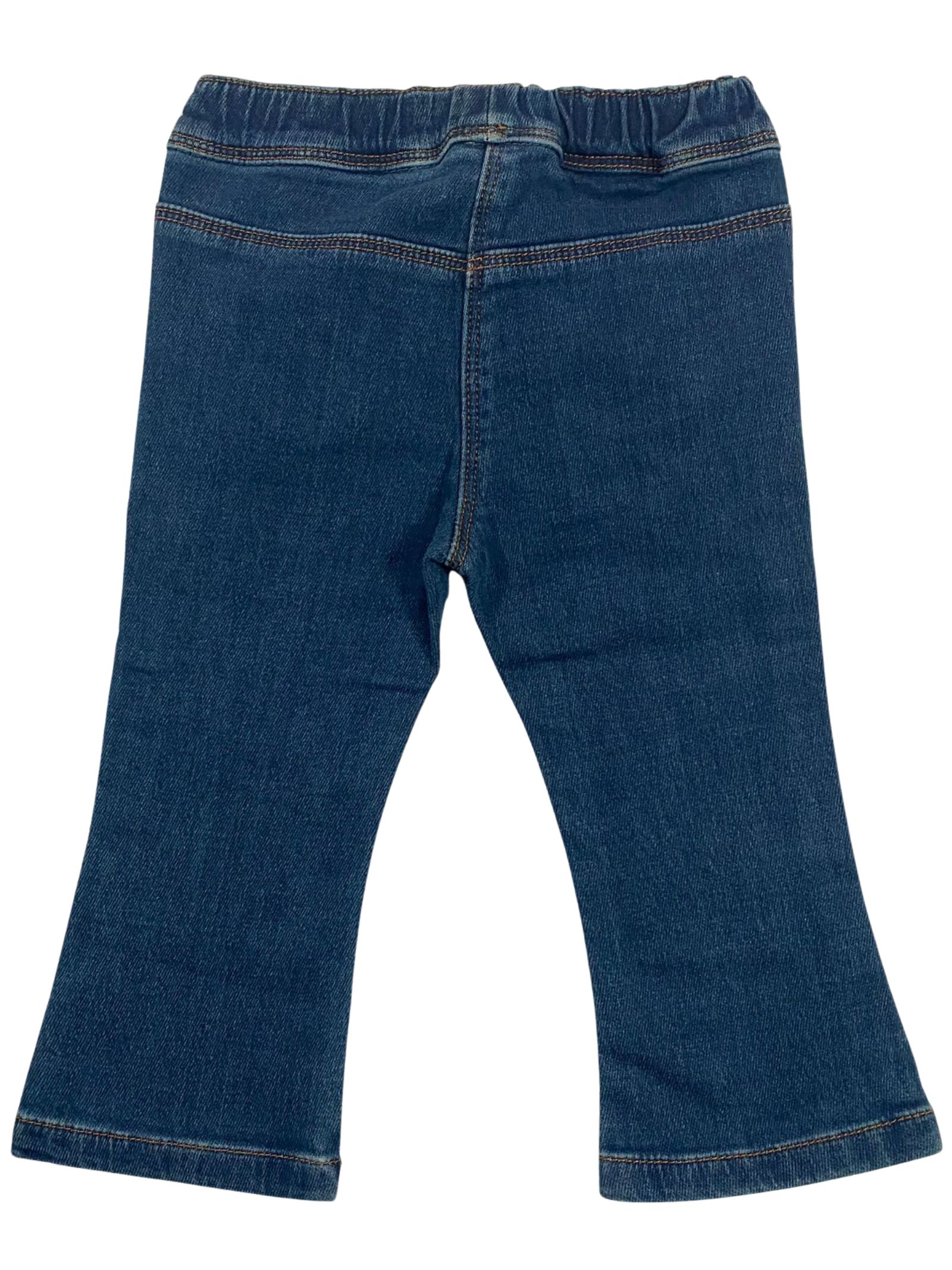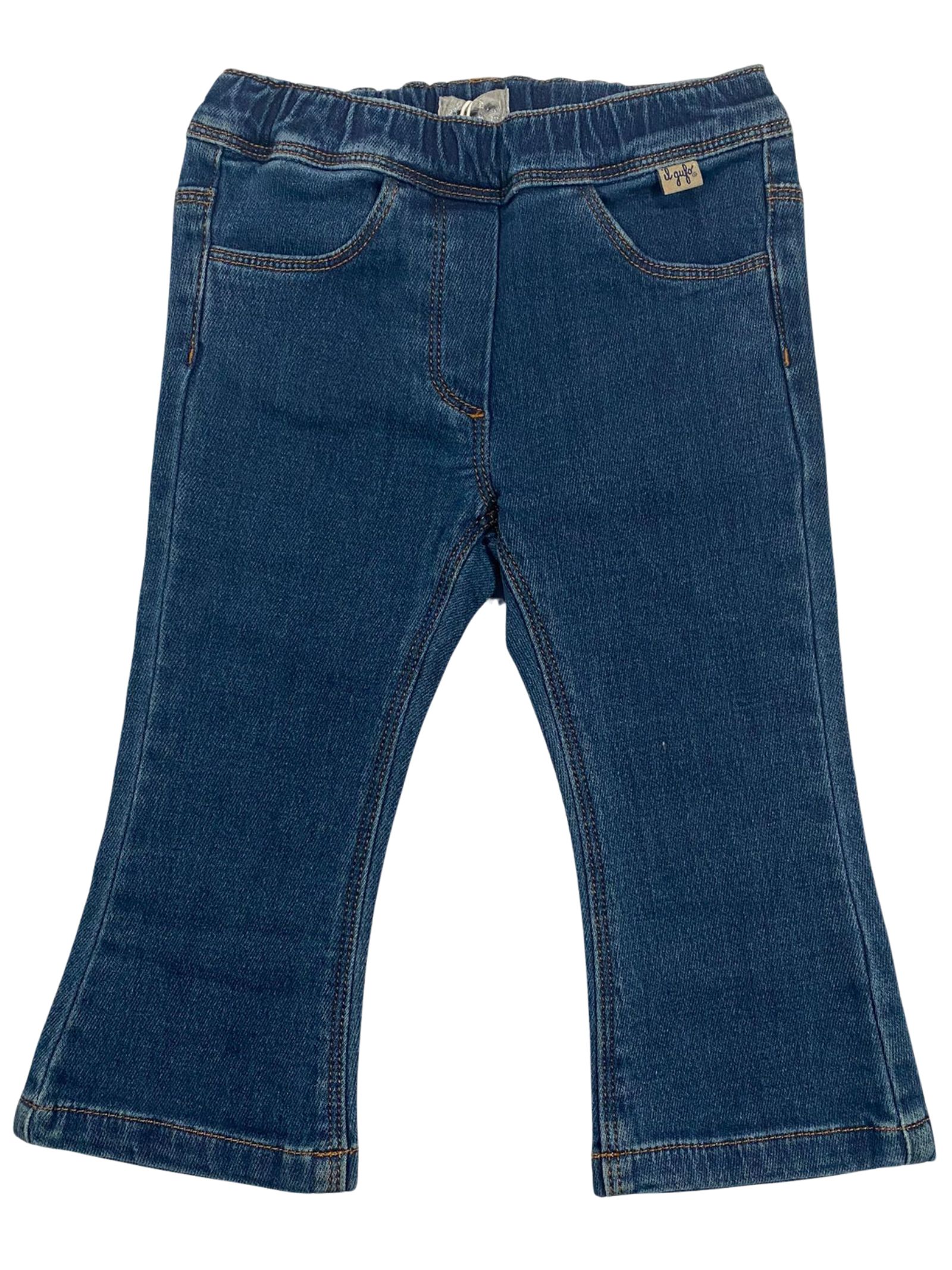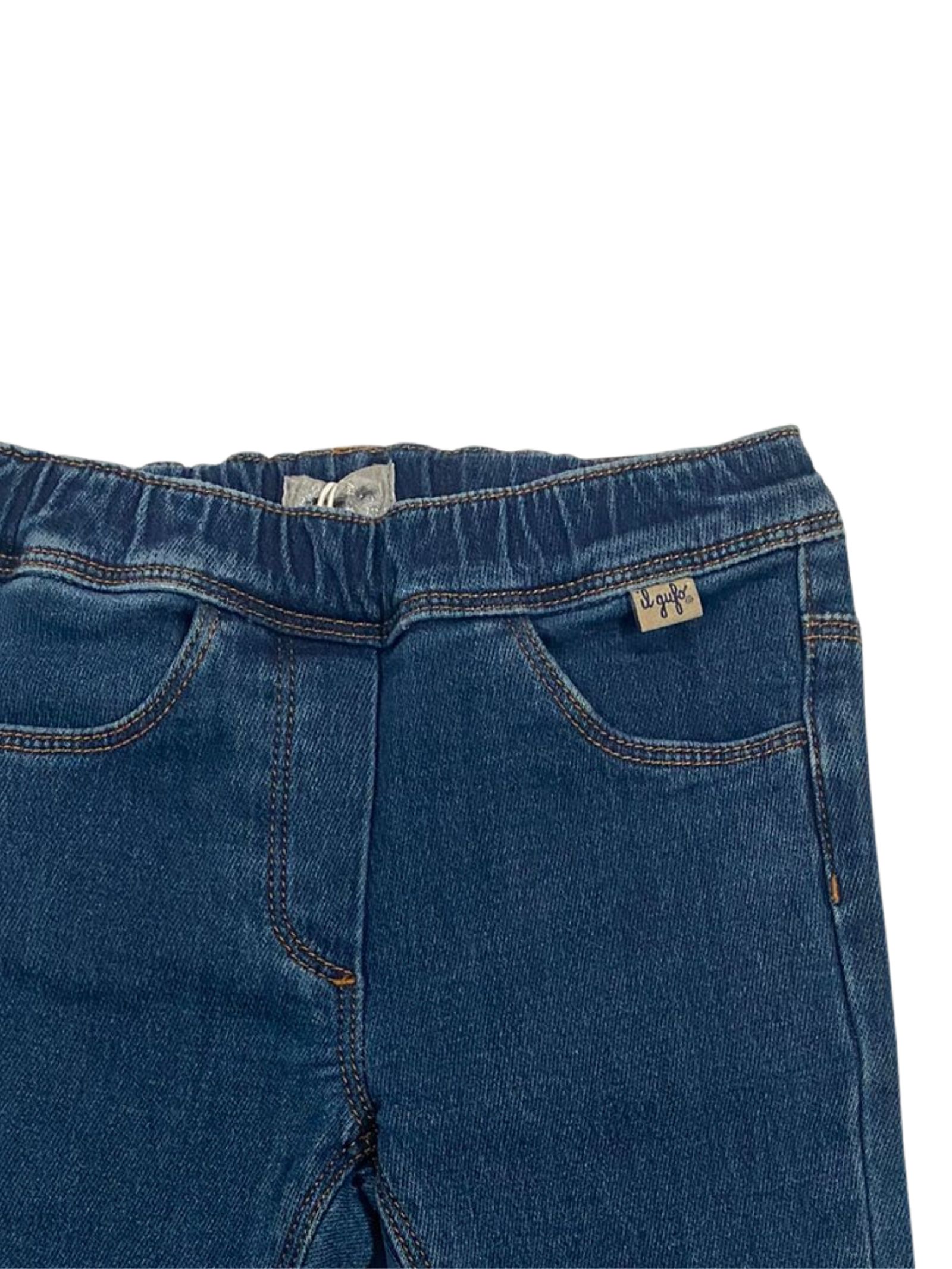 Il Gufo Kids blue jeans, slip-on style with elastic waistband, flared design, two front pockets, and logo patch. Composition: 98% Cotton, 2% Elastane.