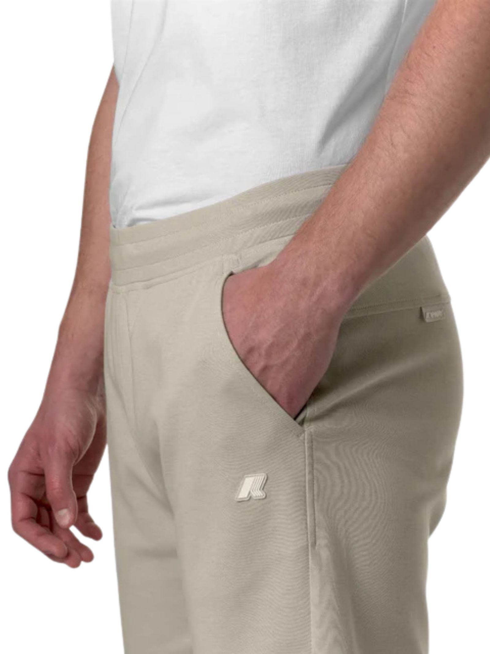 K-Way Kids beige Bermuda shorts, model with two side pockets, a slit pocket on the back, applied logo patch, elastic waist with internal drawstring, regular fit. Composition: 80% cotton 14% polyester 6% elastane