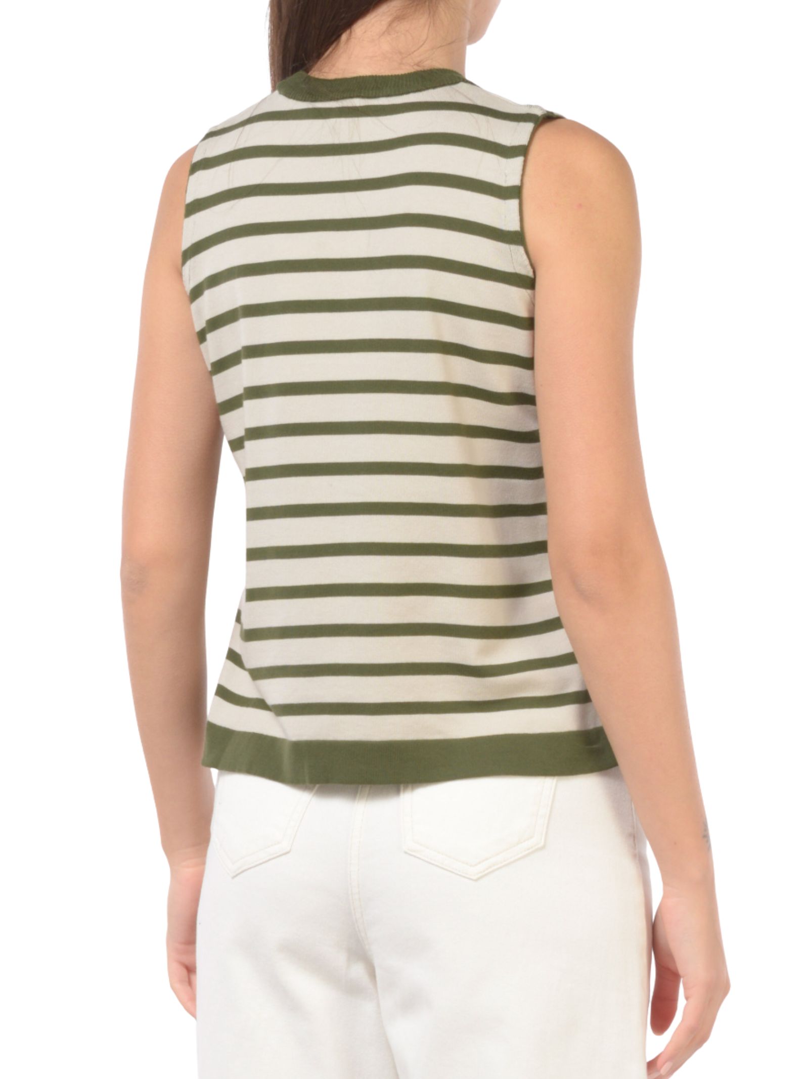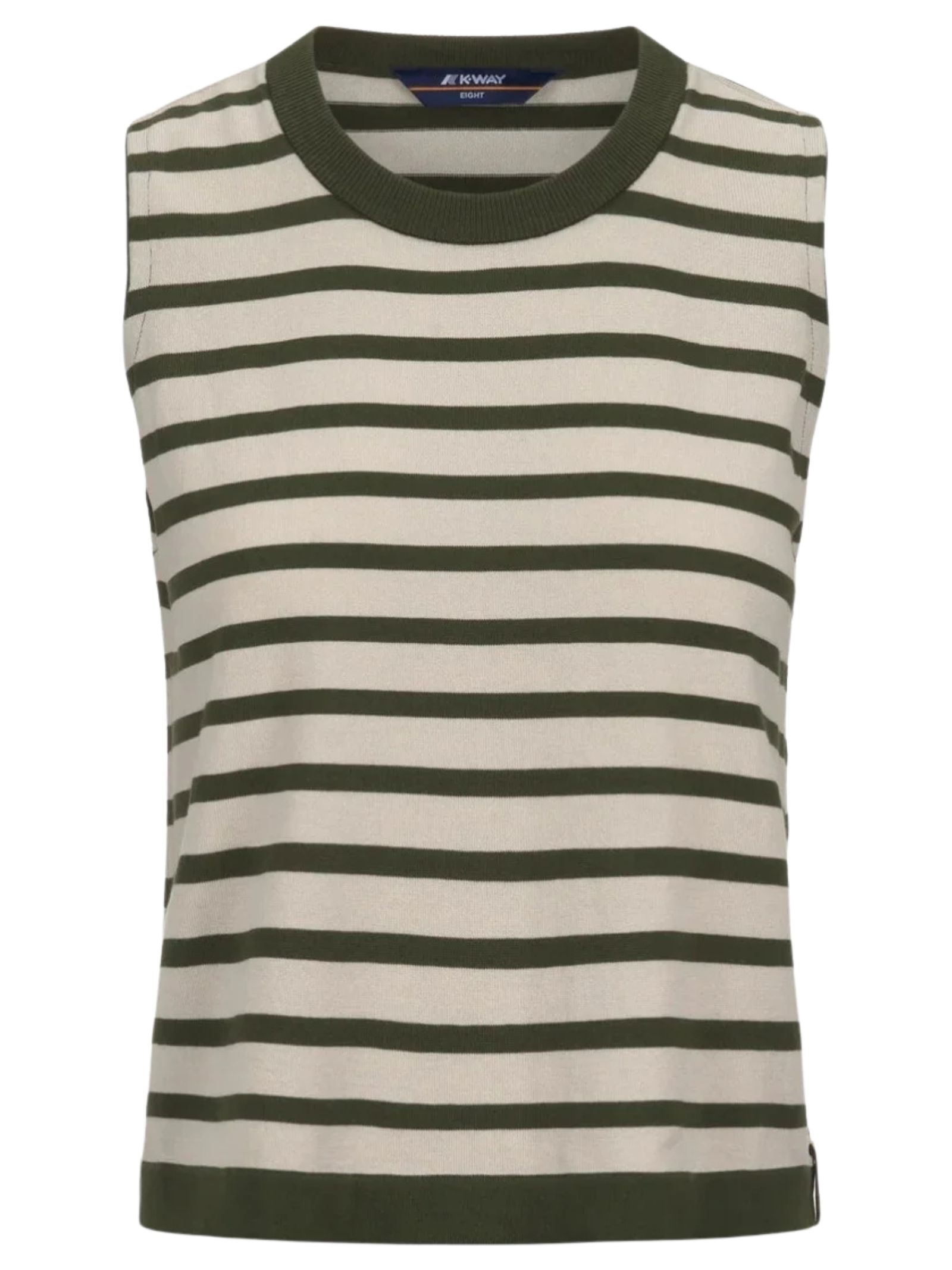 K-Way Kids beige/green striped sweater, thin knit, sleeveless design, crew neck, ribbed cuffs, regular fit. Composition: 100% cotton