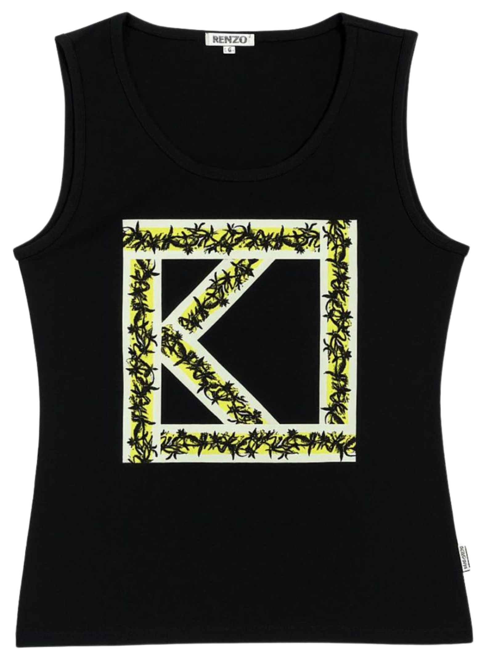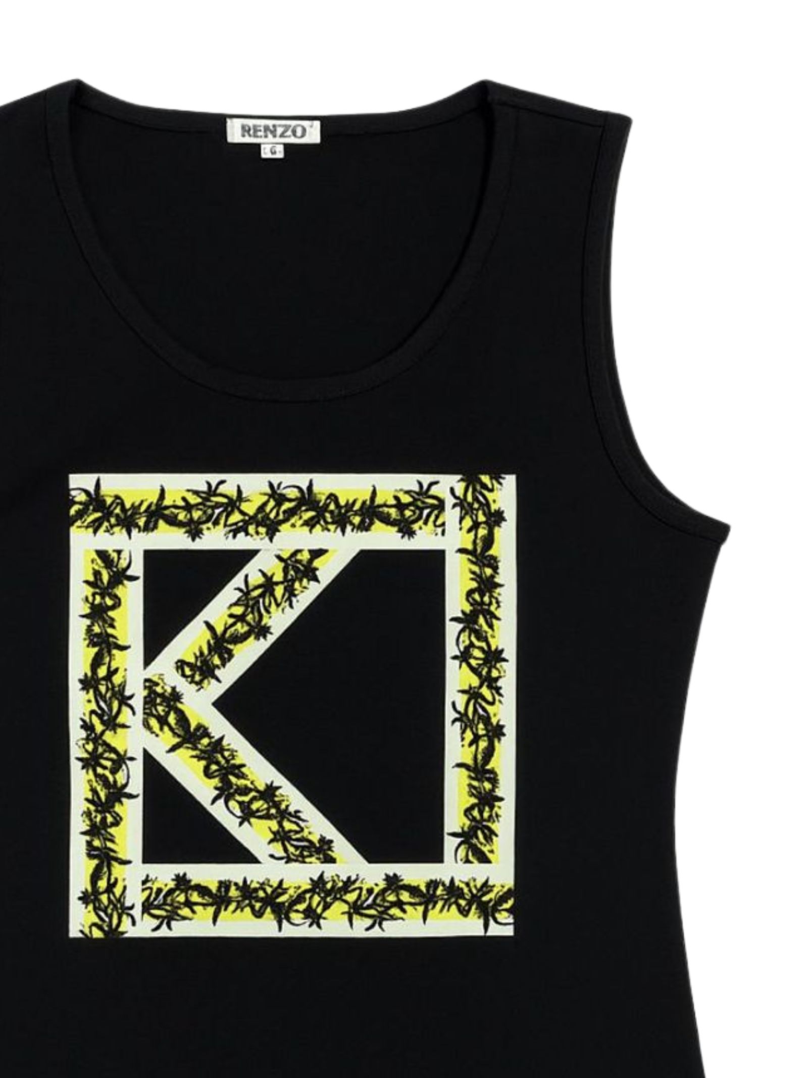 Kenzo Kids black tank top, crew neck, contrasting central print, regular fit. Composition: 94% cotton 6% elastane.