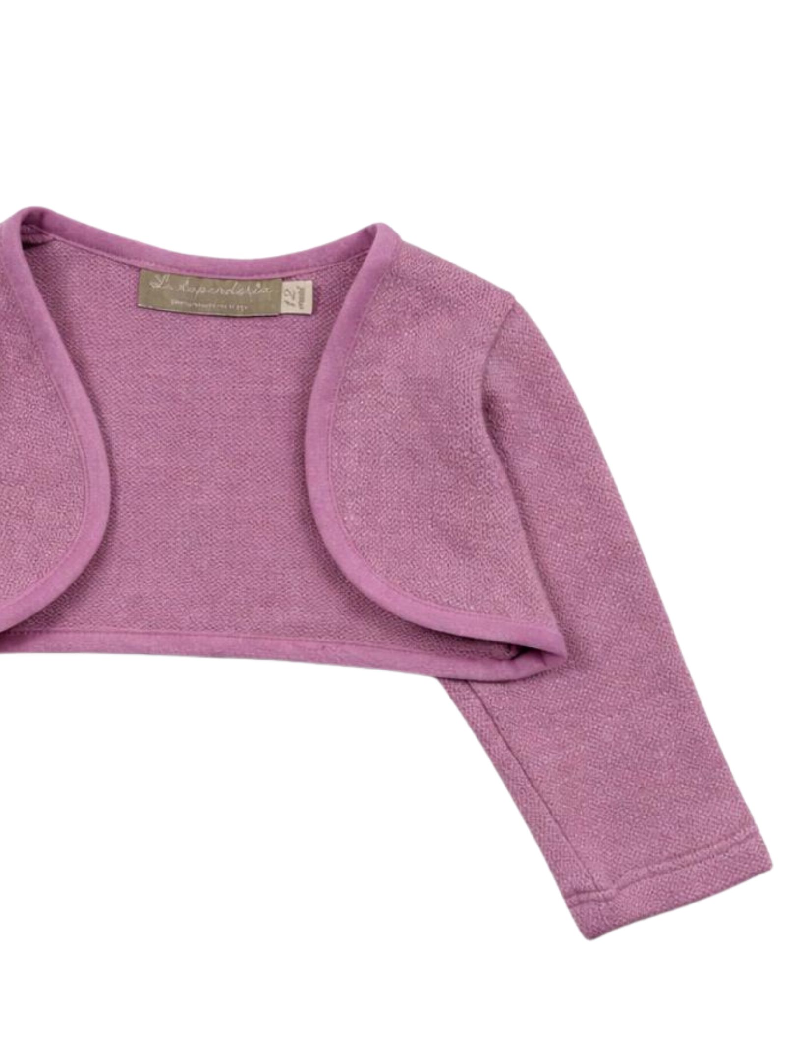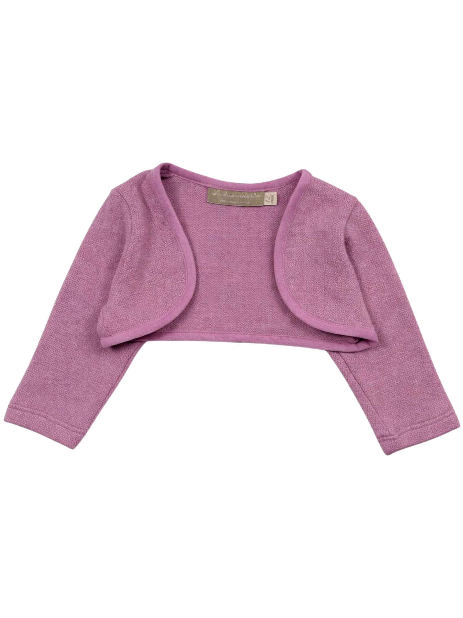 La Stupenderia Kids wisteria cardigan, made of soft viscose blend fabric, short cut, long sleeves, finished with a velvety edge. Composition: 50% viscose, 25% polyamide, 25% polyester. Made in Italy.