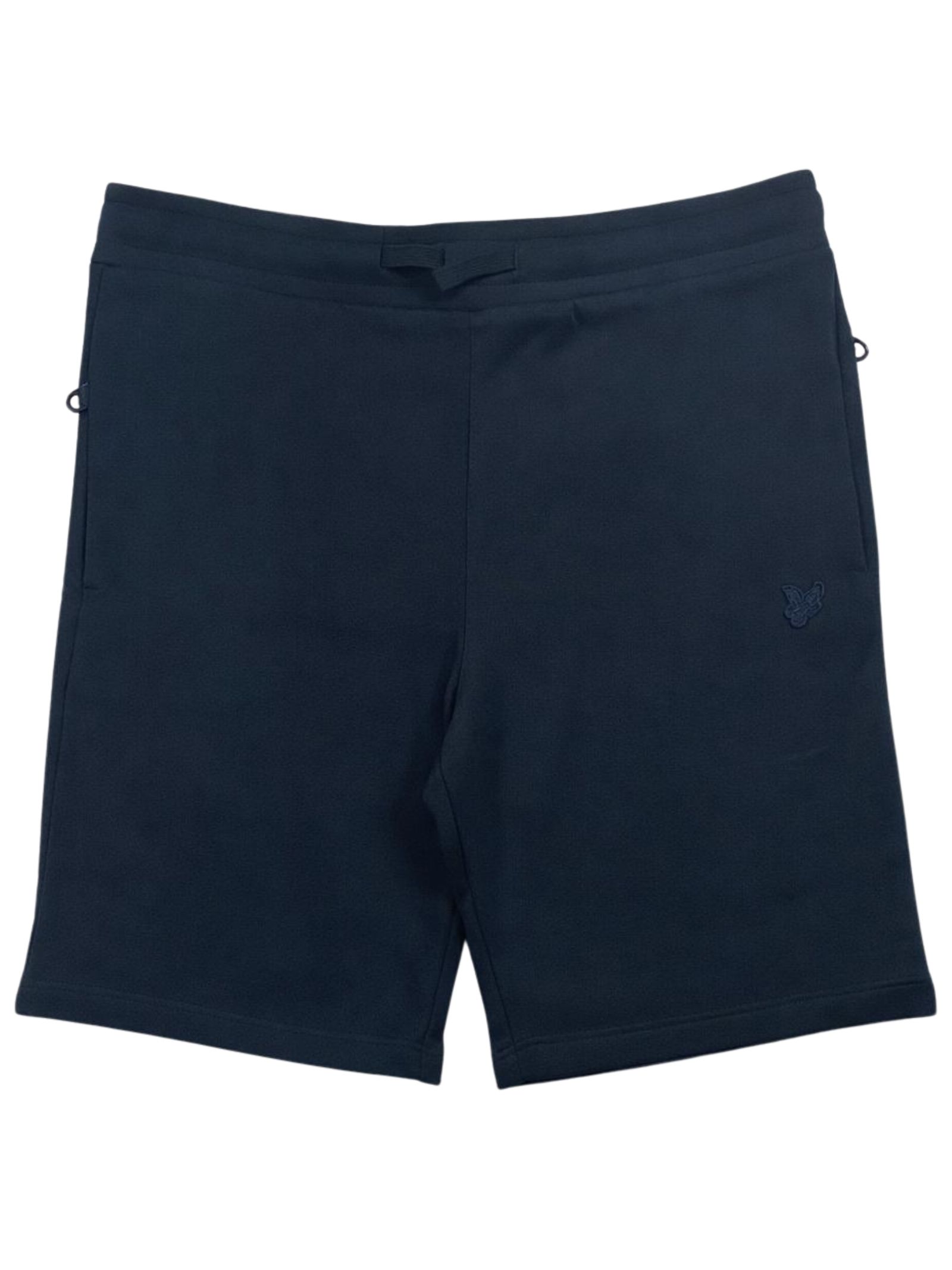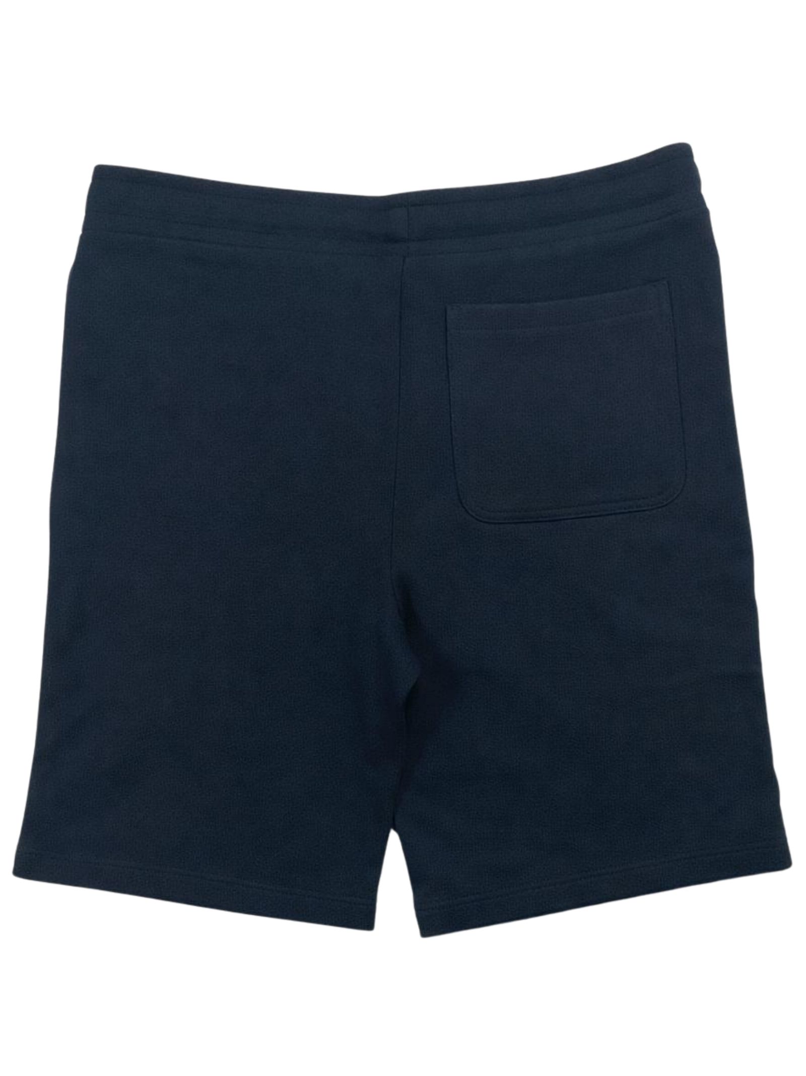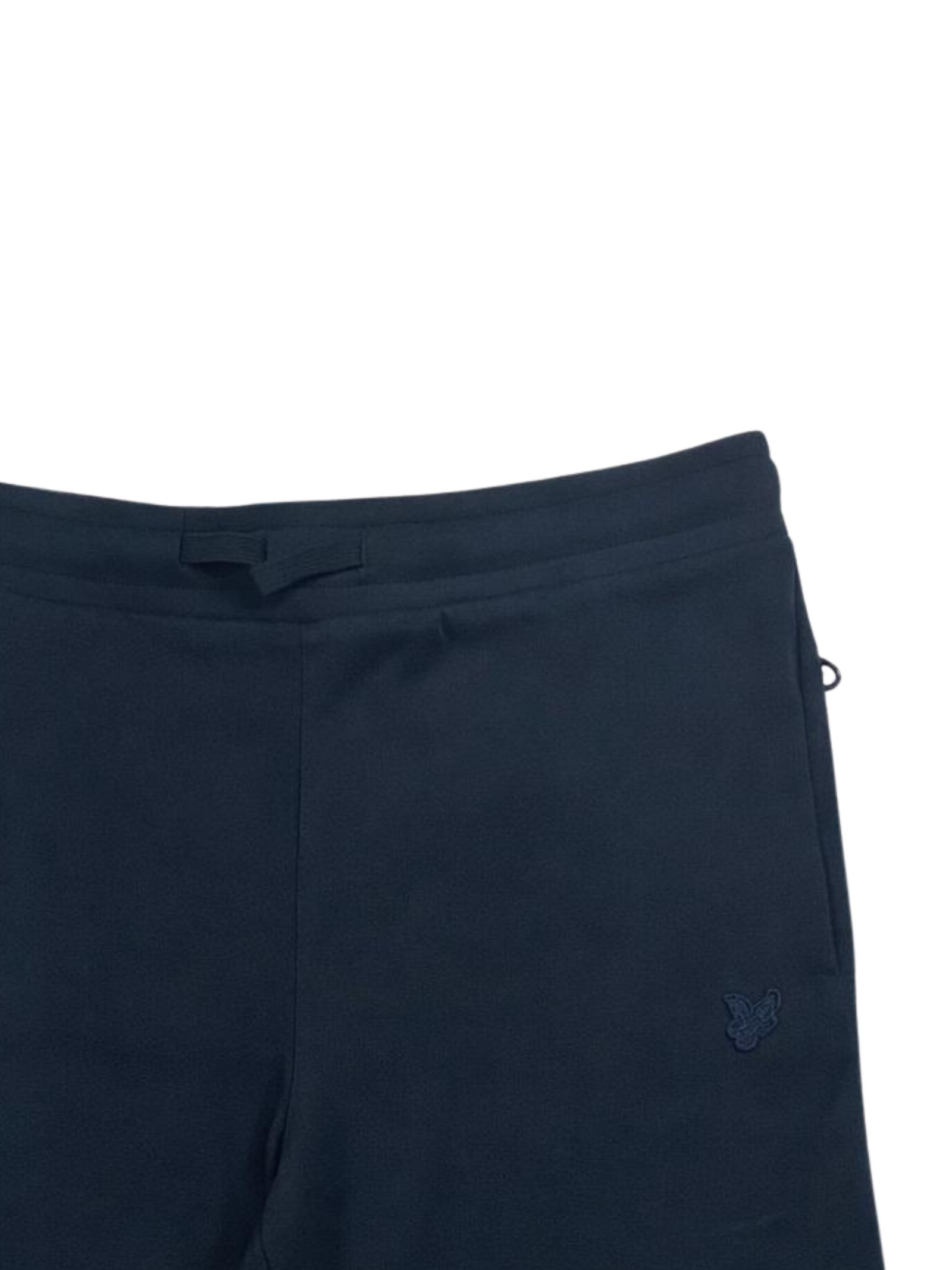 Lyle & Scott Kids blue Bermuda shorts with an elasticated drawstring waist, two side zip pockets, one back pocket, logo embroidery, and a regular fit. Composition: 100% cotton.