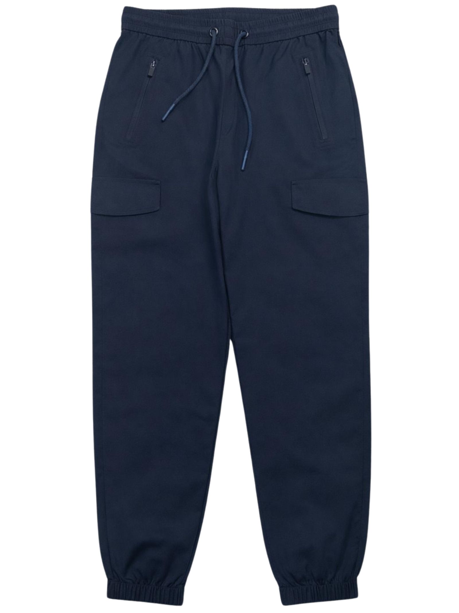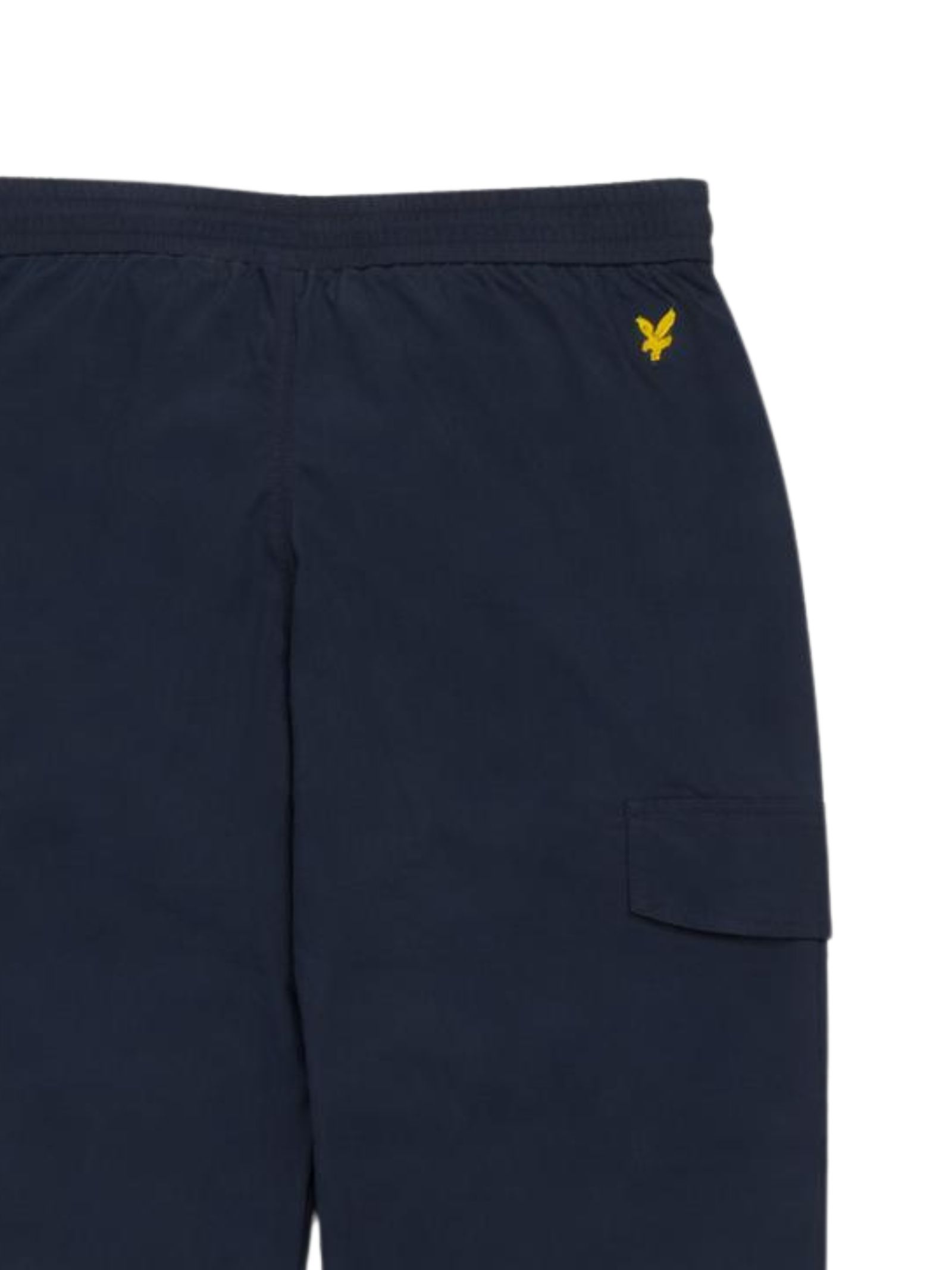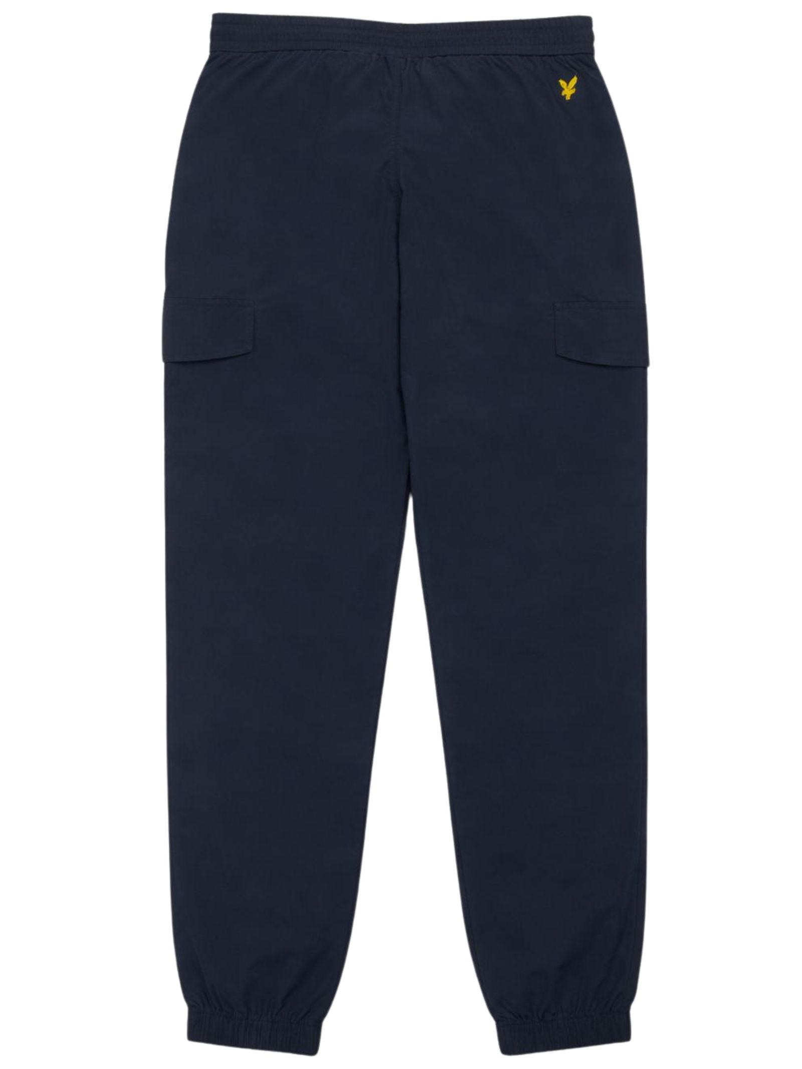 Lyle & Scott Kids blue trousers with an elasticated waist and drawstring, two side zip pockets, two cargo pockets, a contrasting logo embroidery, elastic ankles, and a regular fit. Composition: 100% polyamide.