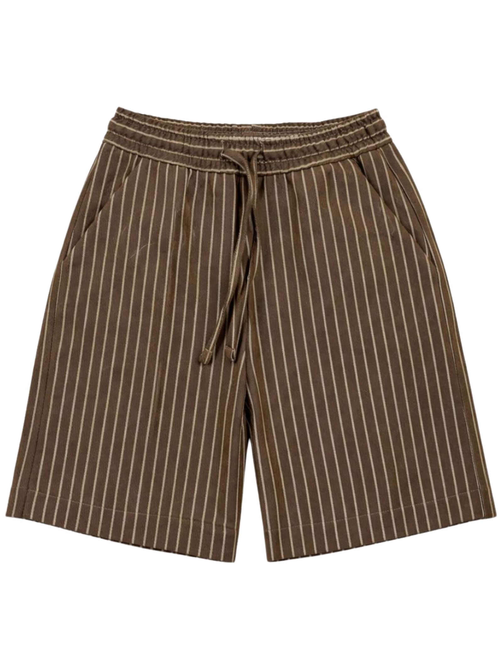 Manuel Ritz Kids' beige striped Bermuda shorts with an elastic waistband and drawstring, two side pockets, and a back pocket, regular fit. Composition: 76% cotton, 24% polyester. Made in Italy.