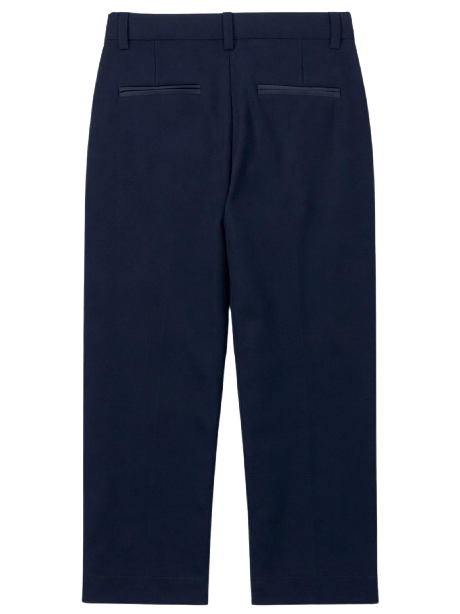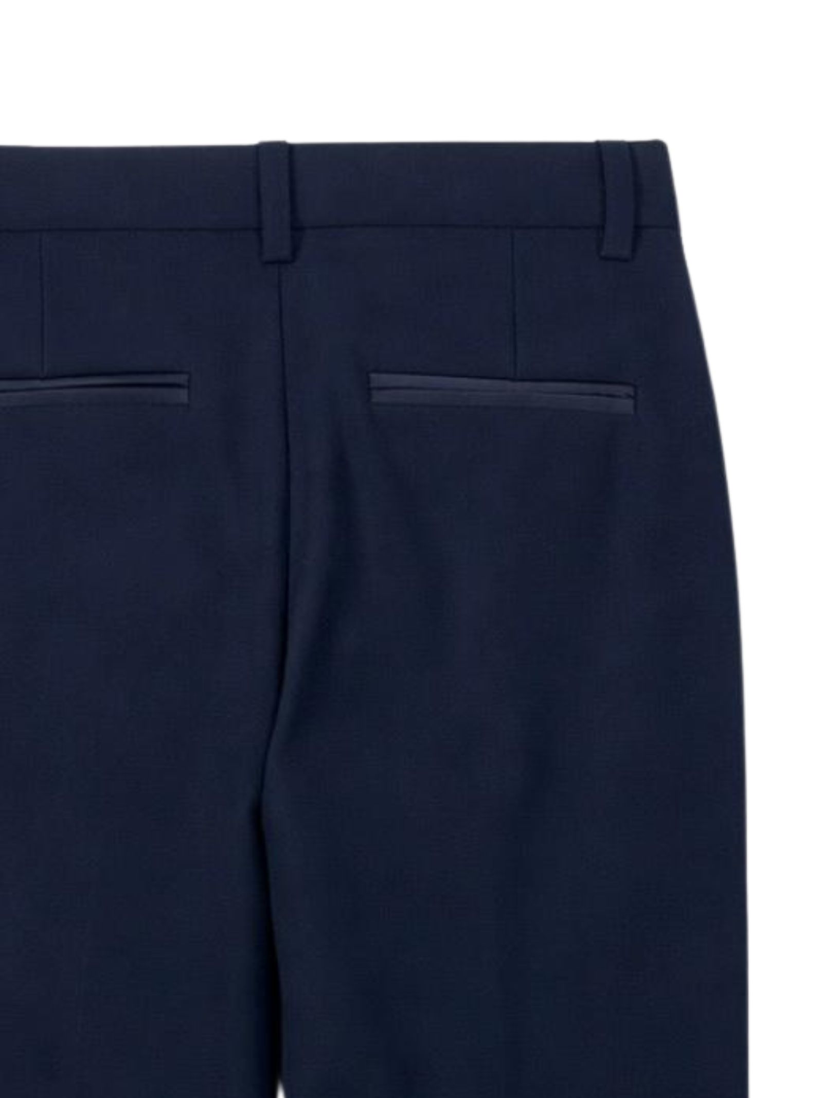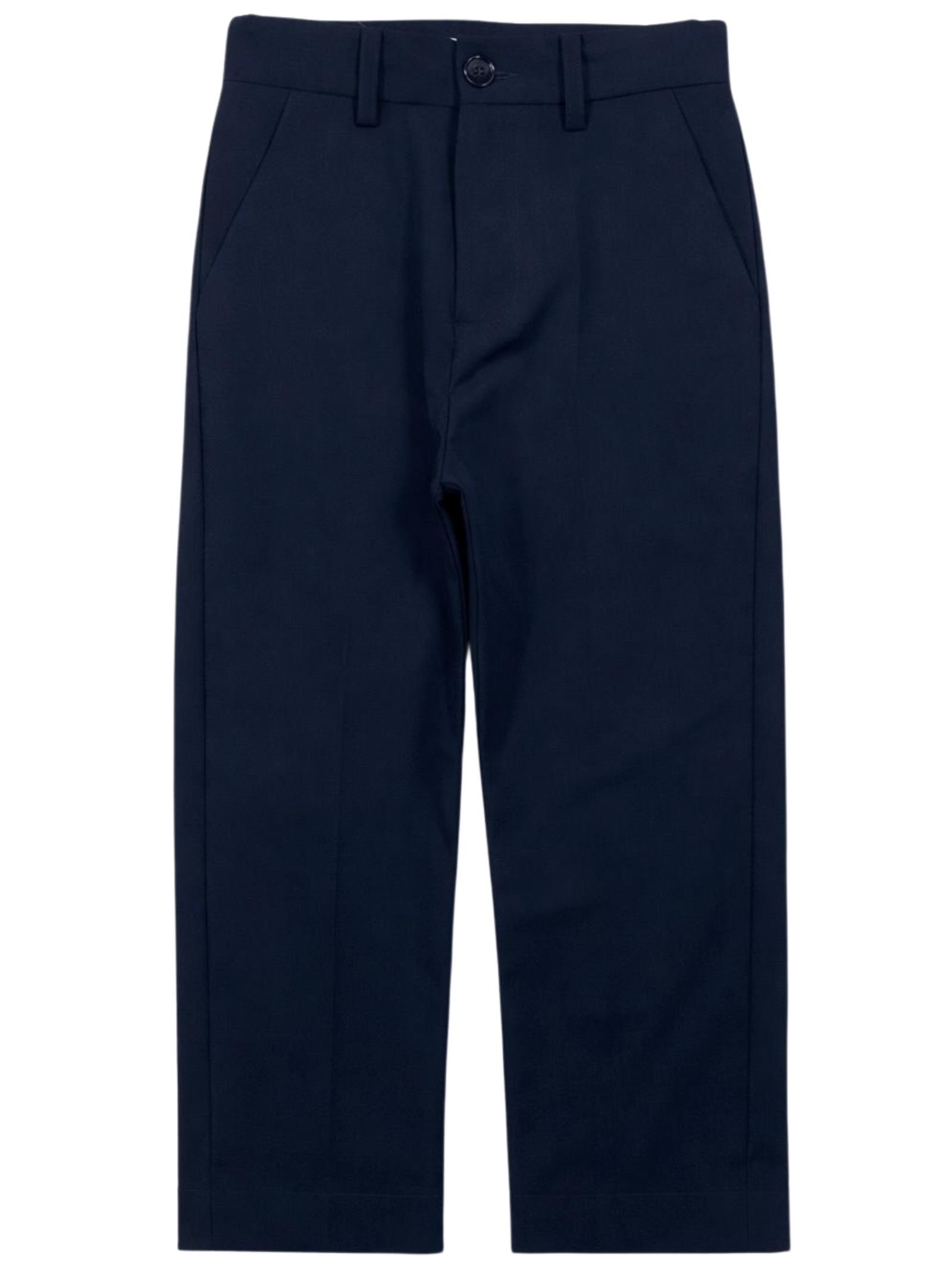 Manuel Ritz Kids blue trousers with satin details, classic design, regular waist, button and zip closure, two side pockets, two back slit pockets, straight fit, regular fit. Composition: 69% polyester, 29% viscose, 2% elastane. Made in Italy.