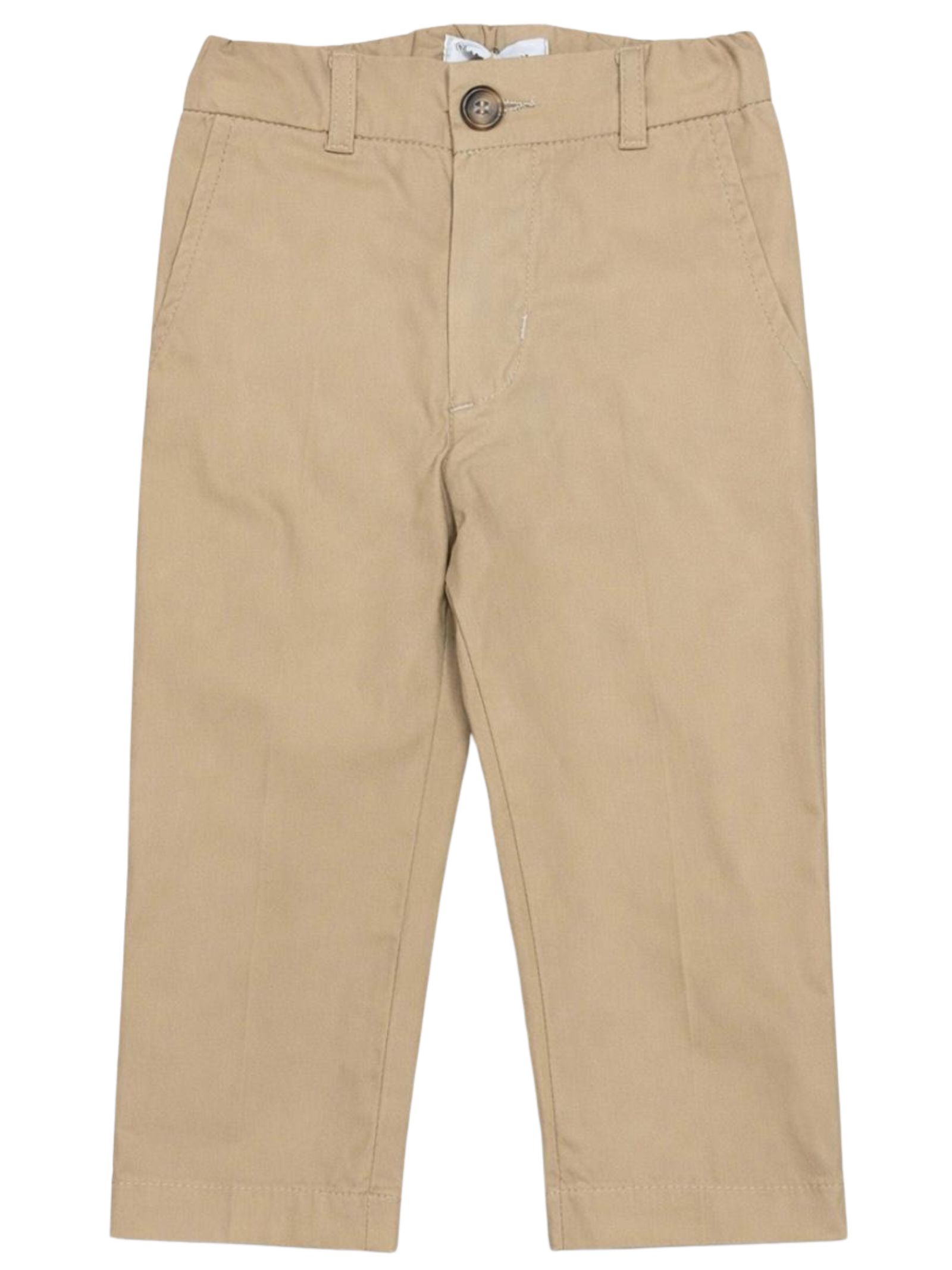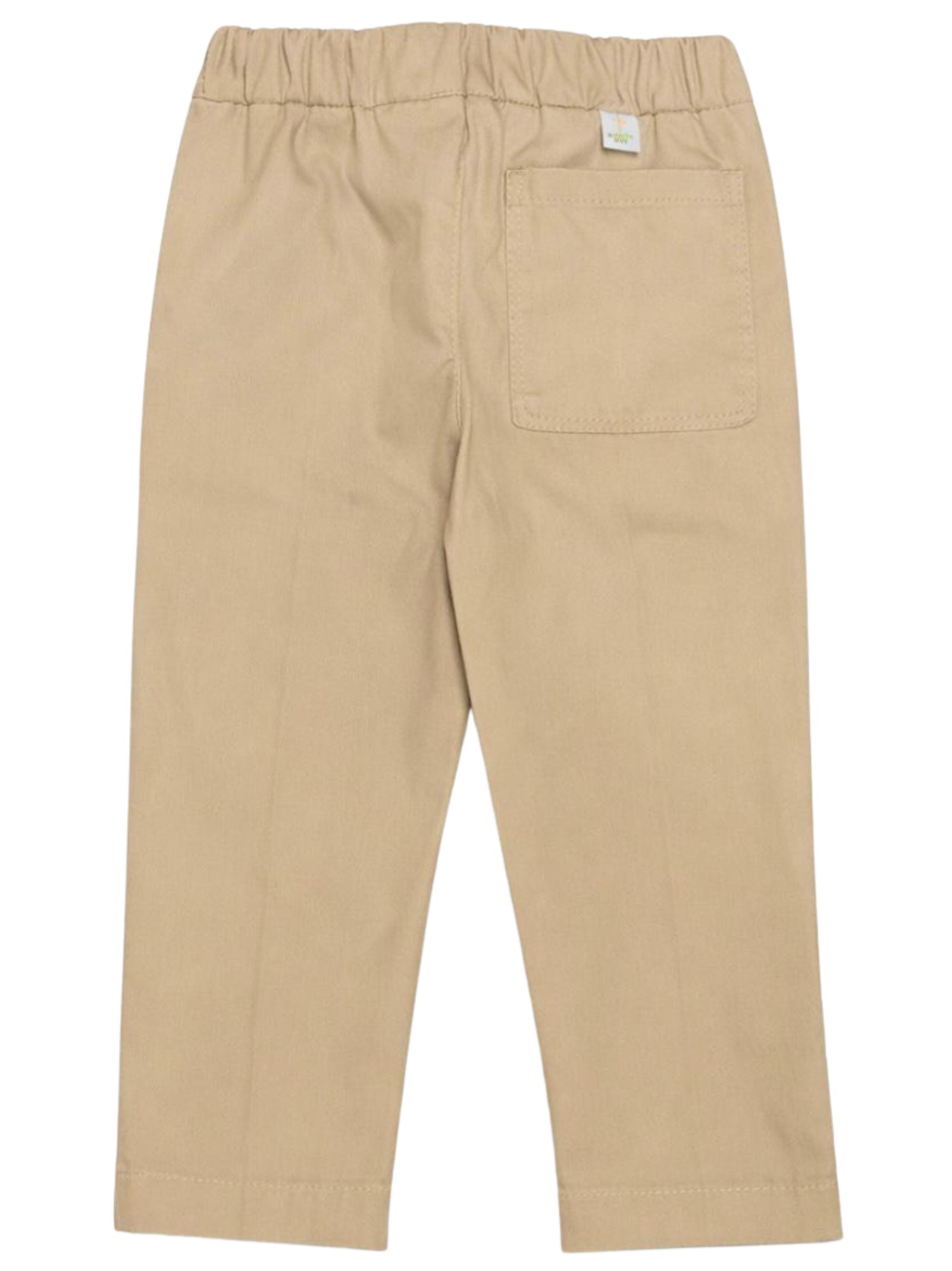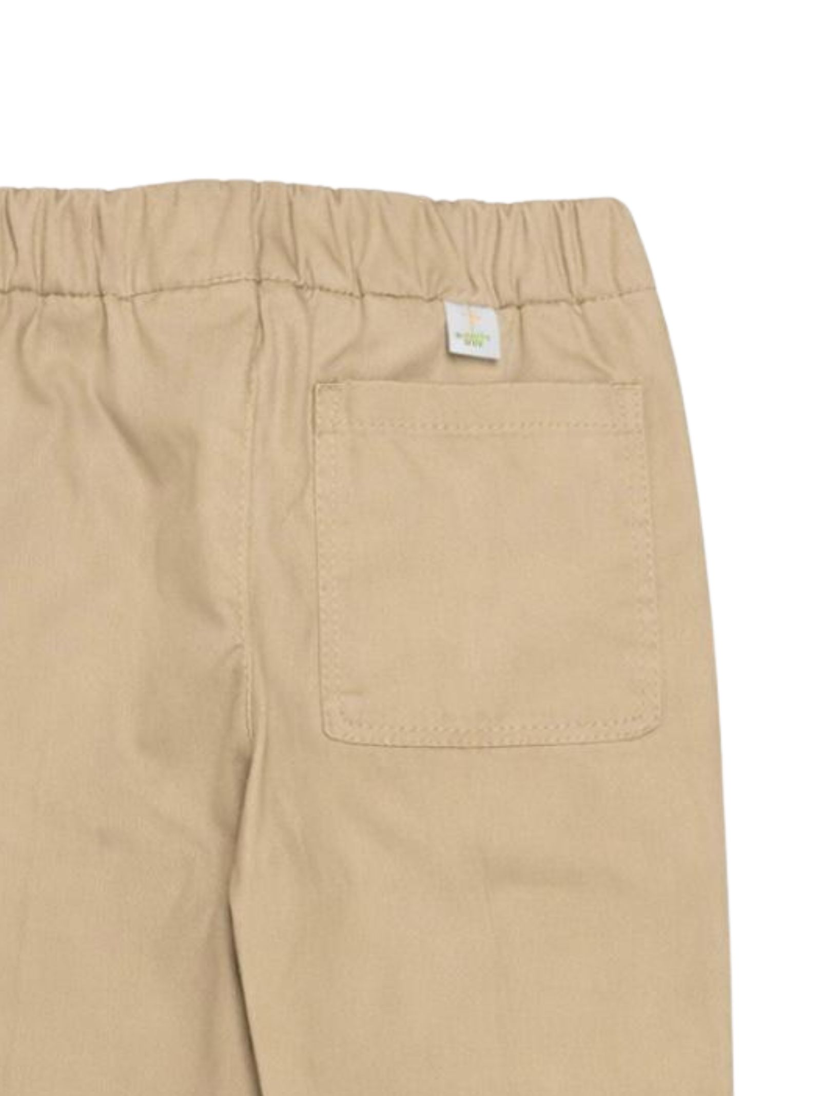 Manuel Ritz Kids beige trousers with an elasticated waistband at the back, a button and zip closure, two side pockets, a logo patch, and a regular fit. Composition: 100% cotton. Made in Italy.