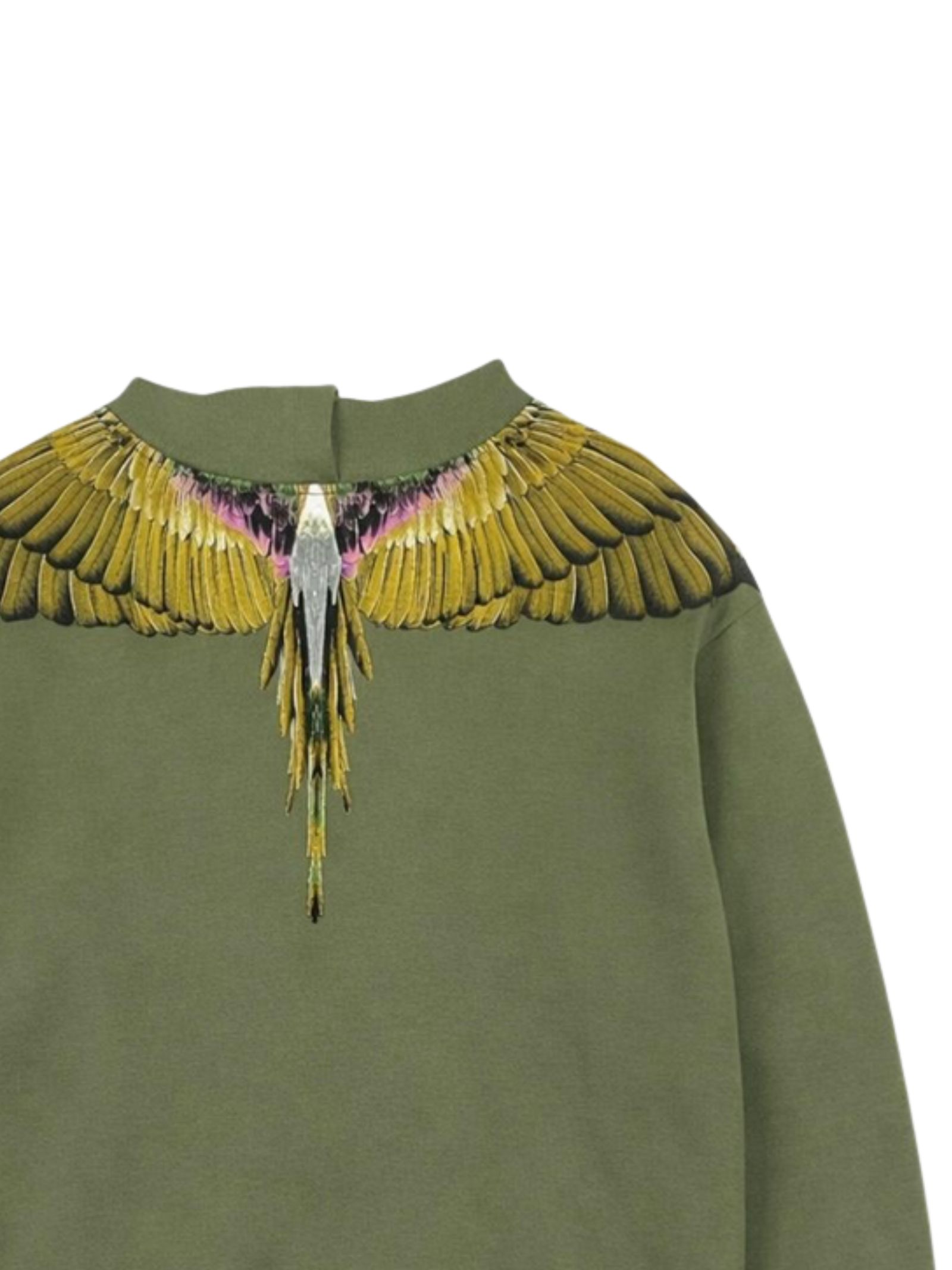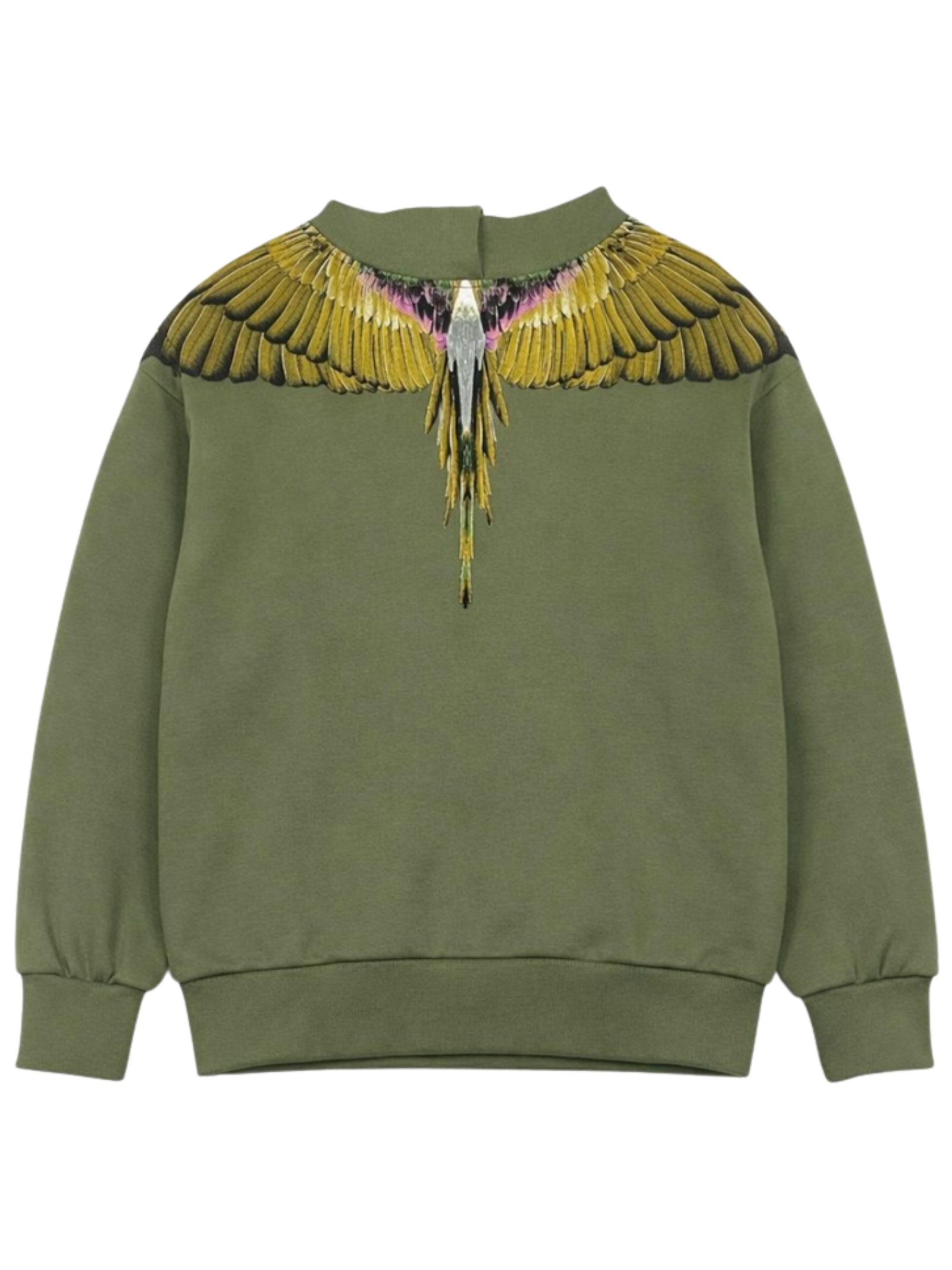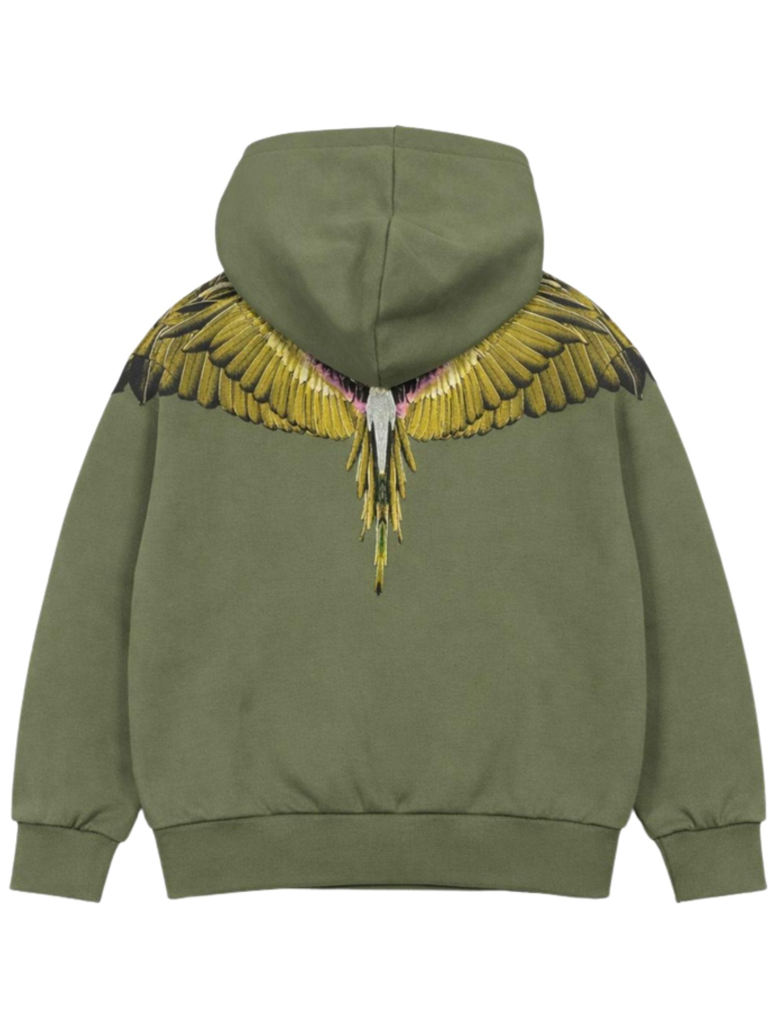 Marcelo Burlon Kids green hoodie with long sleeves, contrasting multicolor print on both sides, regular fit, ribbed cuffs, and straight hem. Composition: 100% cotton.