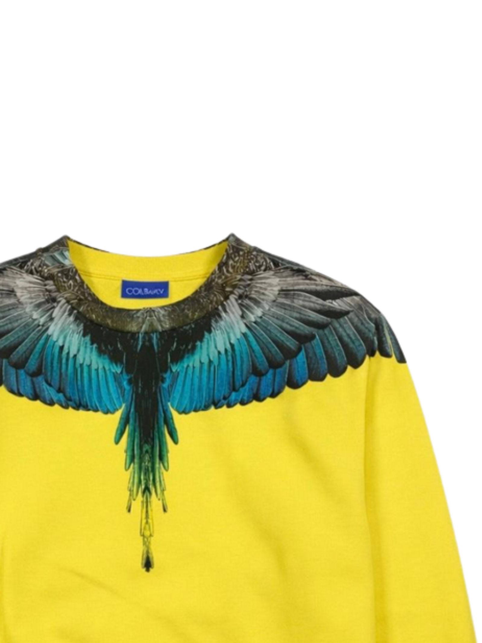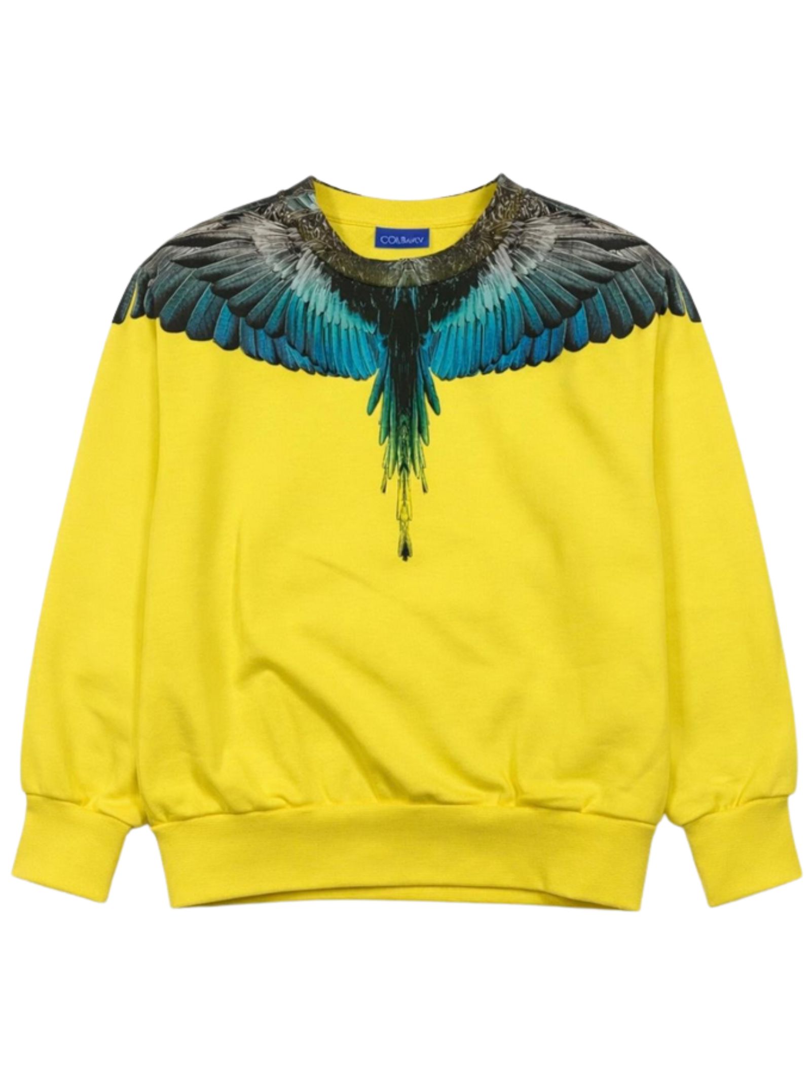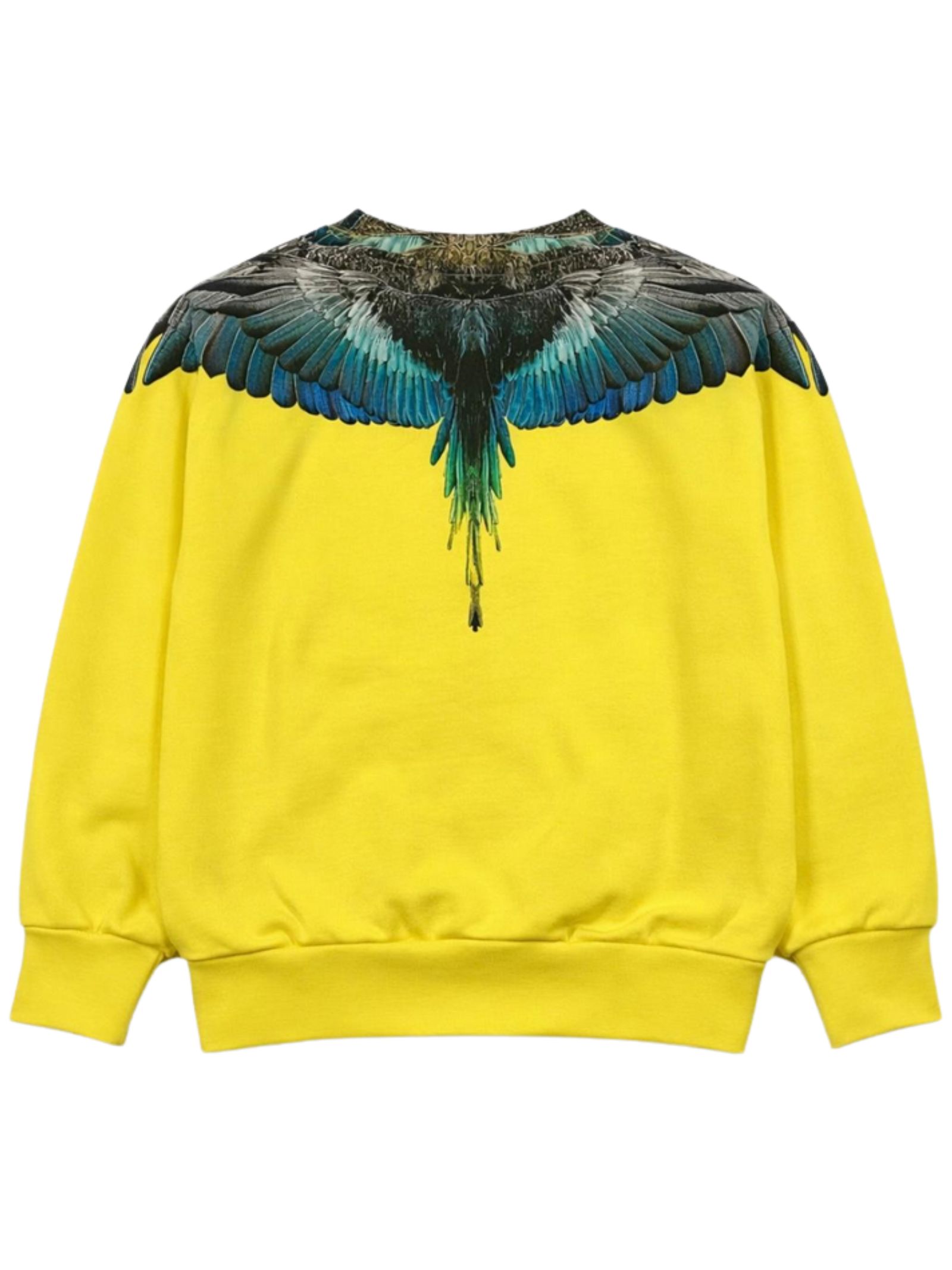 Marcelo Burlon Kids yellow sweatshirt, crew neck, long sleeves, contrasting multicolor print, ribbed cuffs, straight hem. Composition: 100% cotton