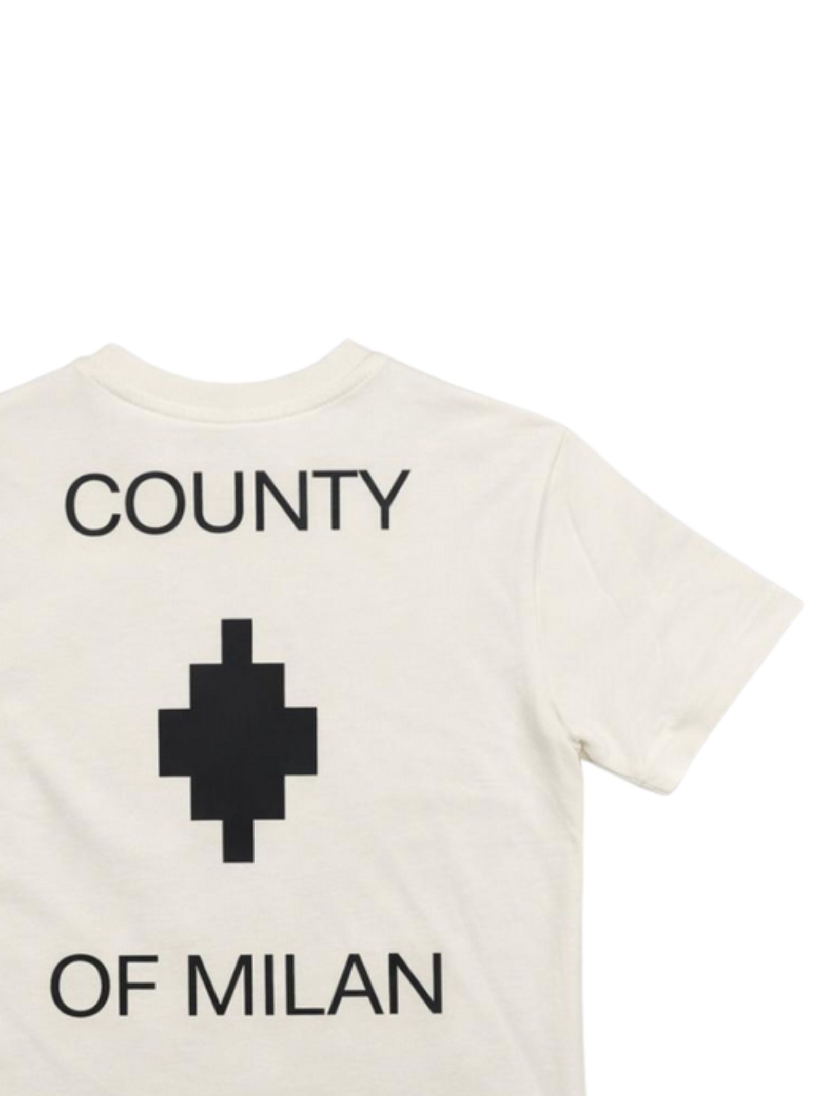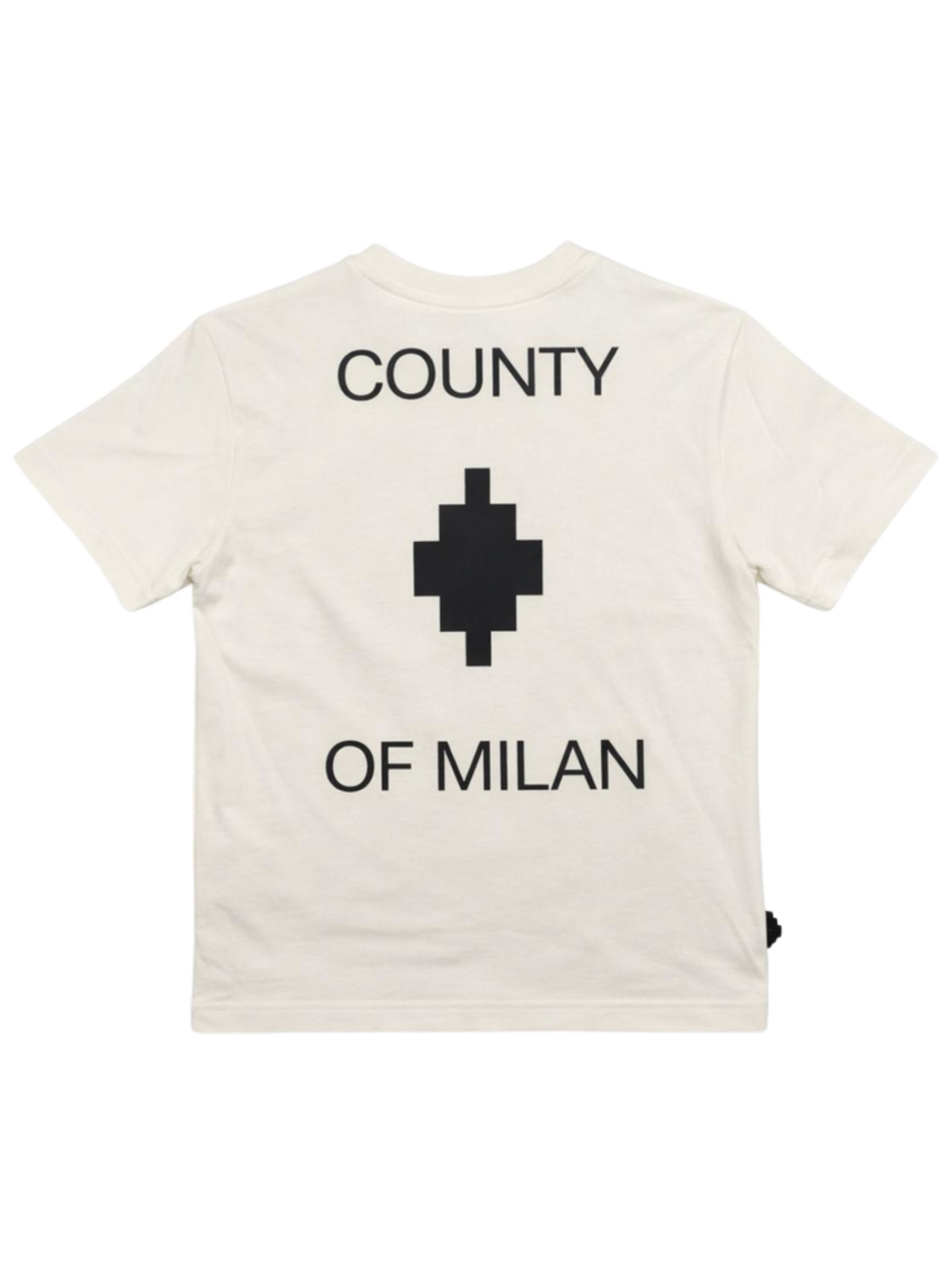 Marcelo Burlon Kids white T-shirt, crew neck, short sleeves, contrasting print on the chest and back, straight hem, regular fit. Composition: 100% cotton. Made in Italy.