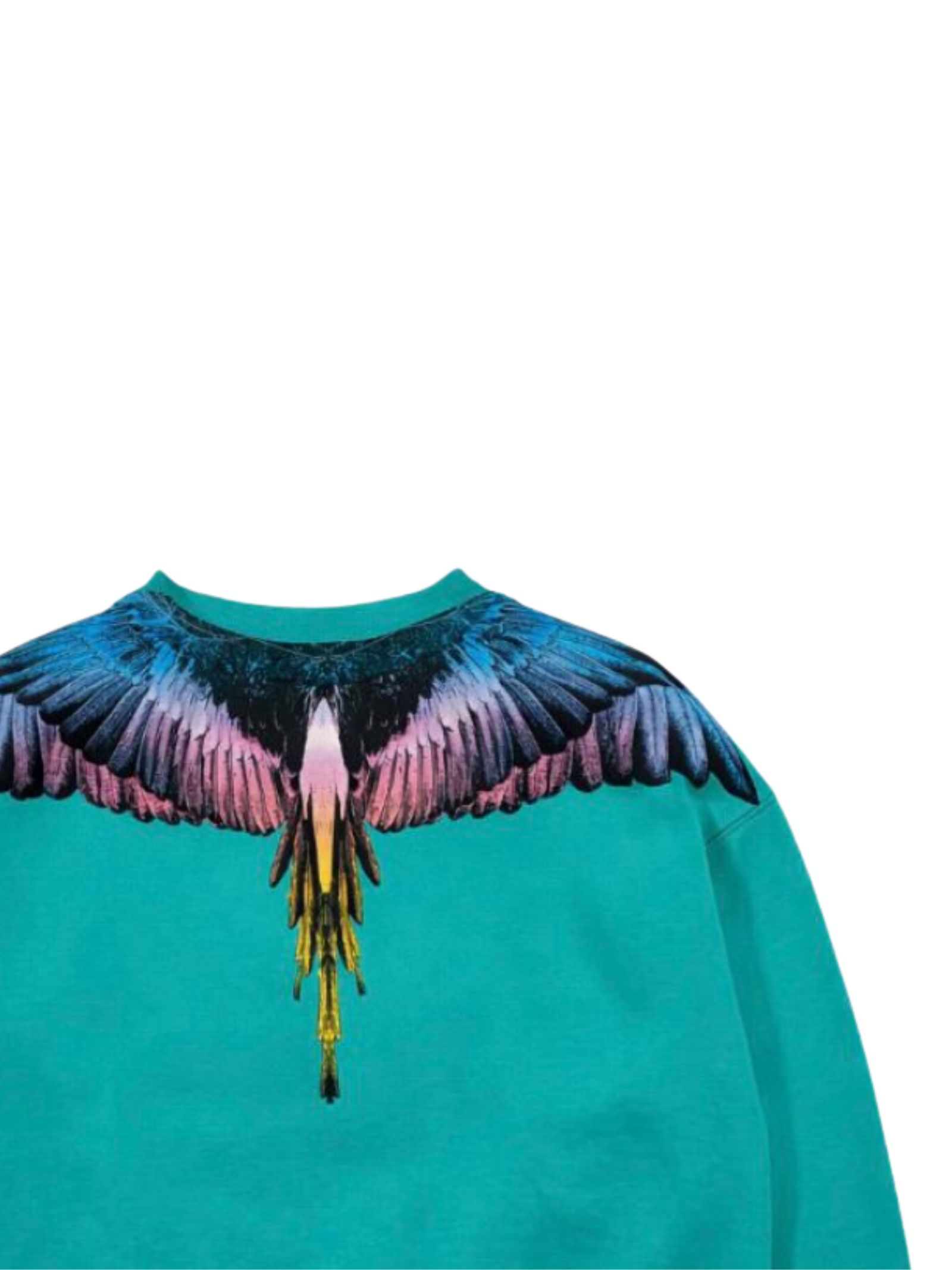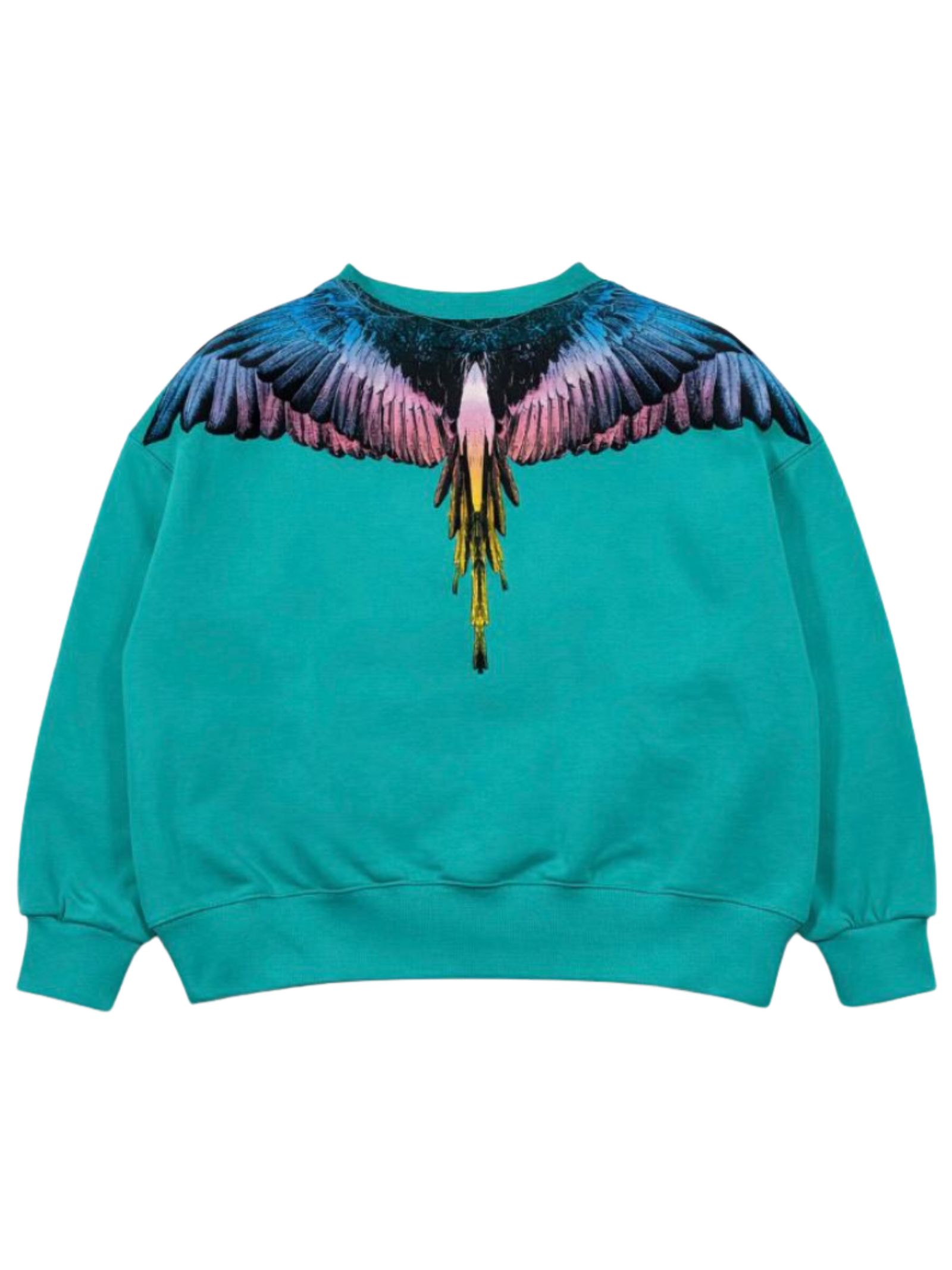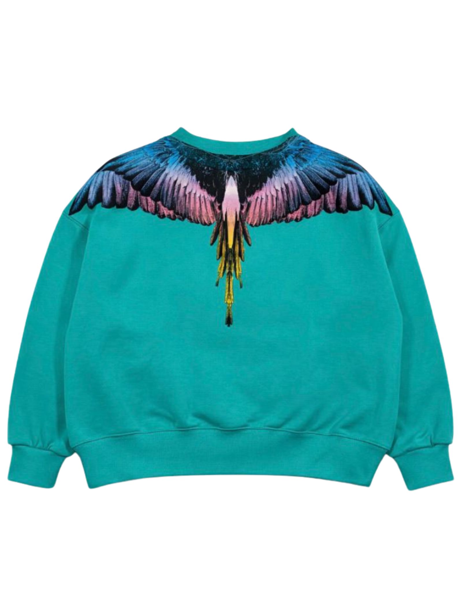Marcelo Burlon Kids aqua green sweatshirt, crew neck, long sleeves, contrasting multicolor print on both sides, regular fit, ribbed cuffs, straight hem. Composition: 100% cotton
