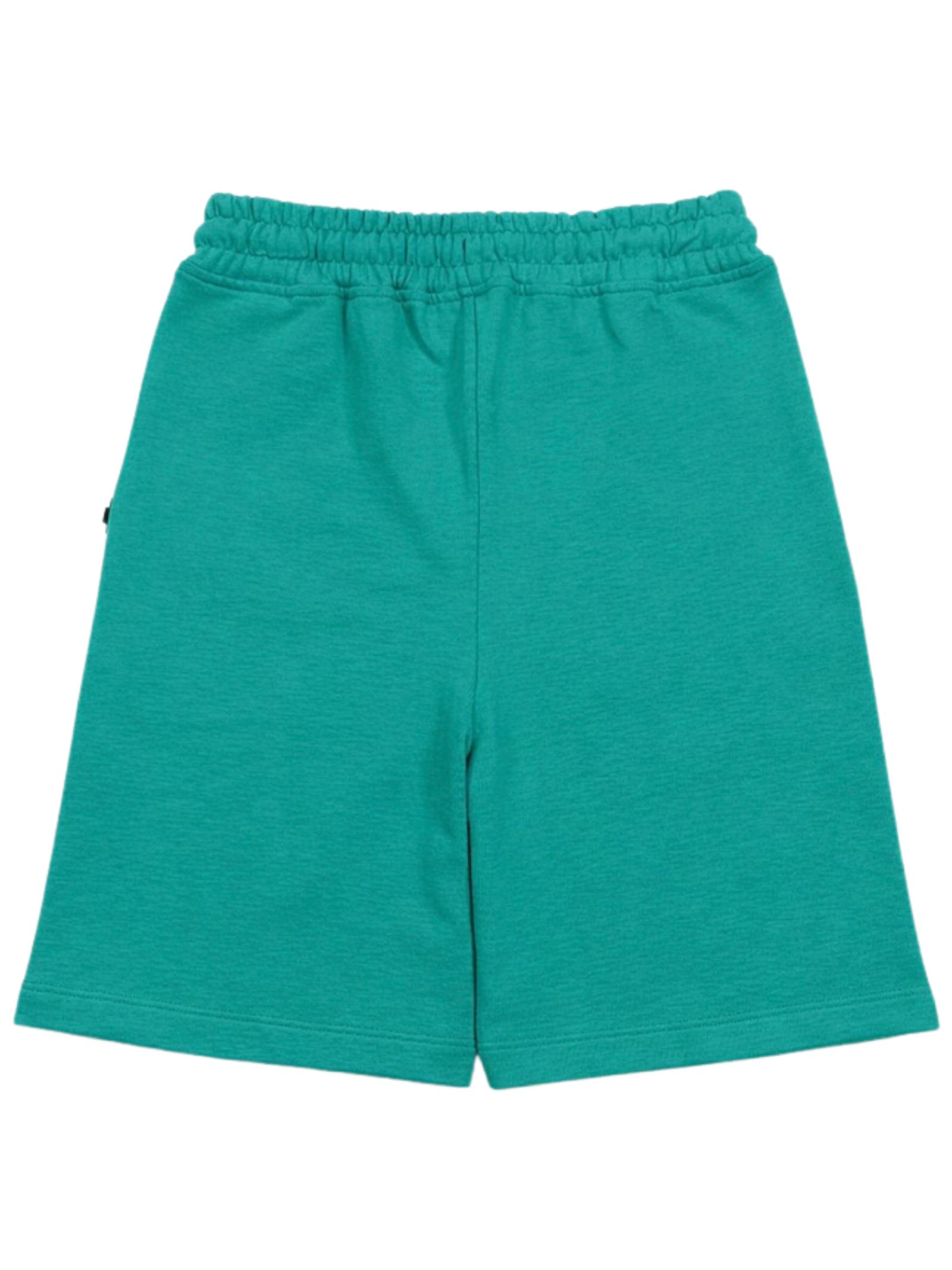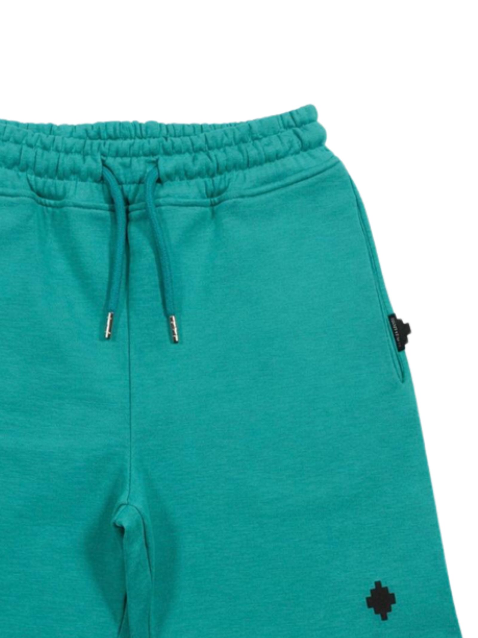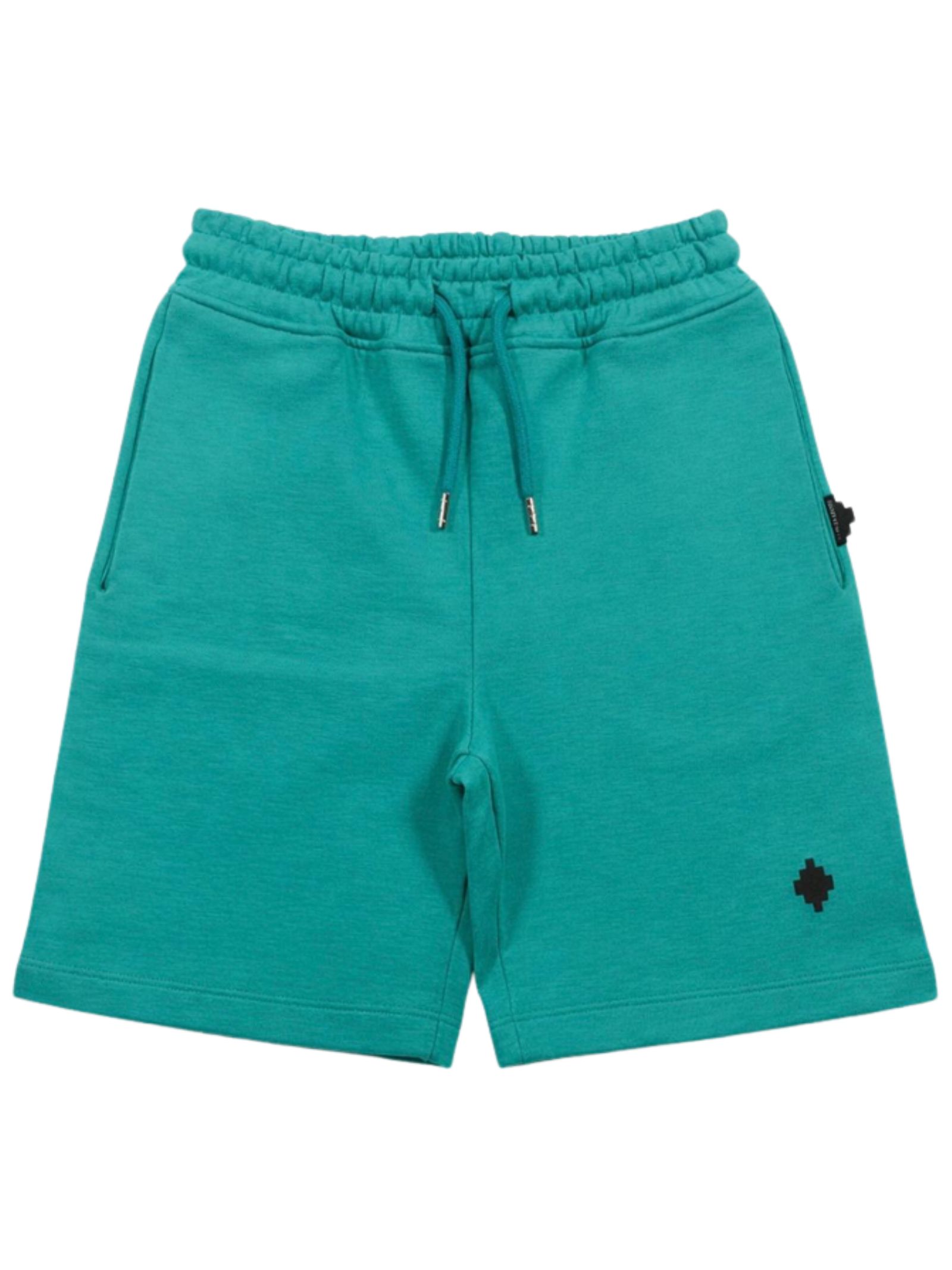 Marcelo Burlon Kids aqua green Bermuda shorts with a contrasting logo, an elastic waistband with drawstring, two side pockets, and a regular fit. Composition: 100% cotton. Made in Italy.