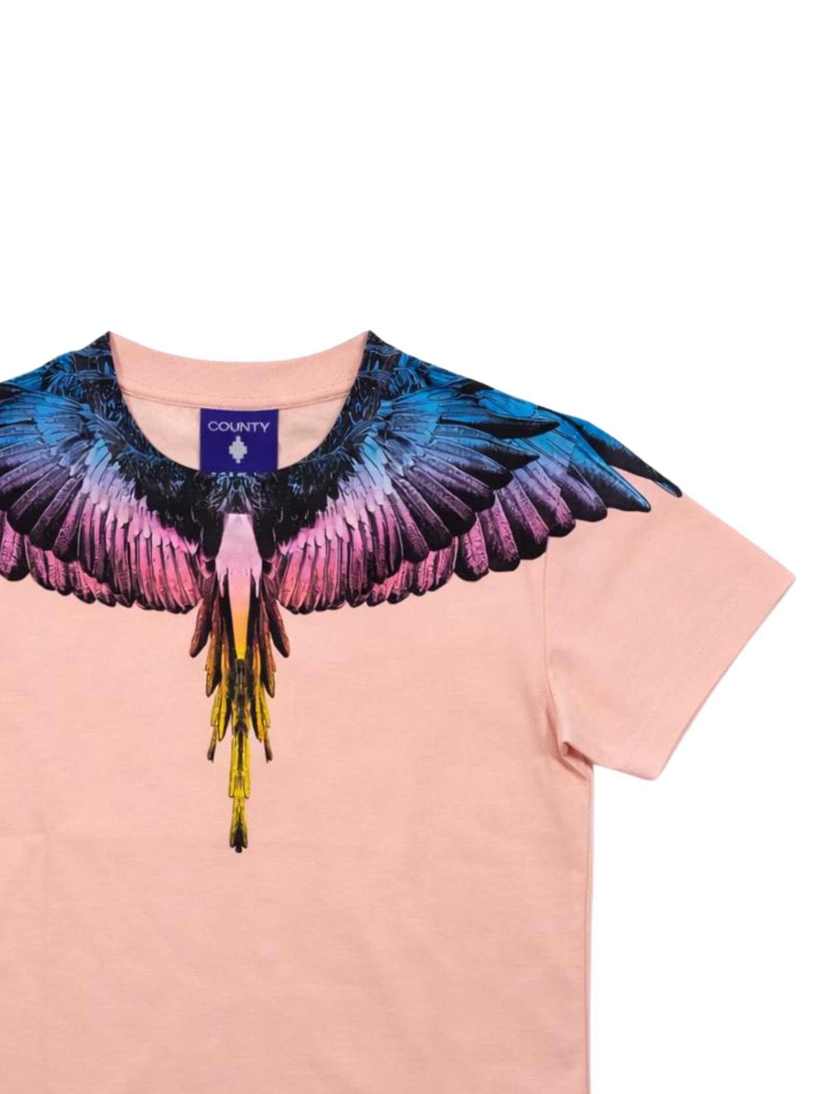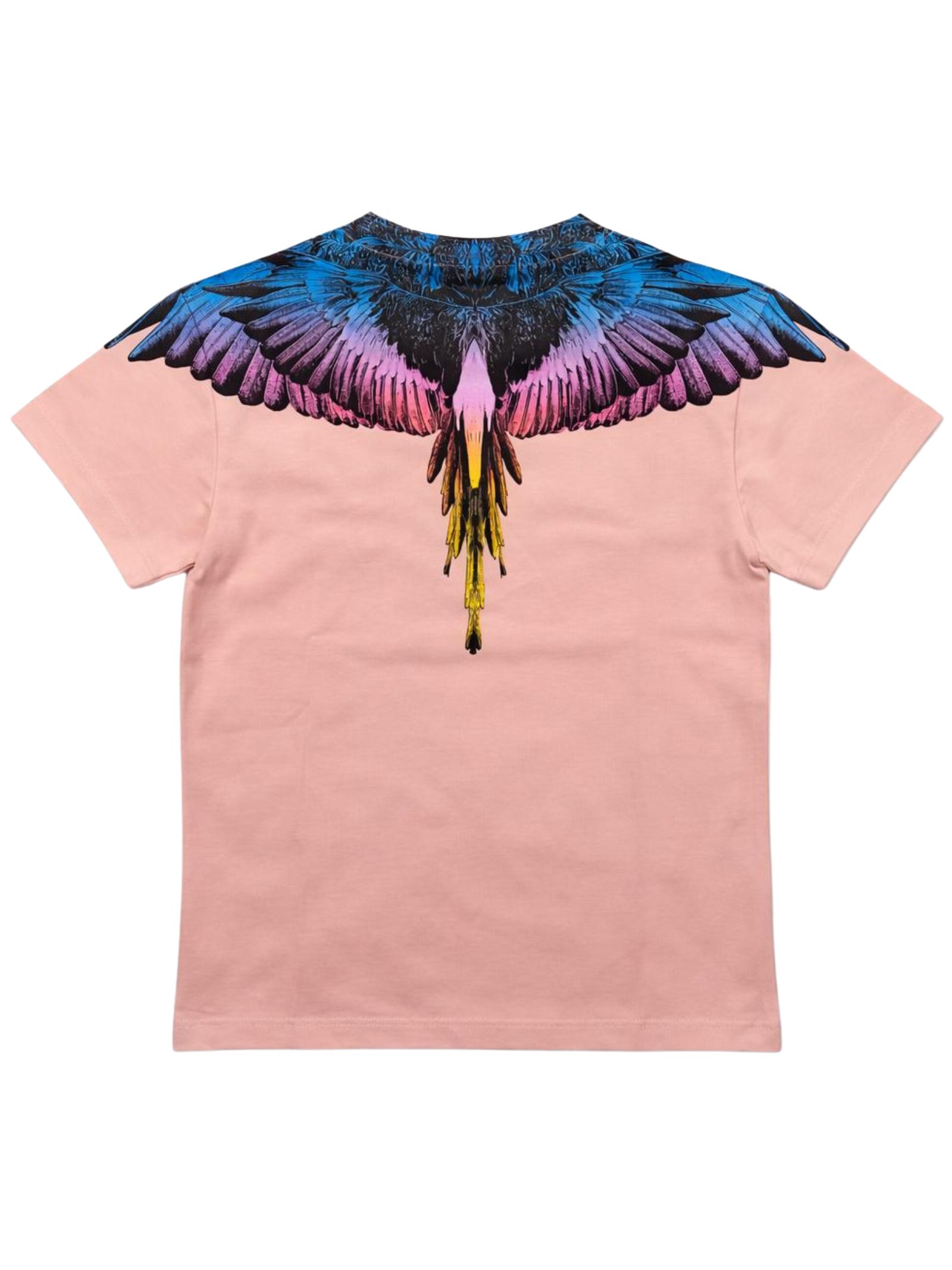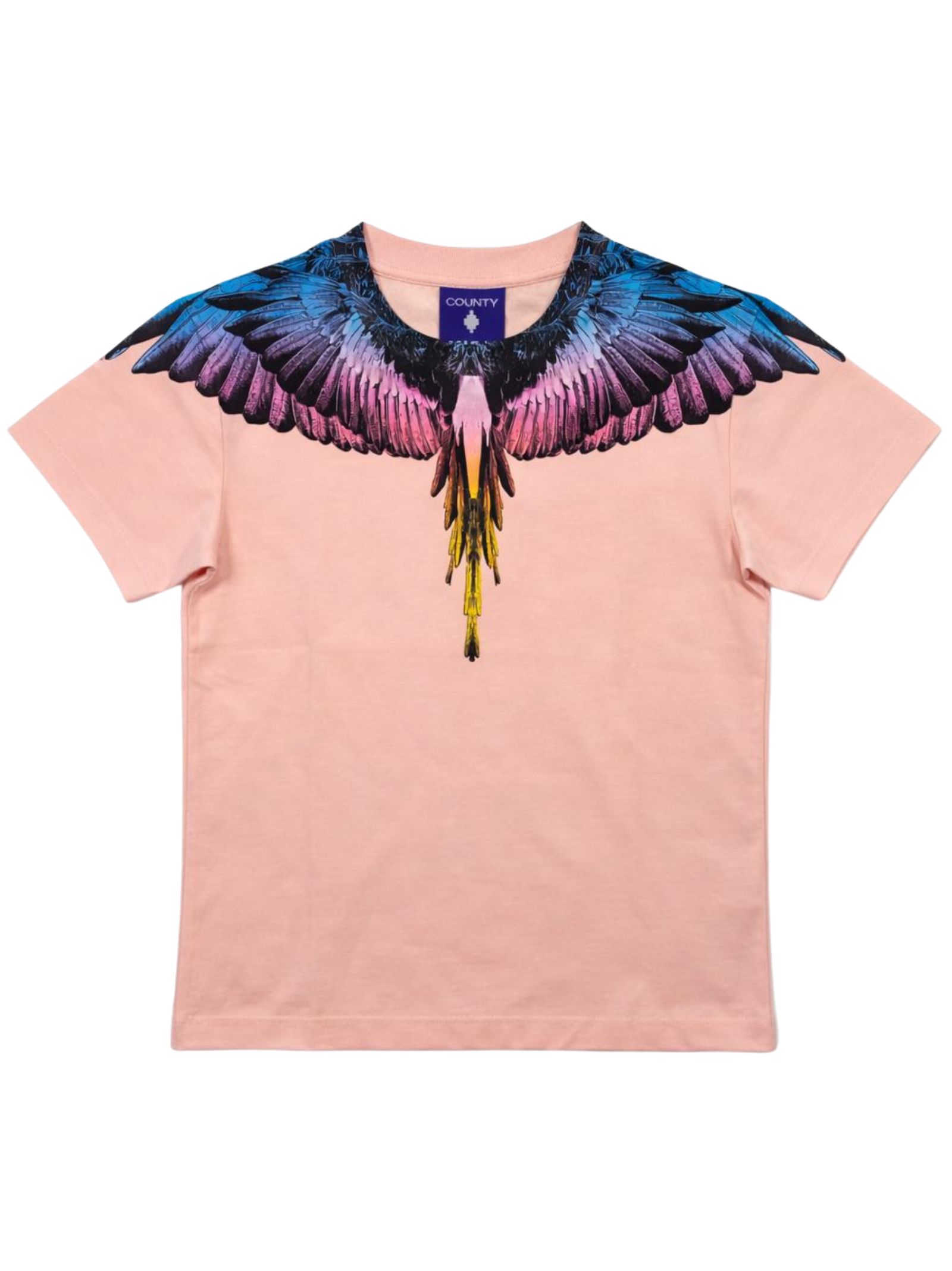 Marcelo Burlon Kids pink T-shirt, crew neck, short sleeves, contrasting multicolor print on both sides, regular fit, straight hem. Composition: 100% cotton.