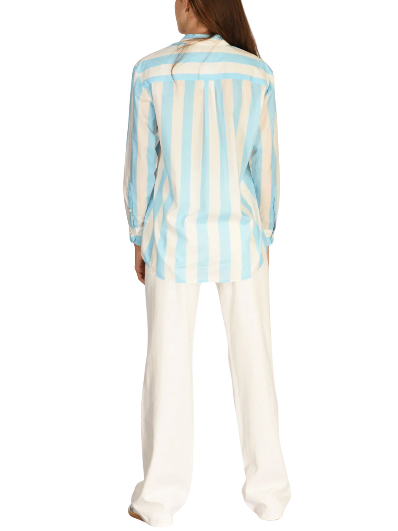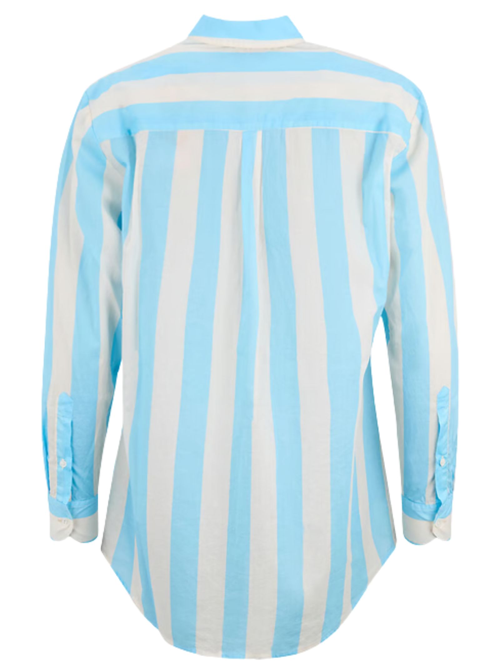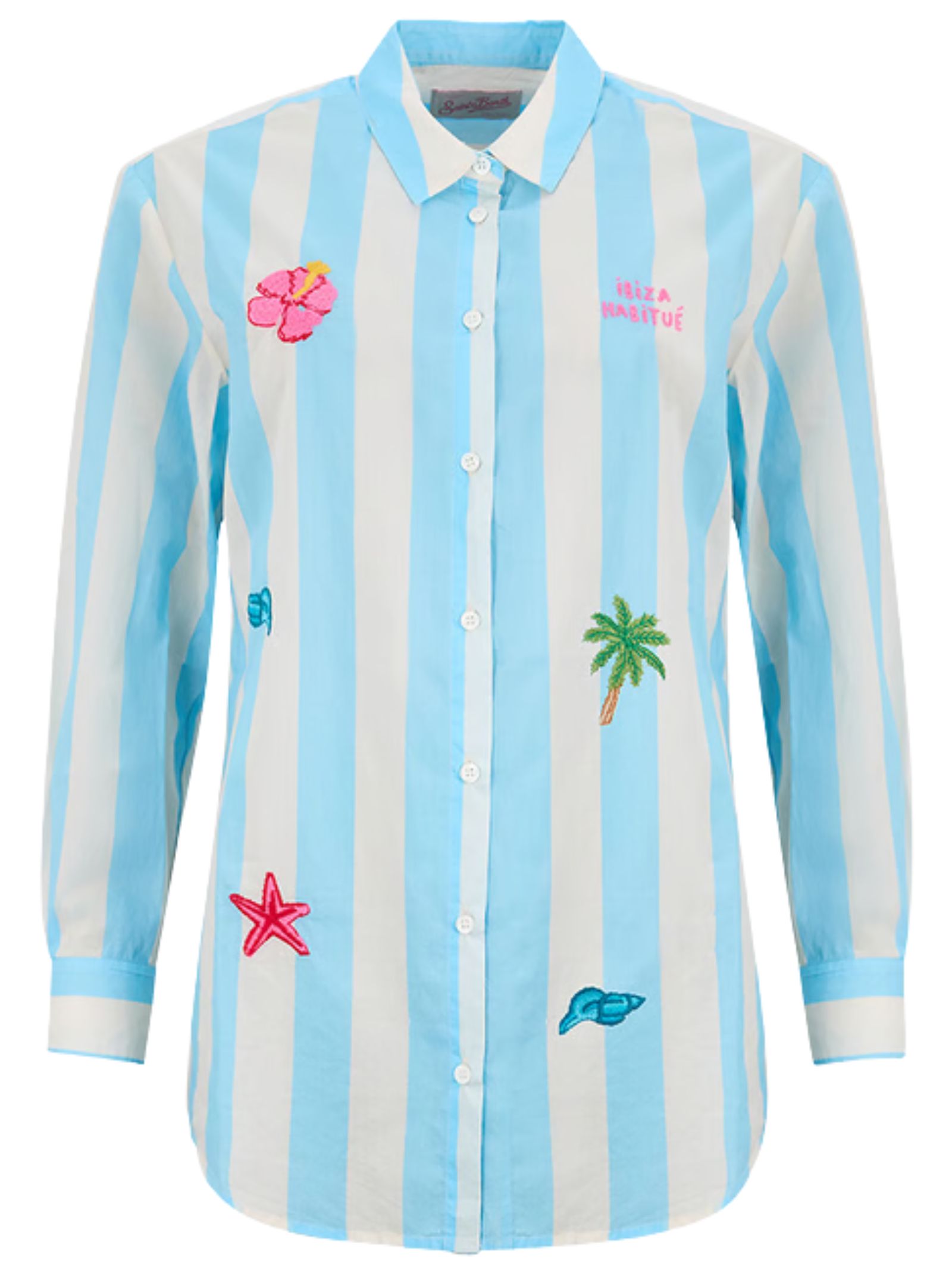MC2 Saint Barth Kids light blue/white striped shirt with contrasting embroidery, long sleeves, curved hem, regular fit. Composition: 100% cotton.