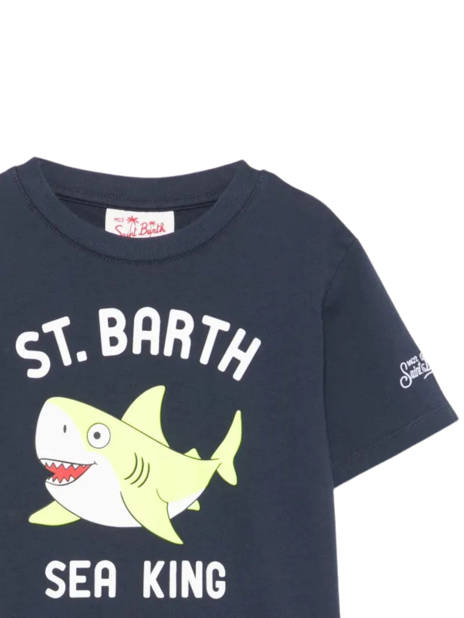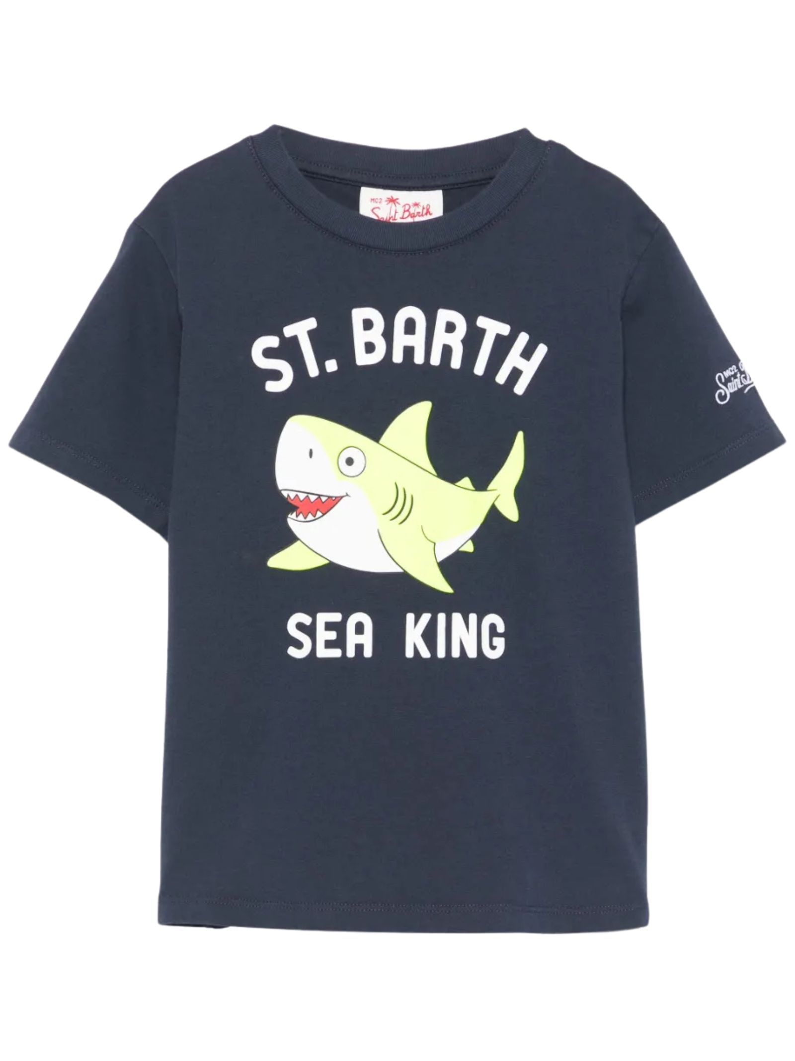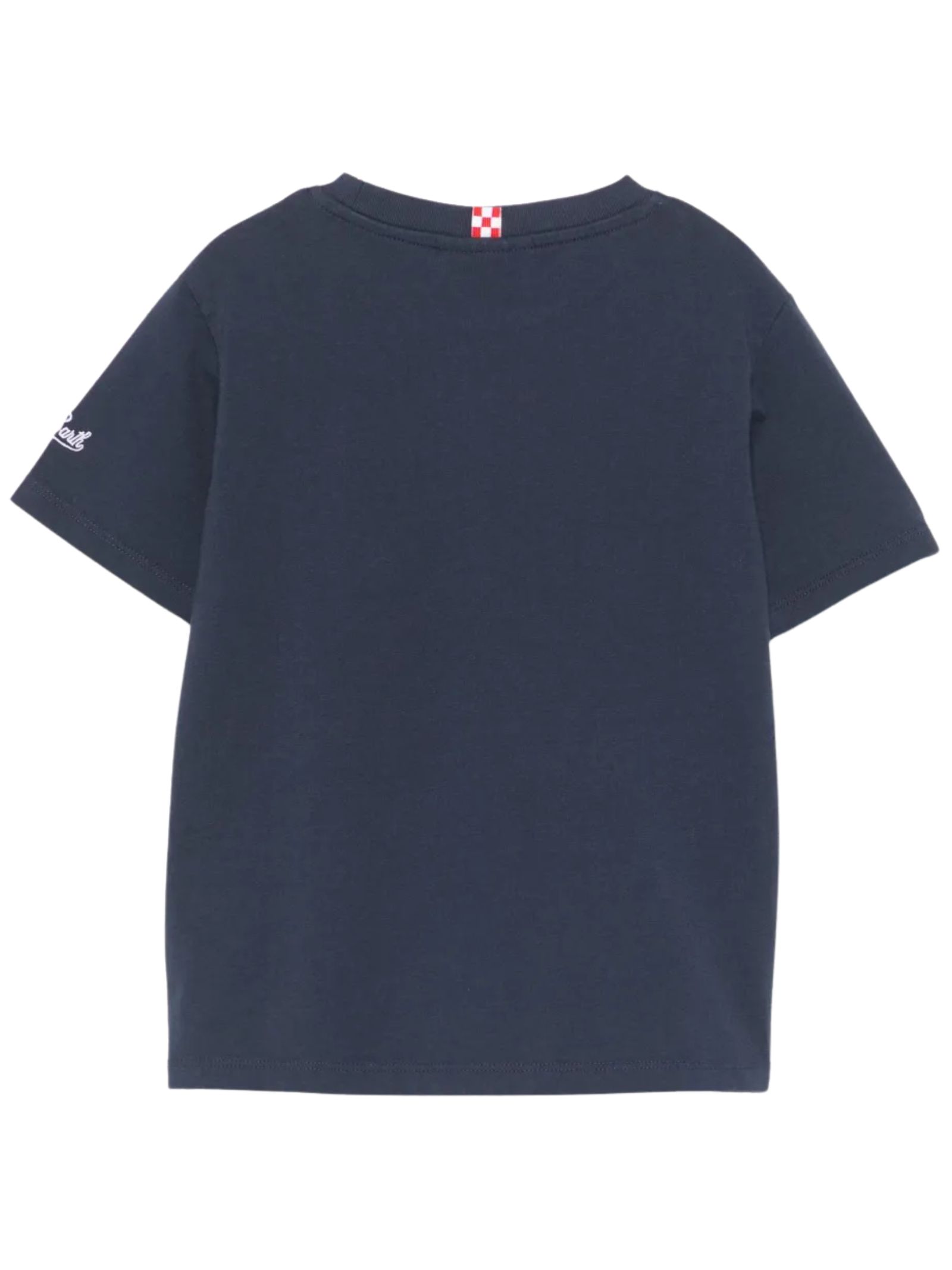 MC2 Saint Barth Kids blue cotton T-shirt, crew neck, short sleeves, multicolor logo print, regular fit. Composition: 100% cotton.