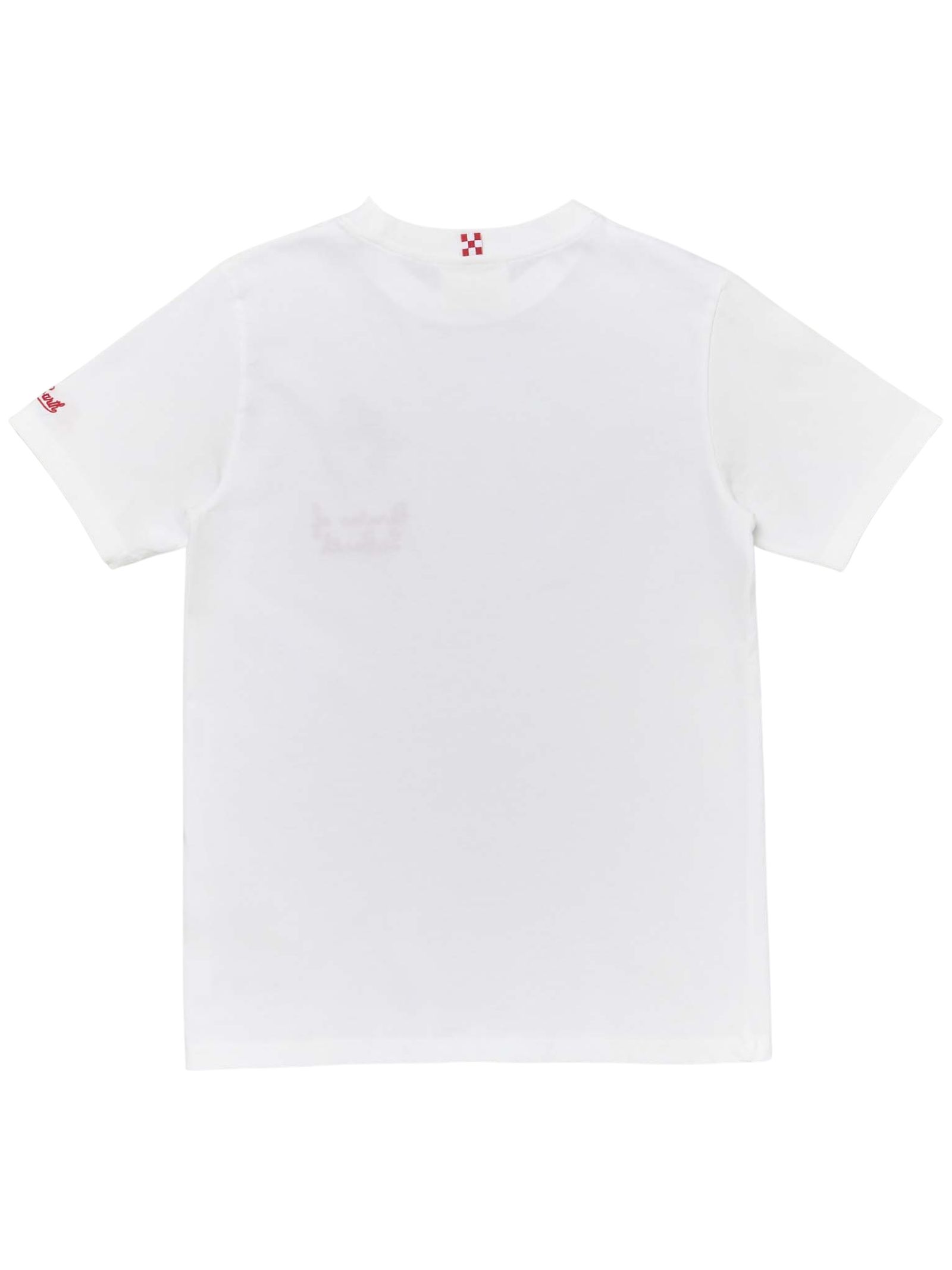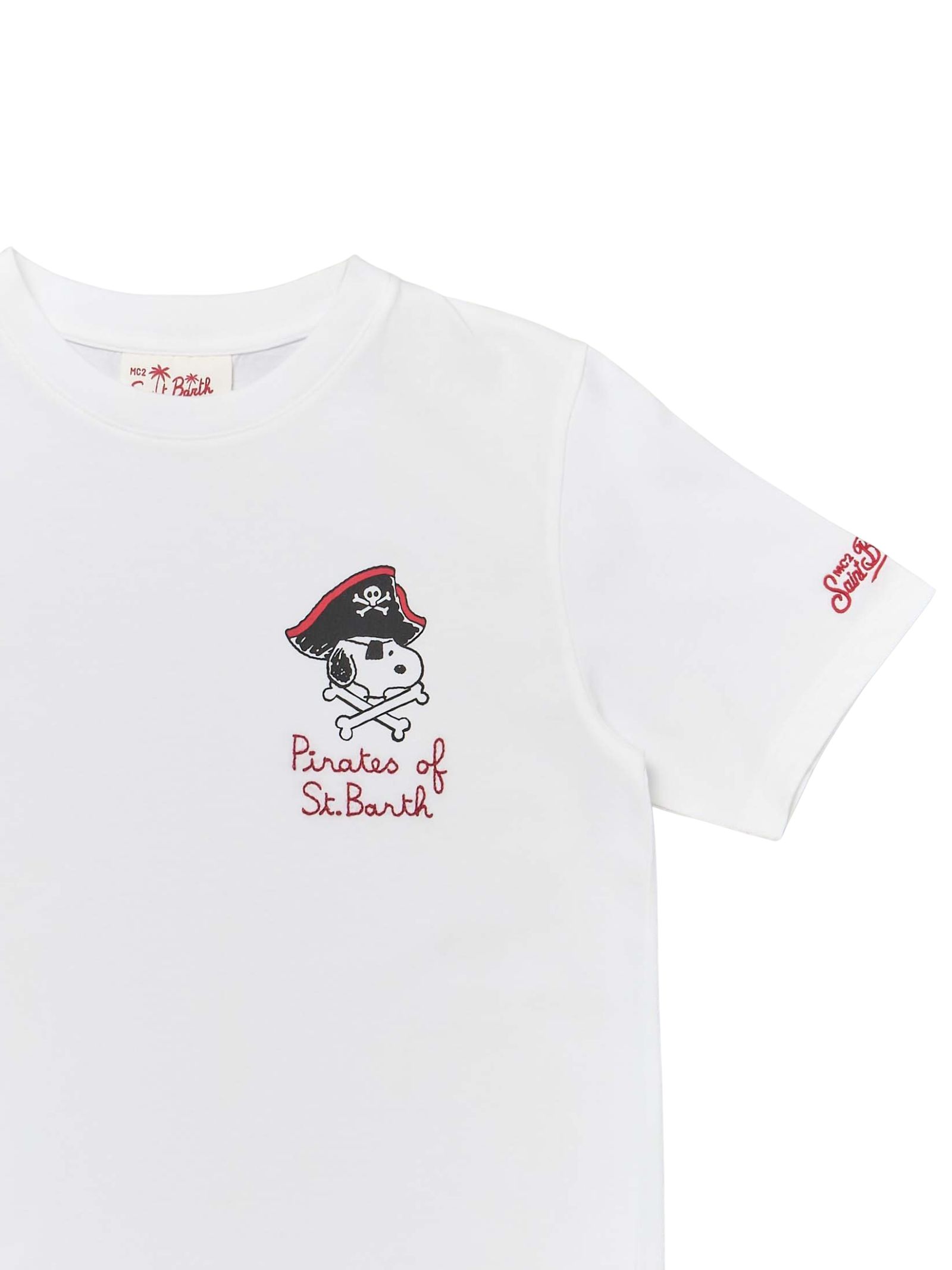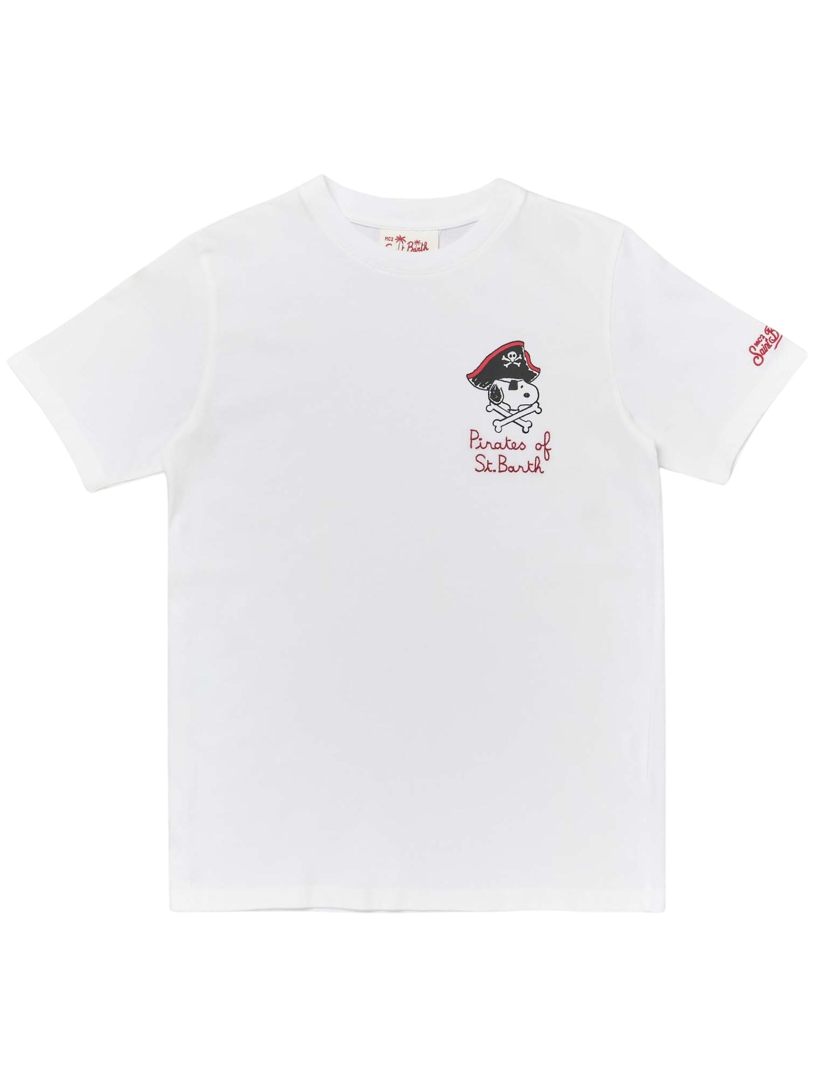 MC2 Saint Barth Kids white cotton T-shirt, crew neck, short sleeves, Snoopy print with embroidery on the chest, regular fit. Composition: 100% cotton.