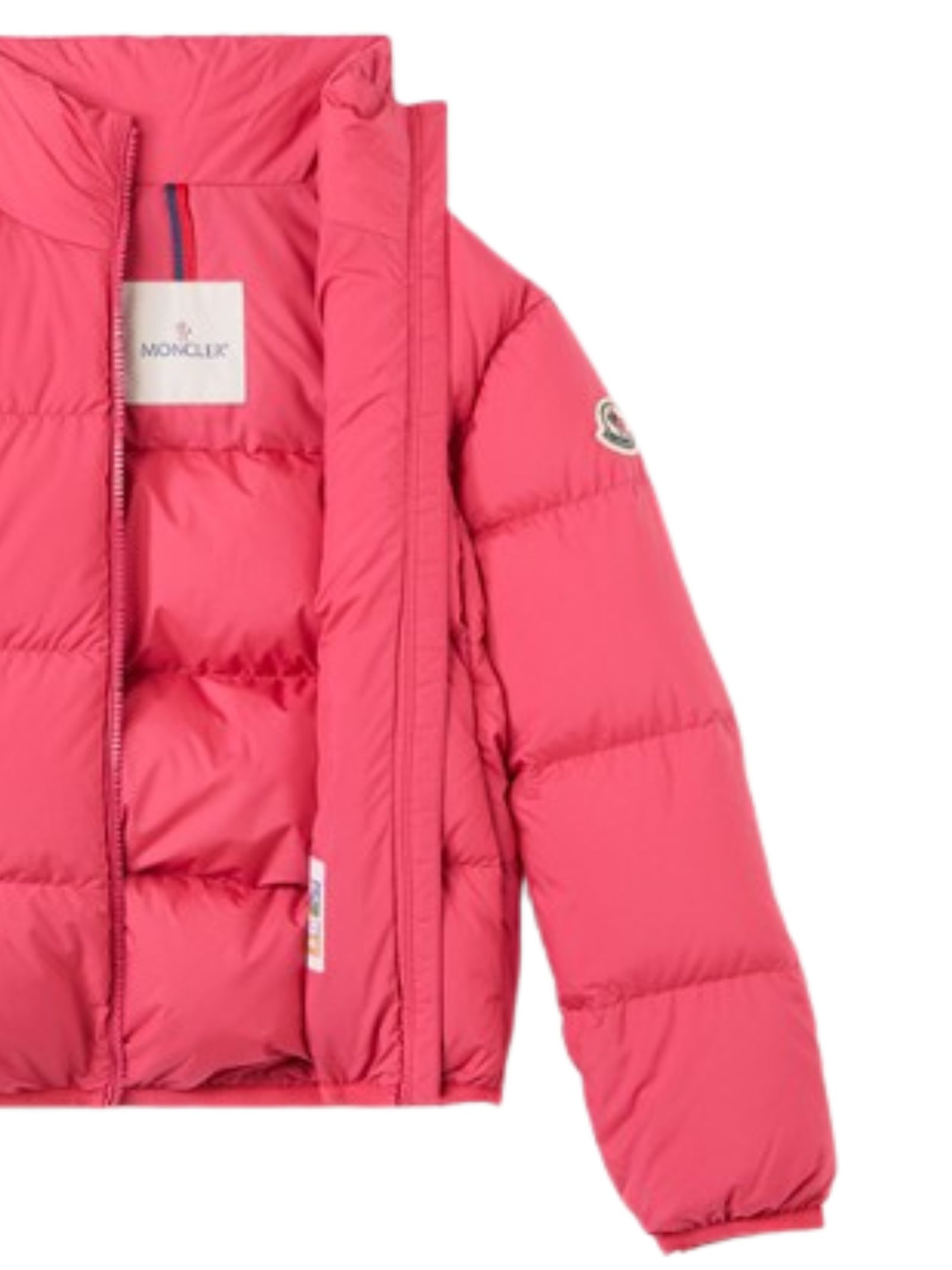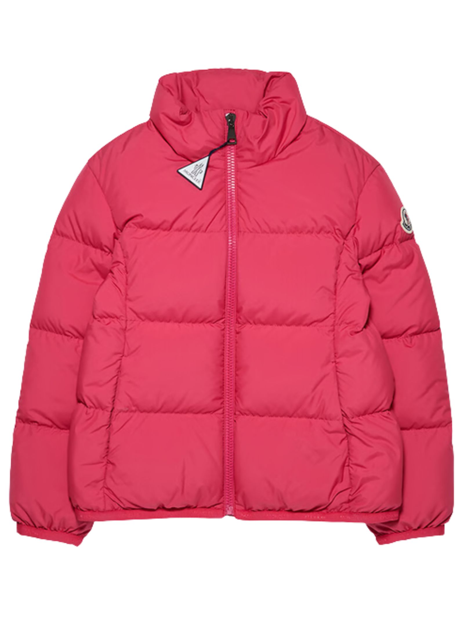 Moncler Kids Cermasa jacket in fuchsia, water-repellent main fabric, polyester lining, padded design, zip closure, side pockets, elasticated cuffs and hem. Composition: 100% polyamide. Padding: 90% down, 10% goose feathers.