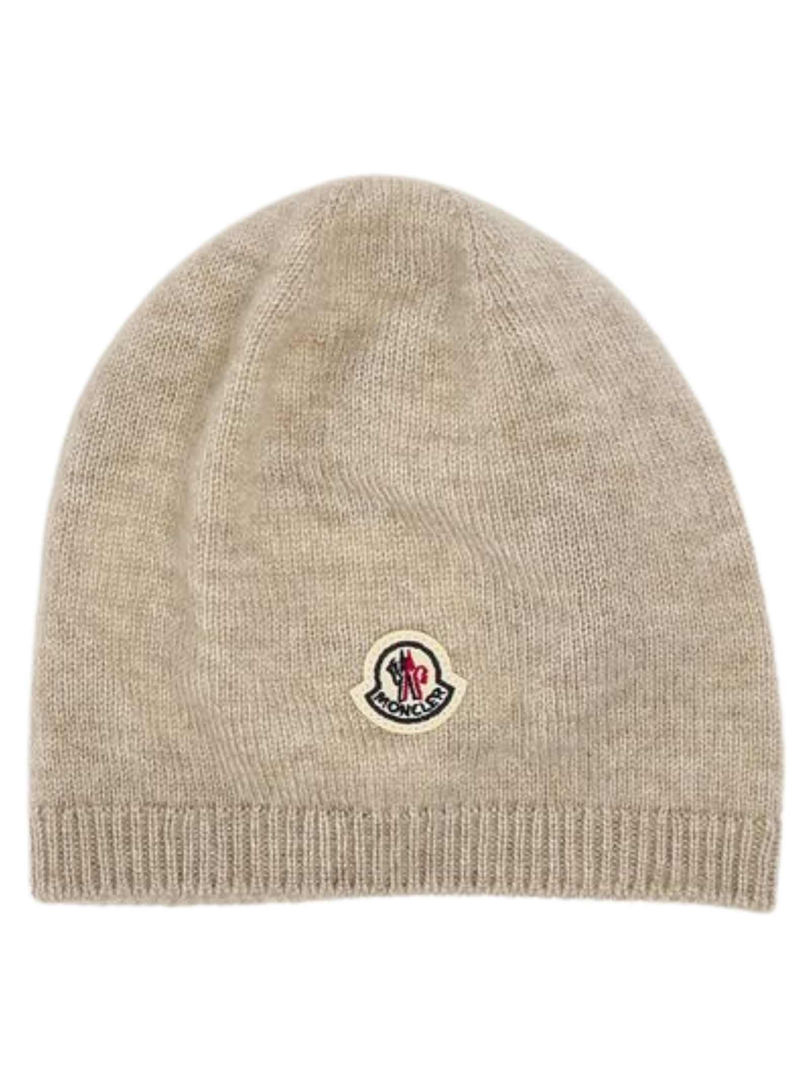 Moncler Kids beige beanie hat made of soft cashmere, with a logo patch and a fitted design. Composition: 100% cashmere. Made in Italy.