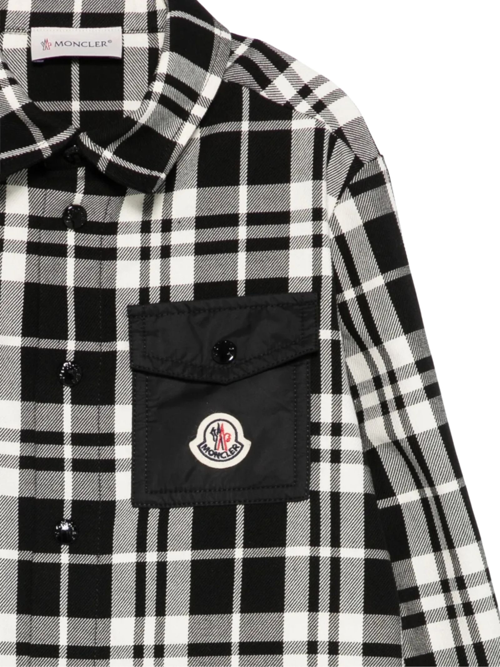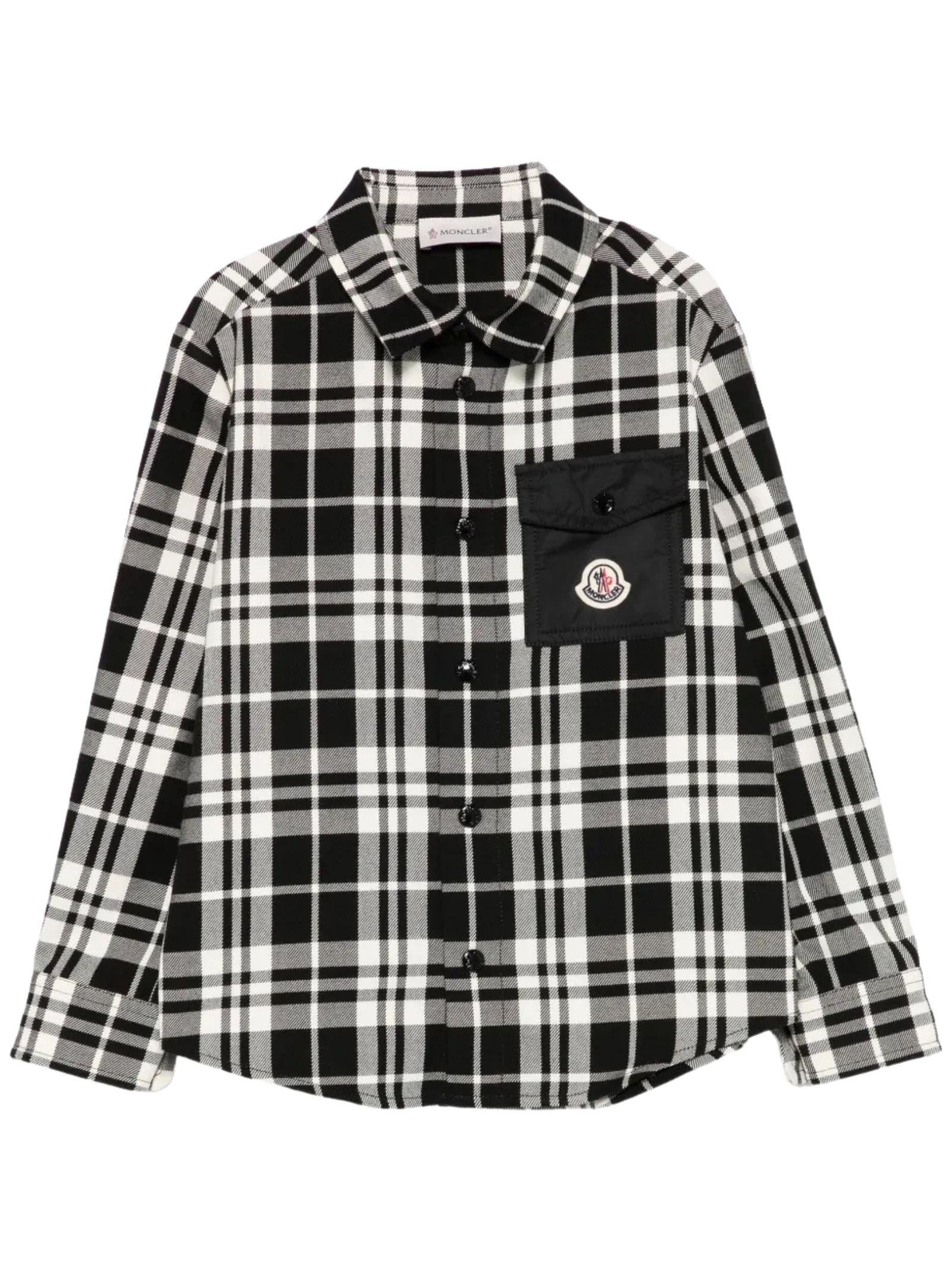 Moncler Kids black/white checked shirt, nylon patch pocket, long sleeves