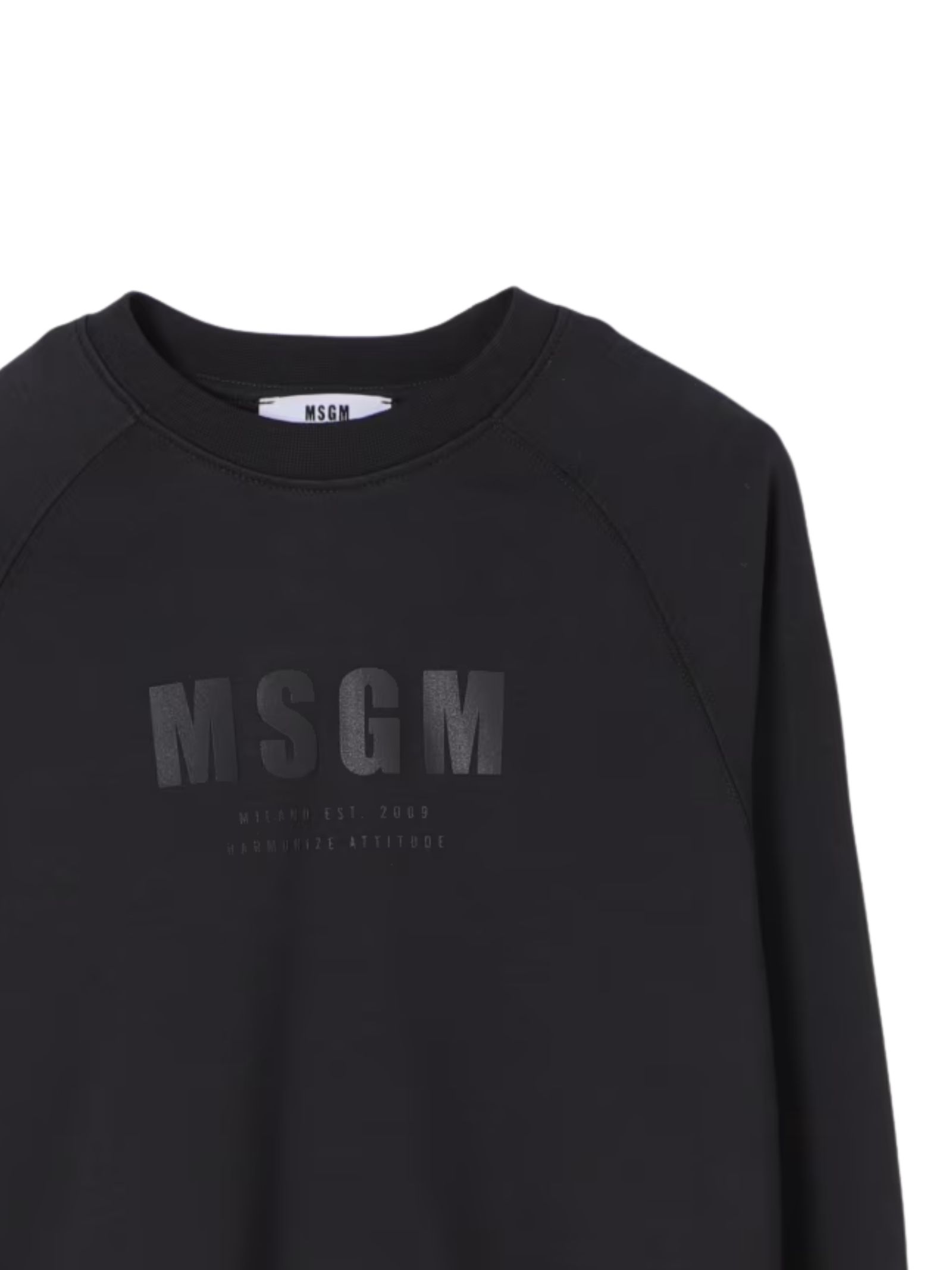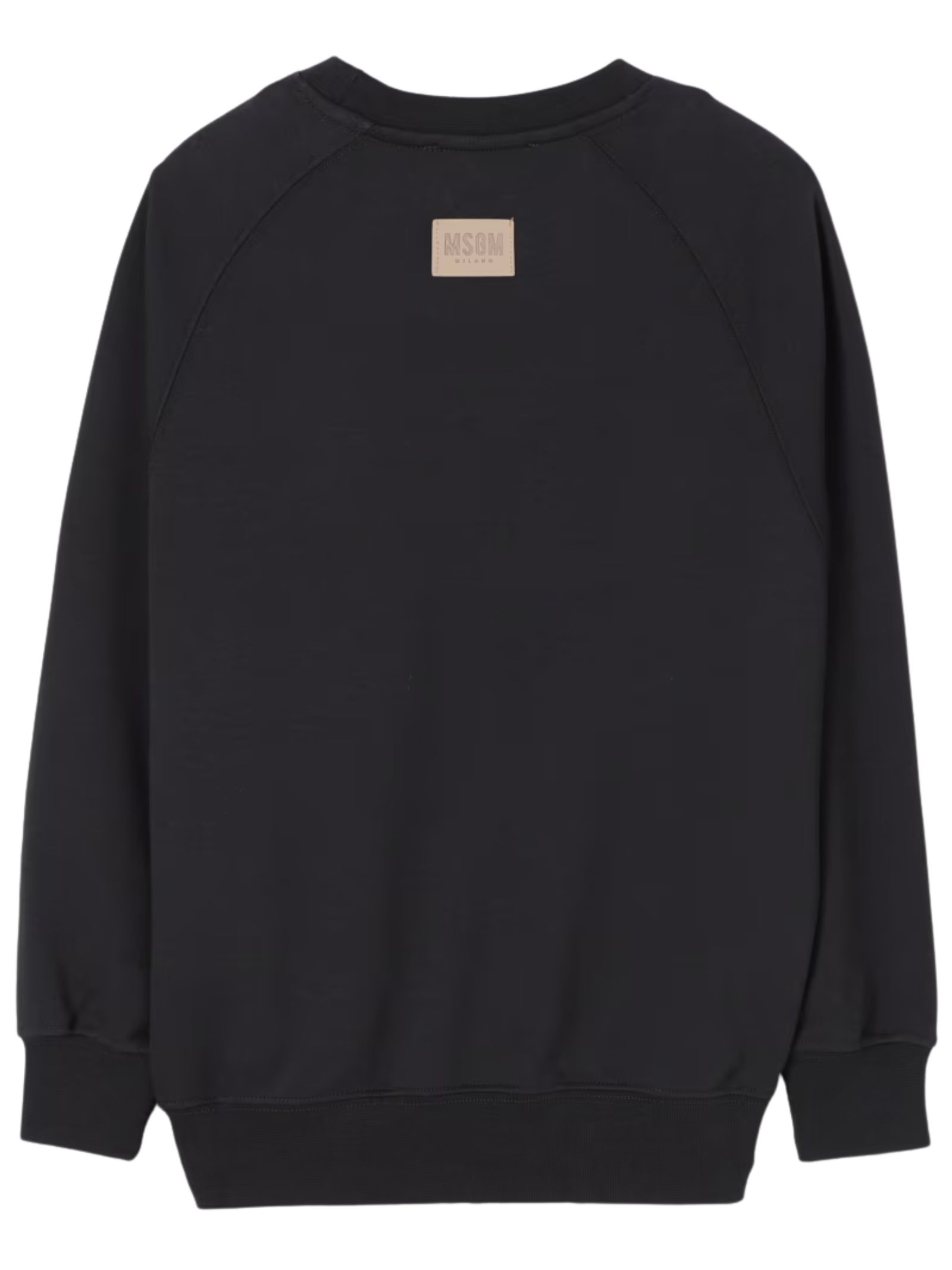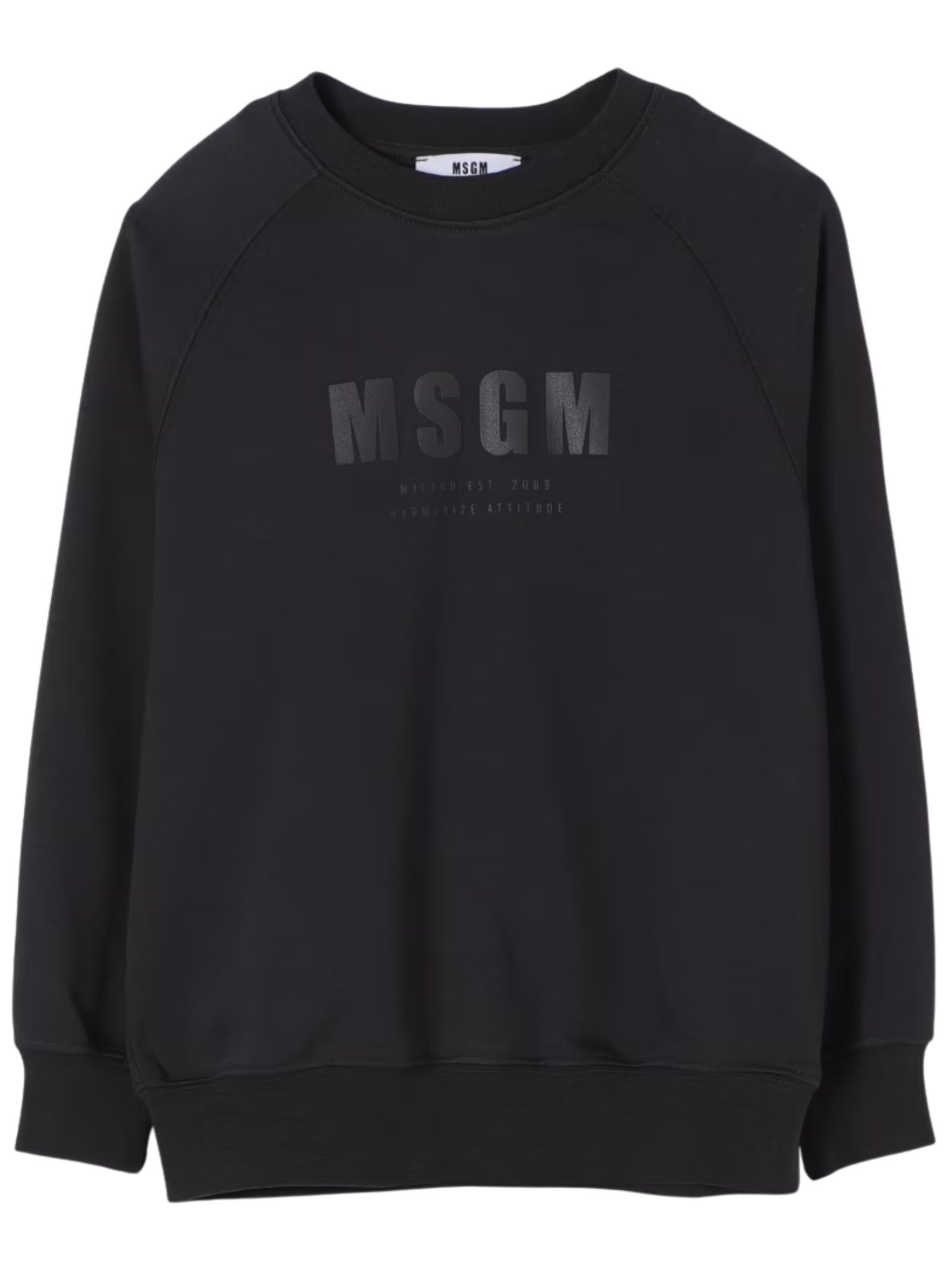MSGM Kids black sweatshirt, crew neck, long sleeves, central logo print on the same color, ribbed cuffs, regular fit. Composition: 100% cotton