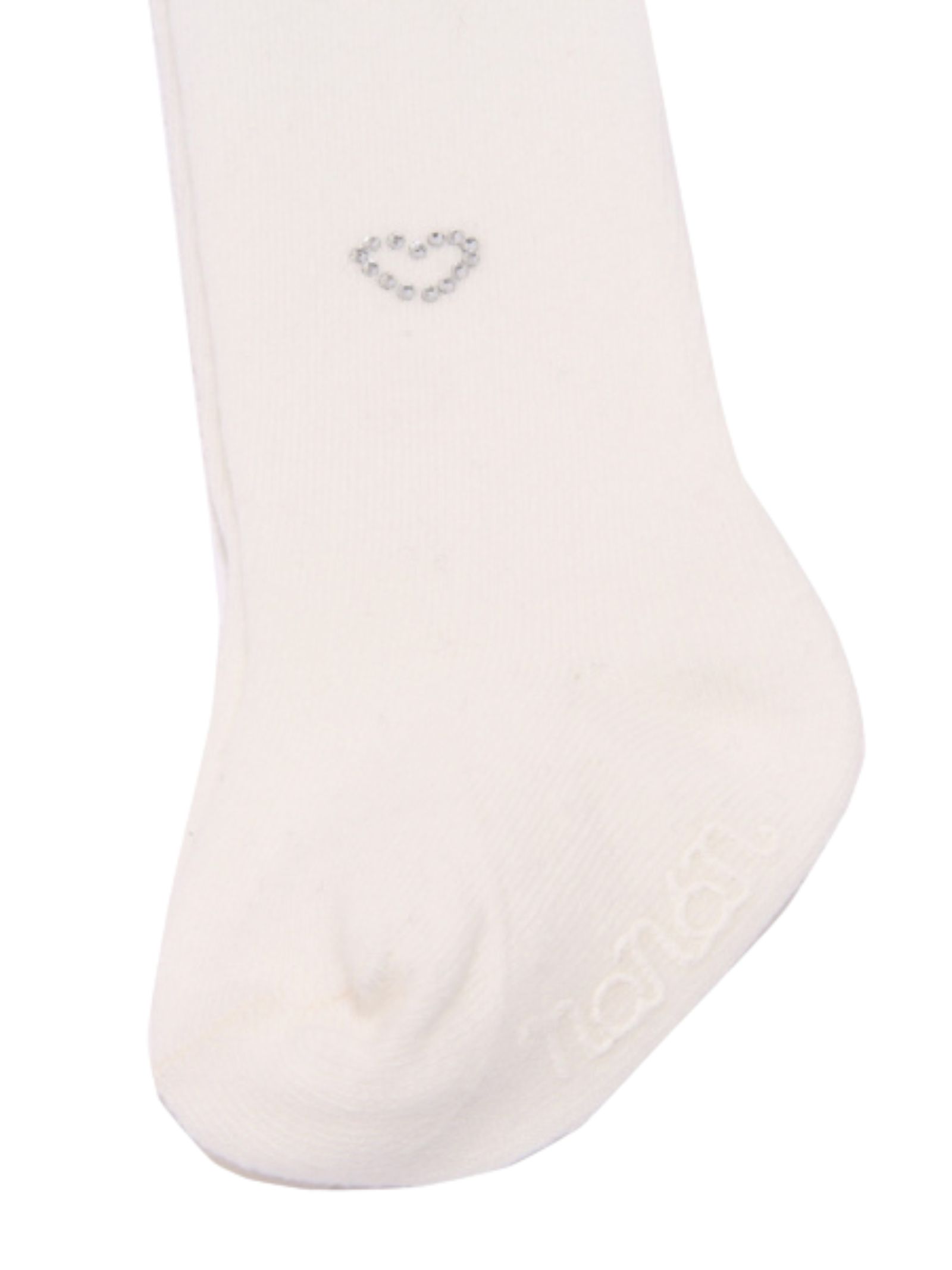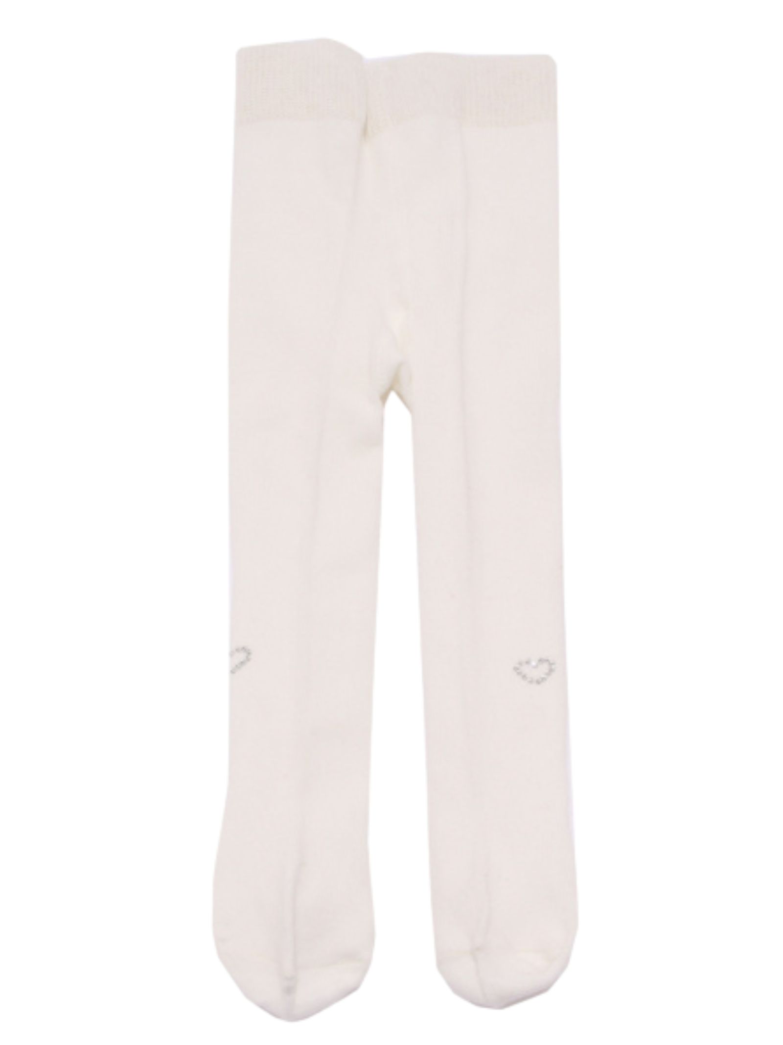 Nanan Kids cream-colored socks, fitted design, decorated with heart-shaped rhinestones on both sides, embroidered logo. Composition: 76% cotton, 21% polyester, 3% spandex.