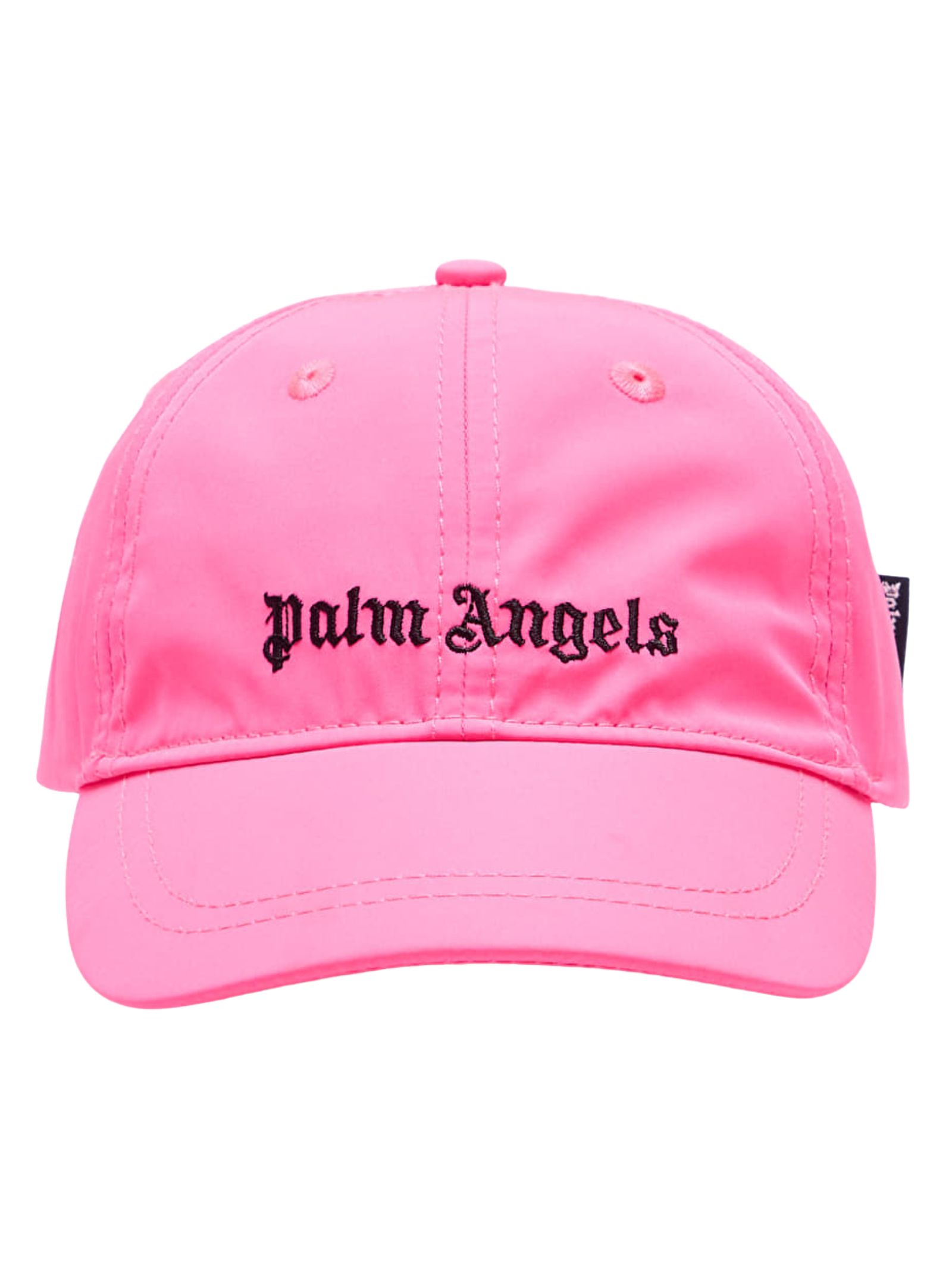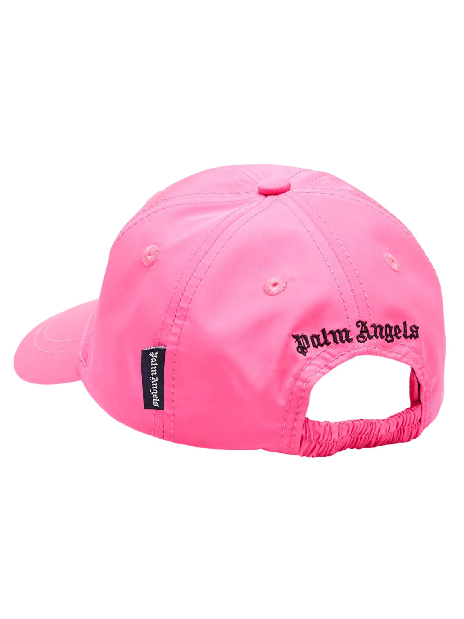 Palm Angels Kids baseball cap in neon fuchsia, logo embroidery on both sides in contrasting black, elasticated back. Composition: 100% polyester. Lining: 35% cotton, 65% polyester.