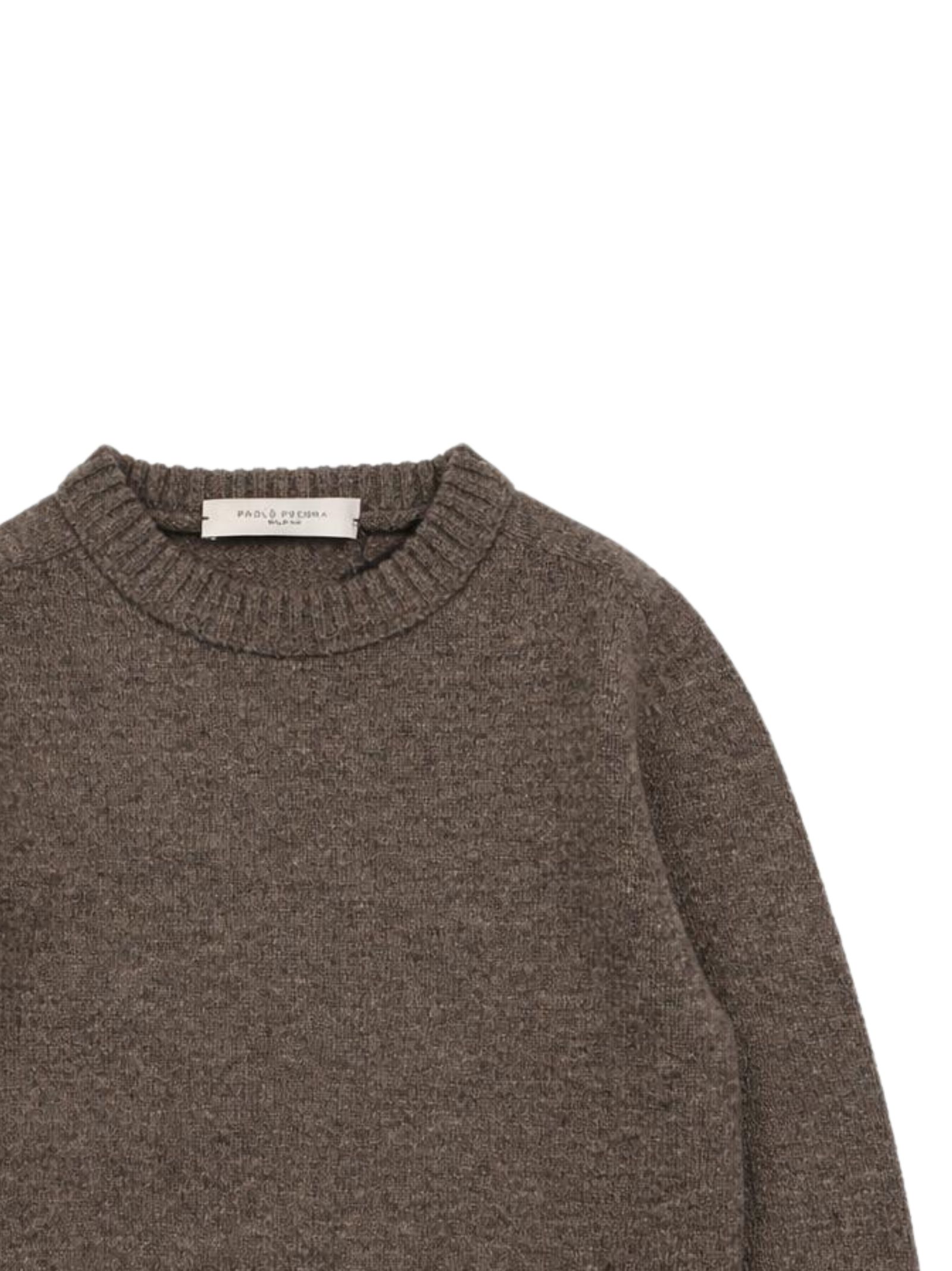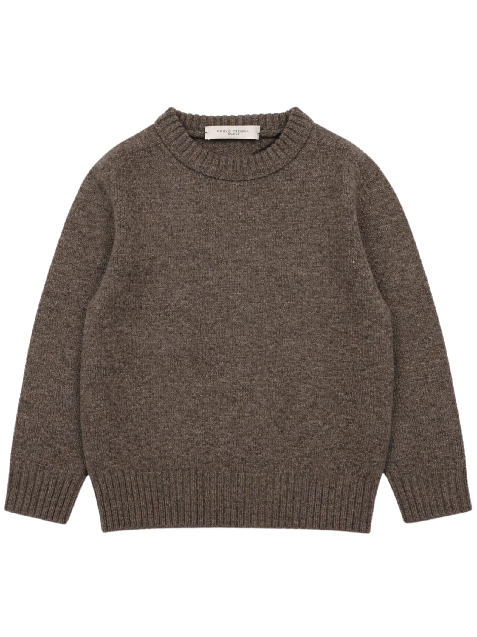 Paolo Pecora Kids beige sweater, made of soft knit, crew neck, long sleeves, mini logo embroidery, regular fit, straight hem. Composition: 100% metallic fiber.